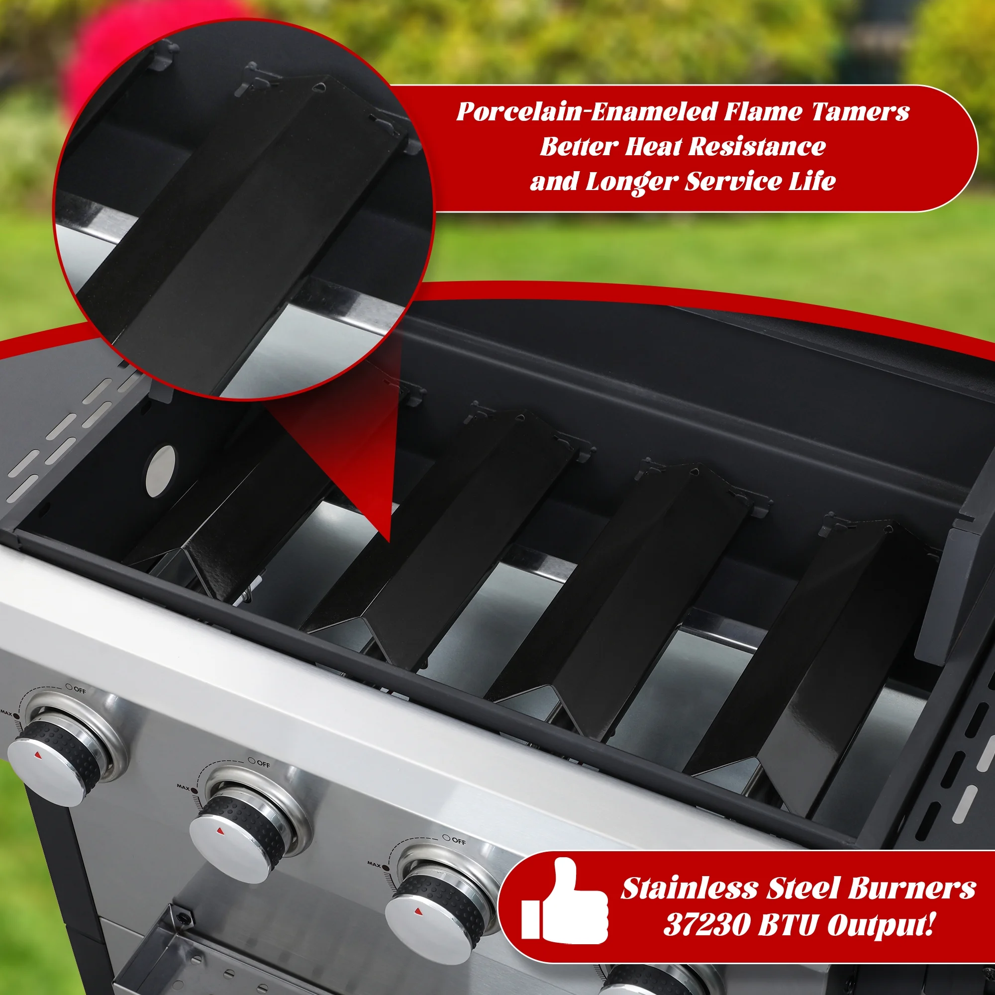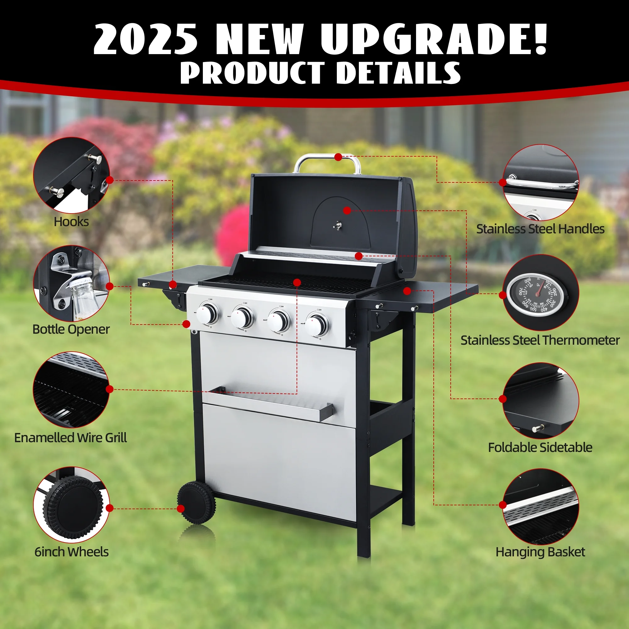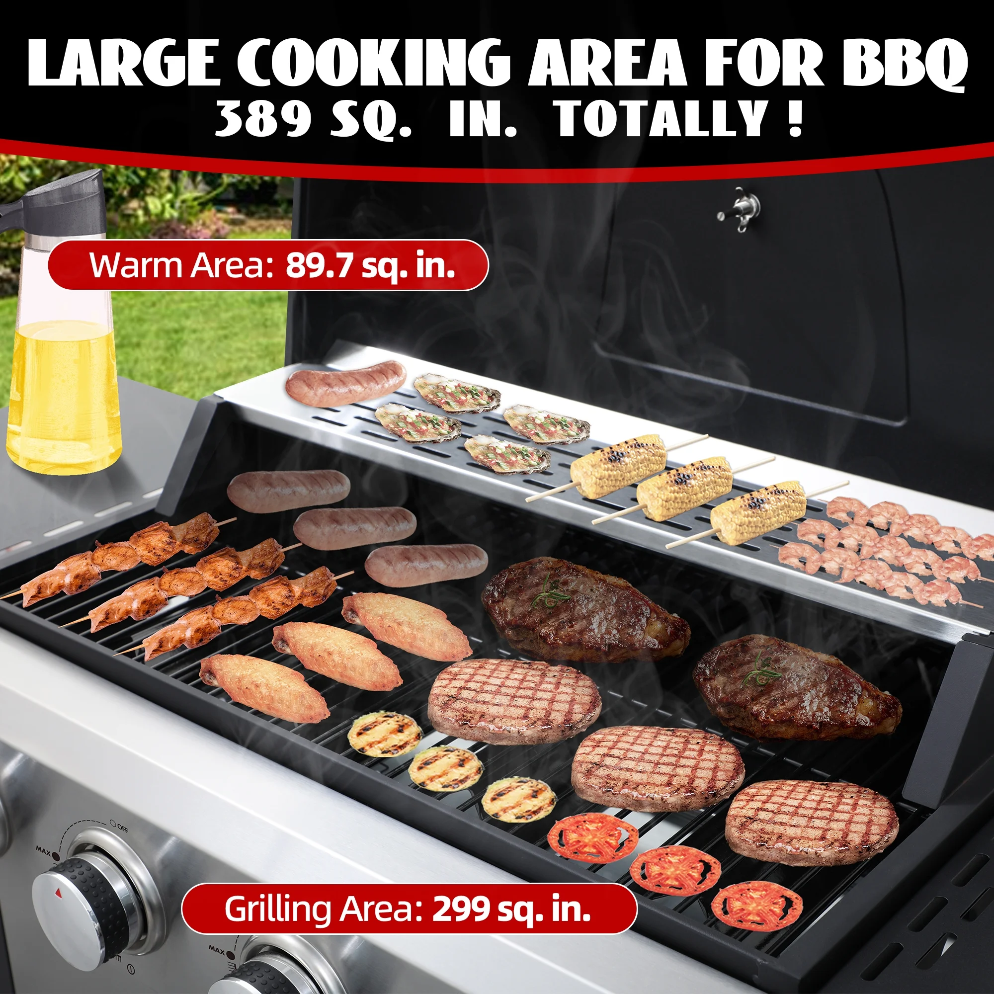 - ?Versatile Cooking: Unleash your outdoor culinary potential with four main burners (8,550 BTU each), perfect for creating a variety of delicious meals in diverse BBQ settings. Enjoy the flexibility to grill anything from burgers to veggies.