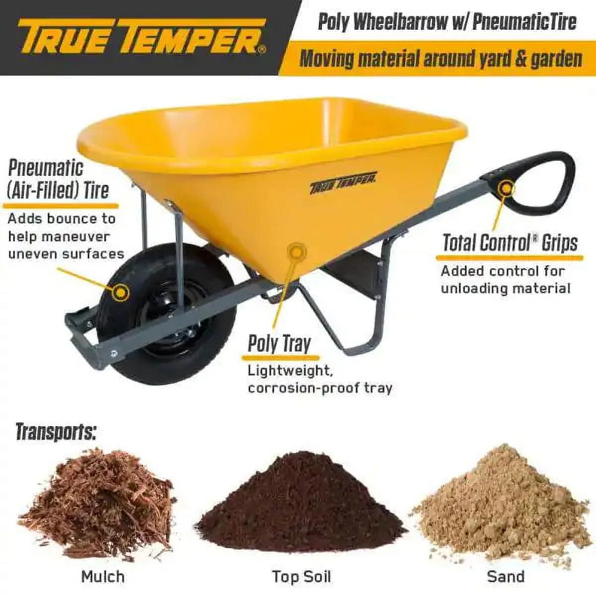 True Temper RP6TC14 6 Cubic Foot Wheelbarrow with Tough Steel Handles