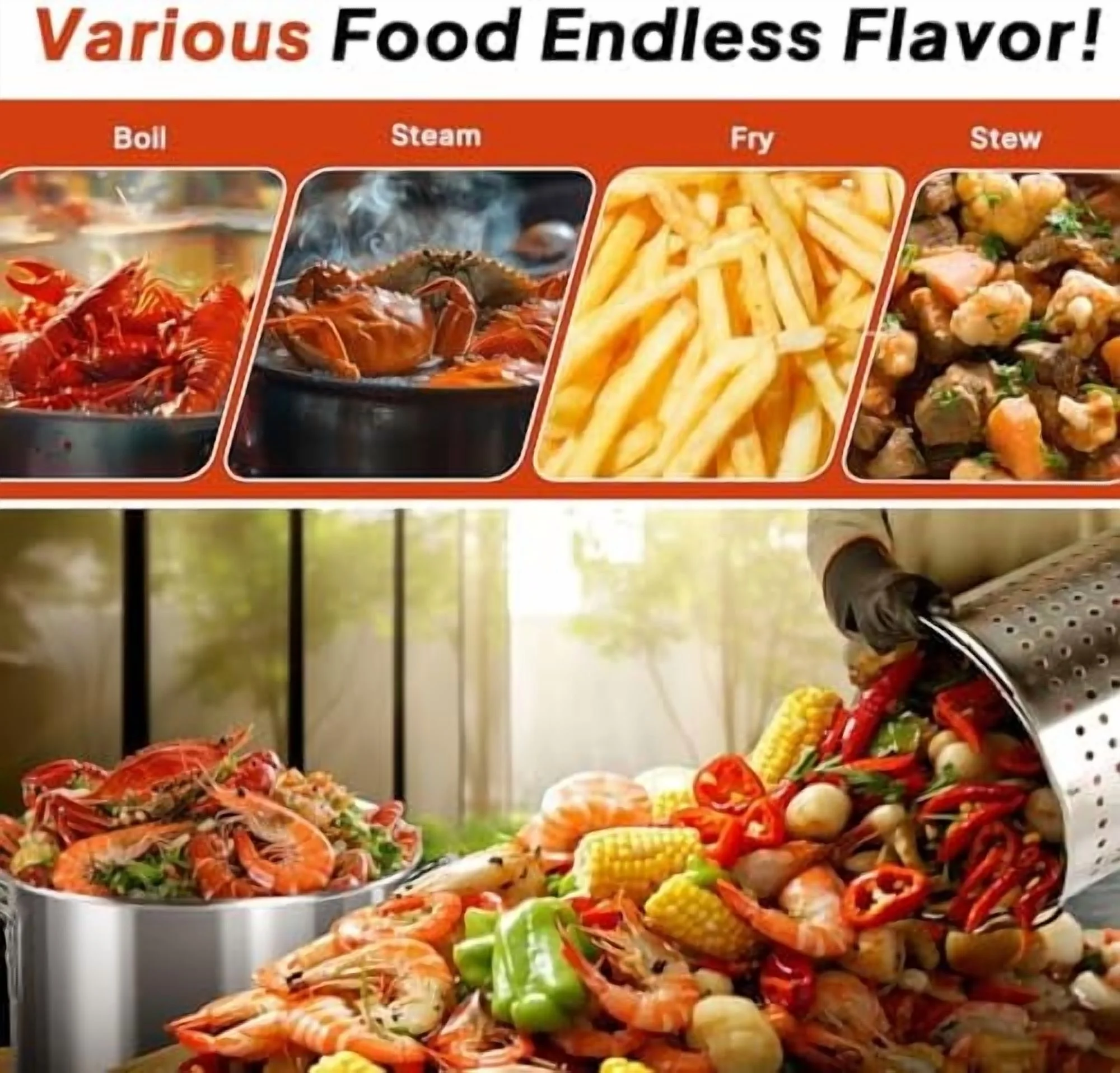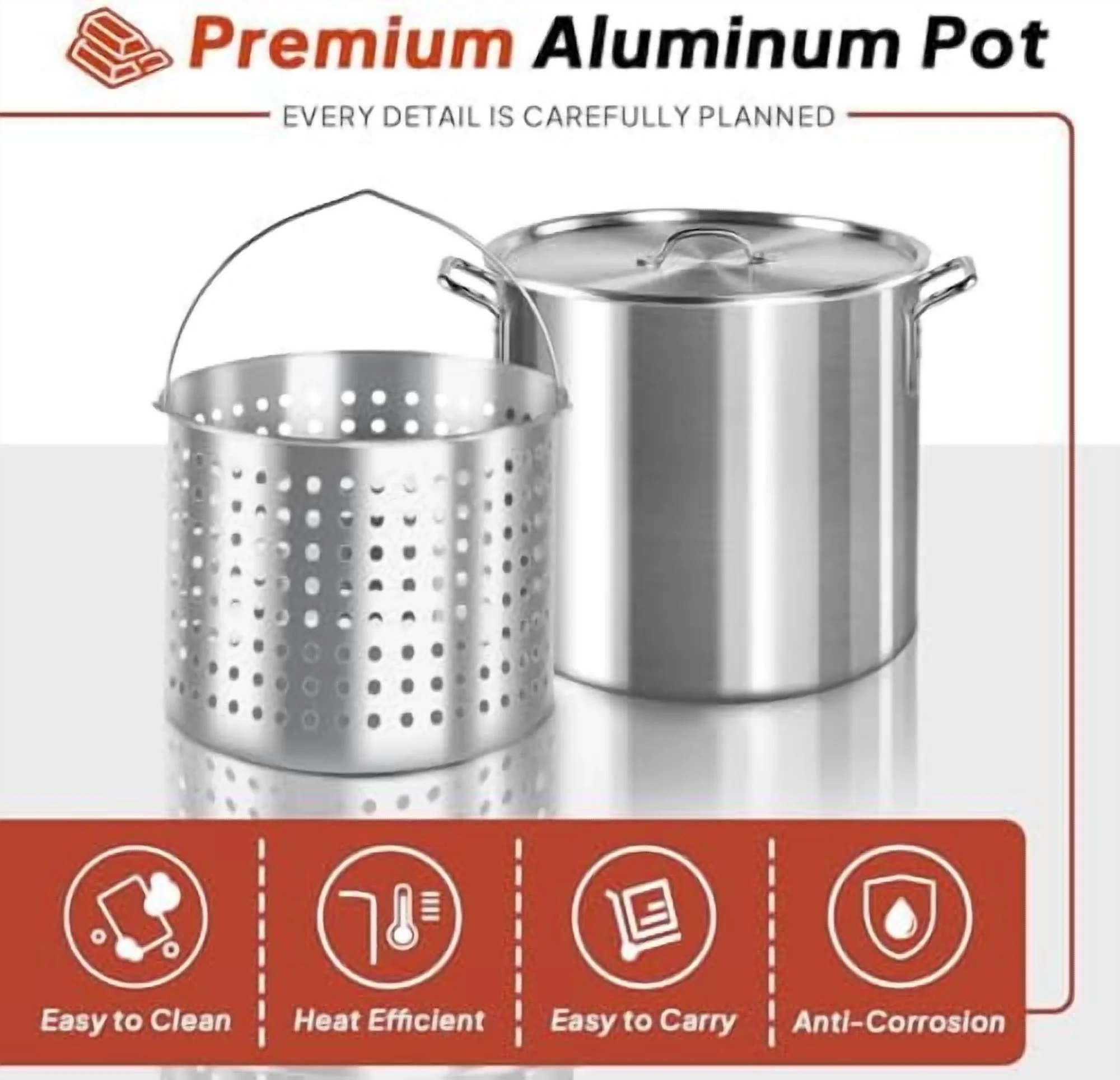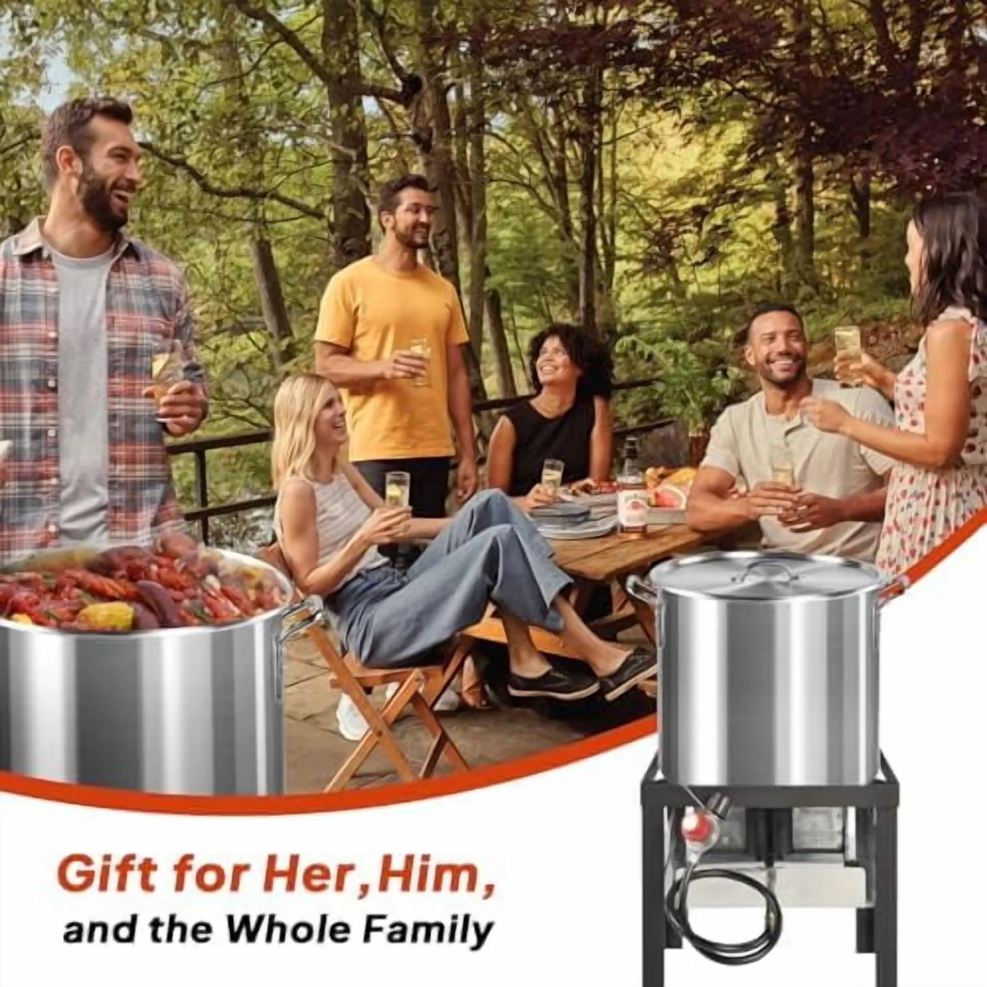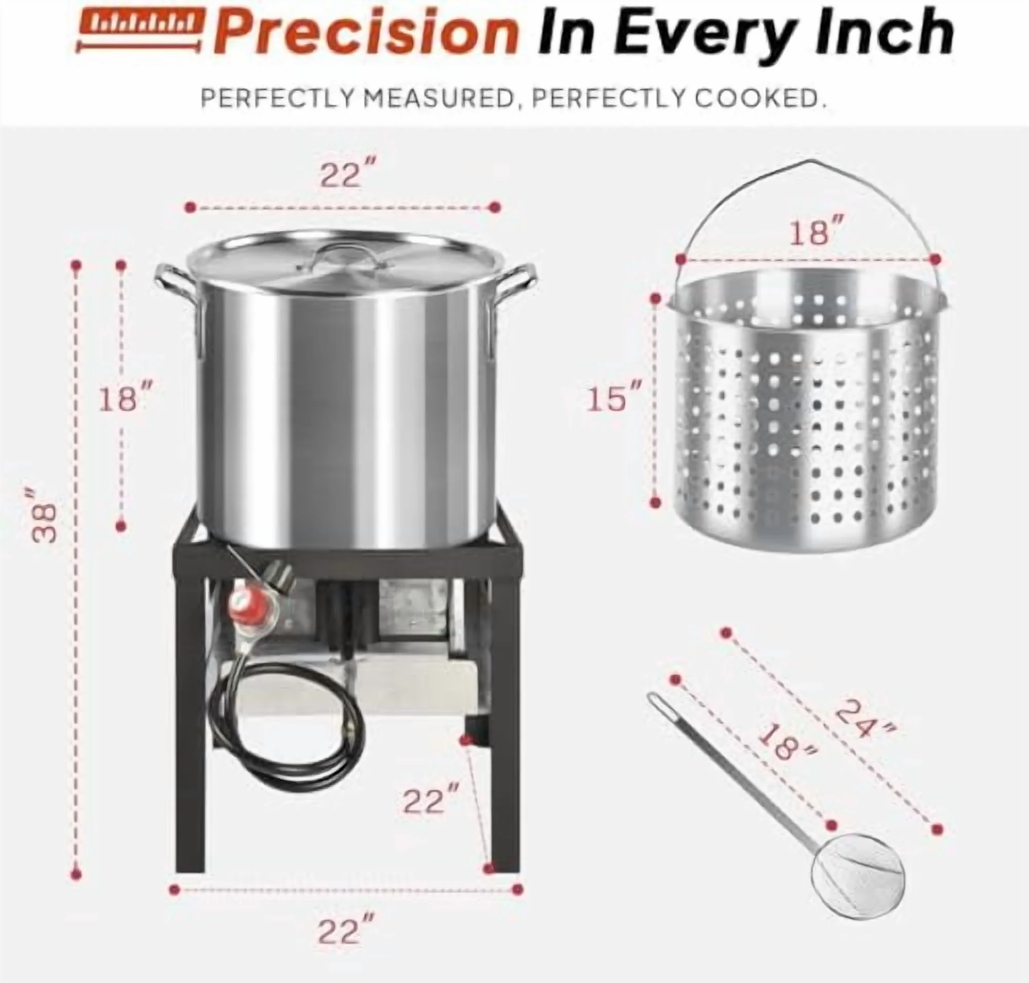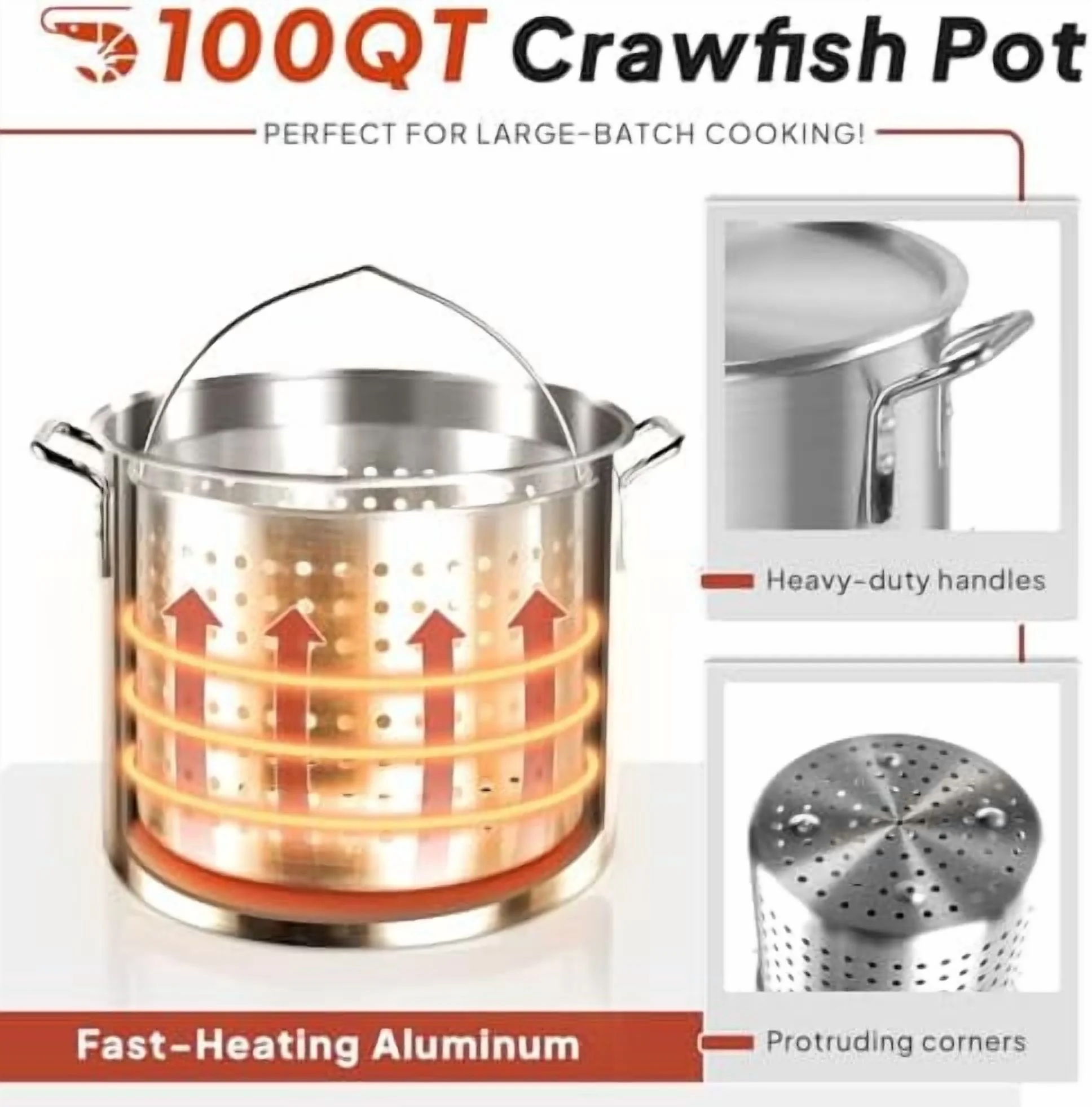 100QT Seafood Boil Pot with 80QT Basket | Dust Cover | 16 - Inch Skimmer | Crawfish Boiler & Crab Boil Pot | 110, 000BTU Jet - Burner | 20PSI CSA Certified Regulator | Ideal for Outdoor Cooking