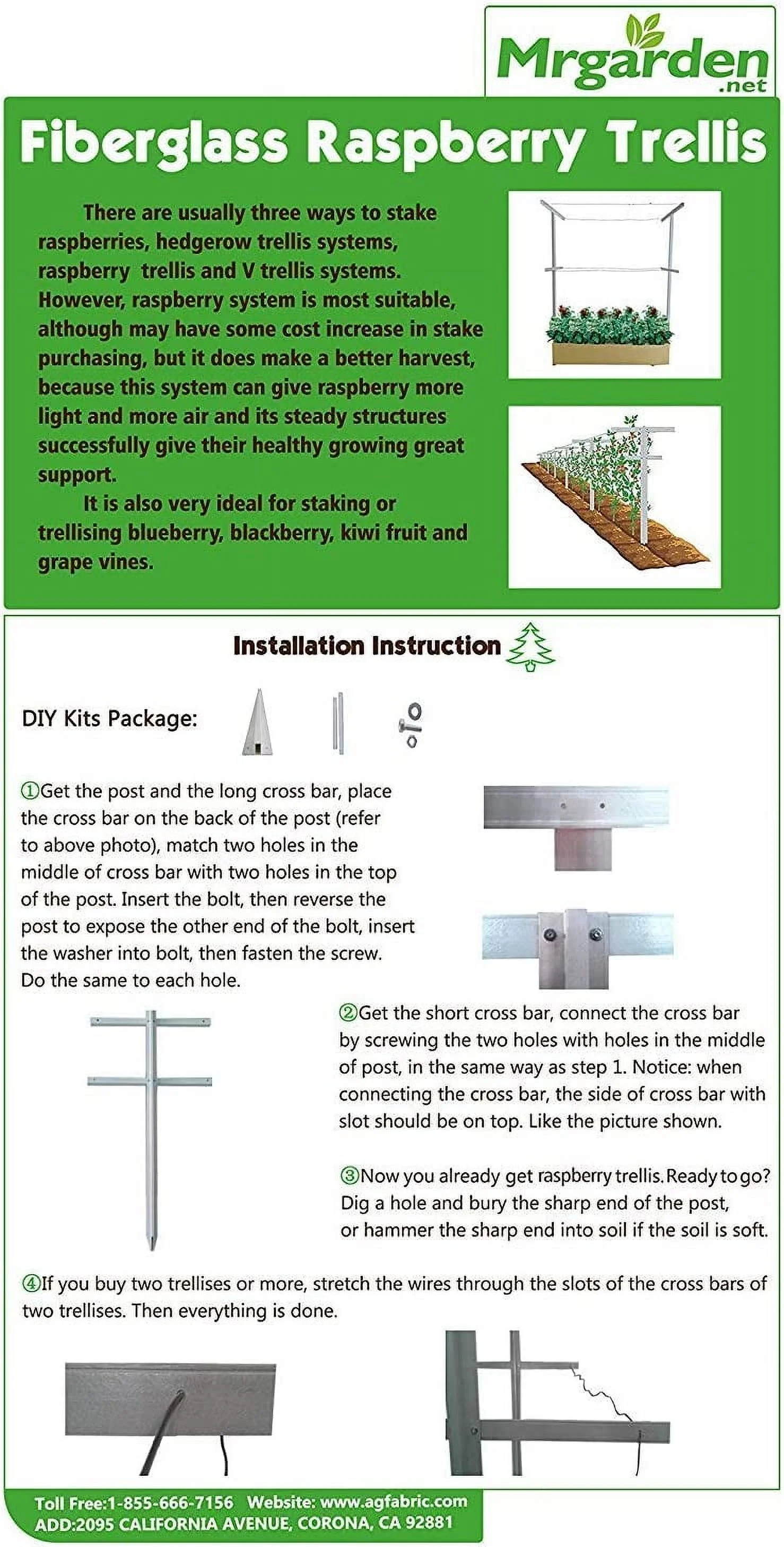 - Fiberglass Material Raspberry Cross Stake System with adjustable arms