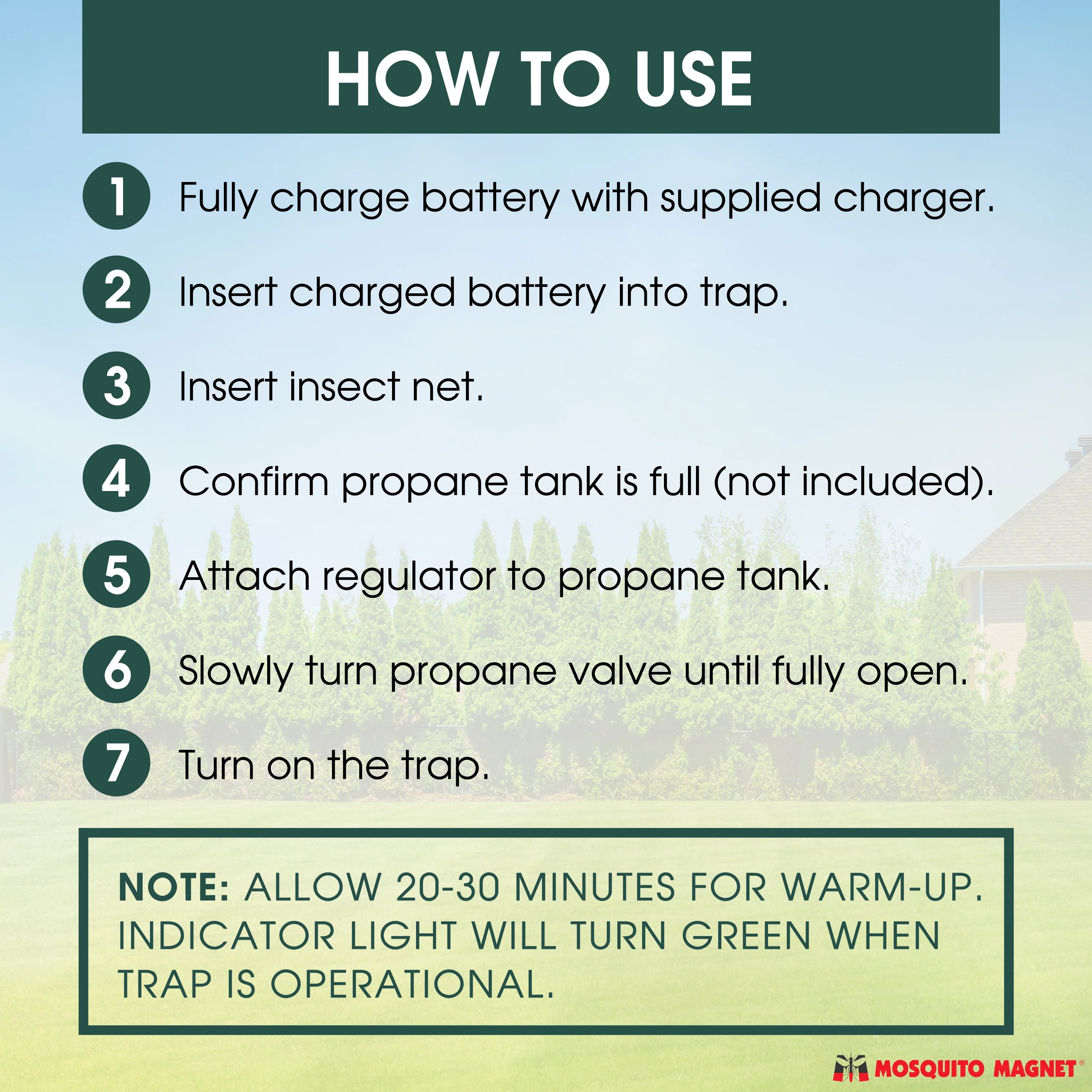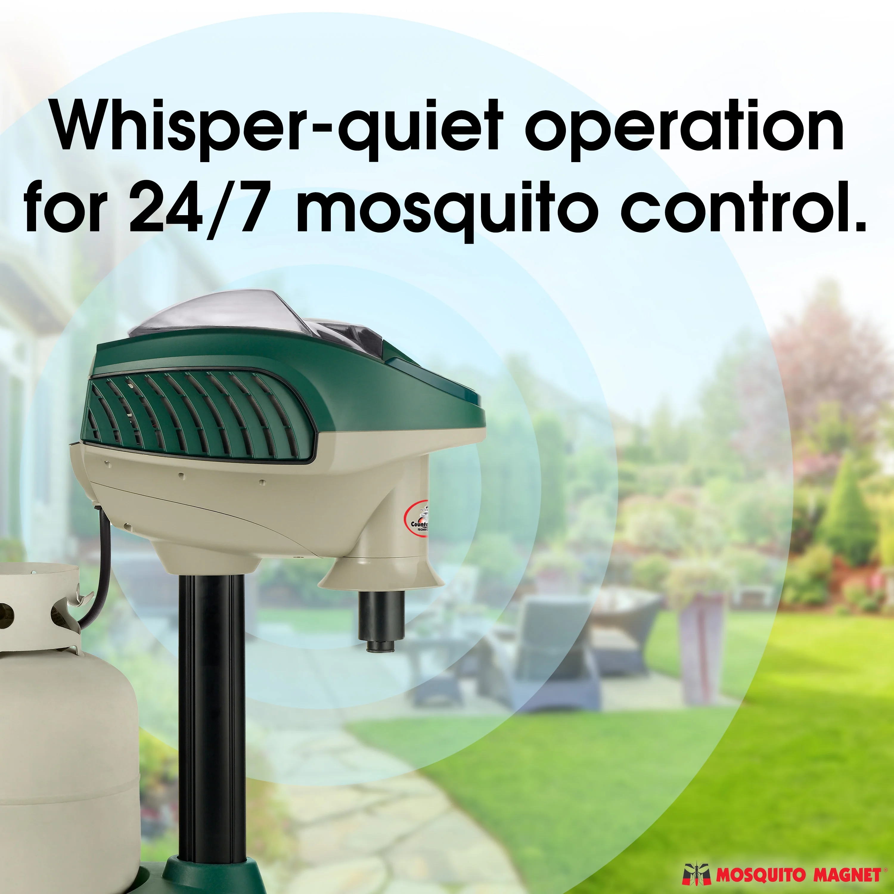 - Features the Mosquito Magnet patented Catalytic Converter - converts propane into carbon dioxide (propane tank not included), heat, and moisture to simulate human breath