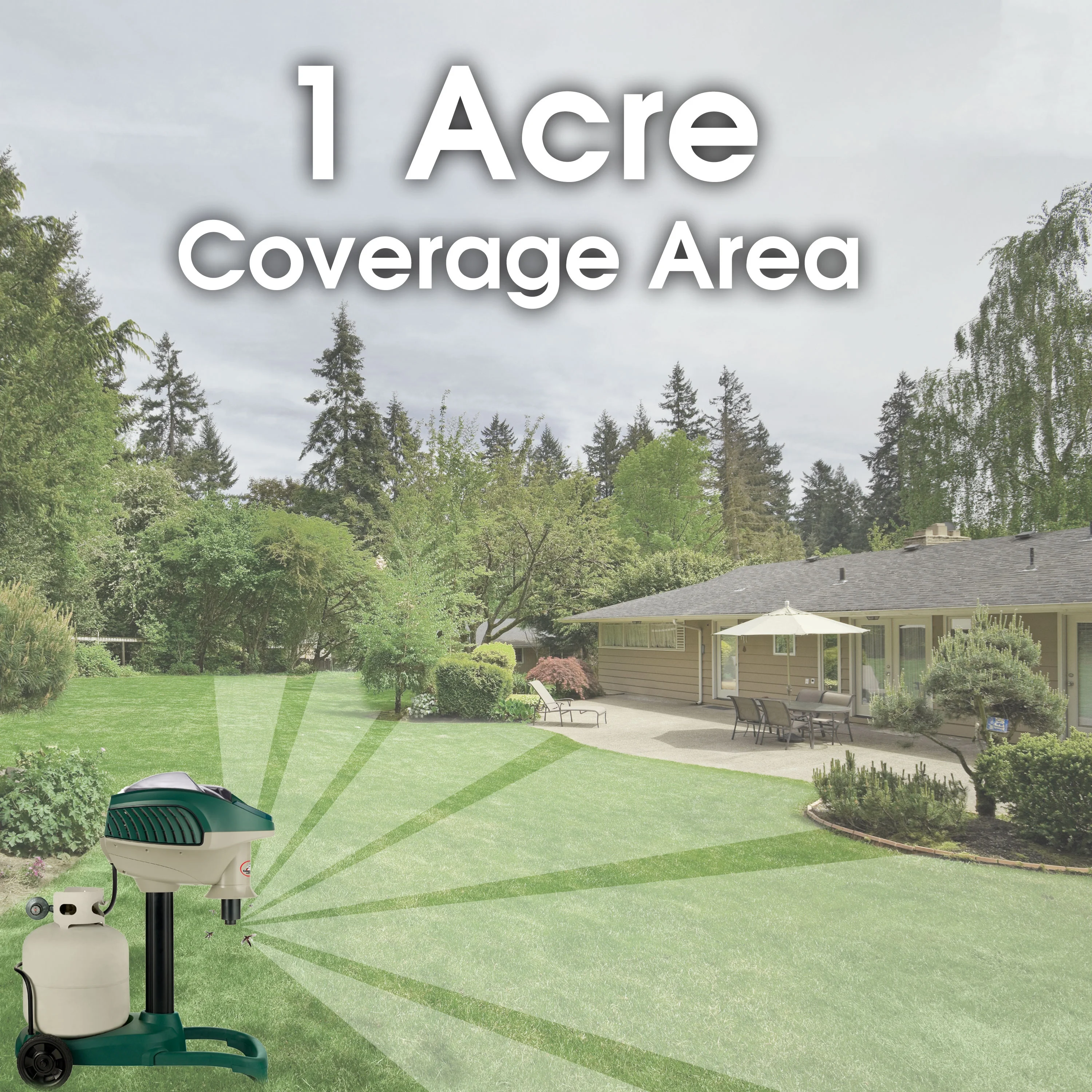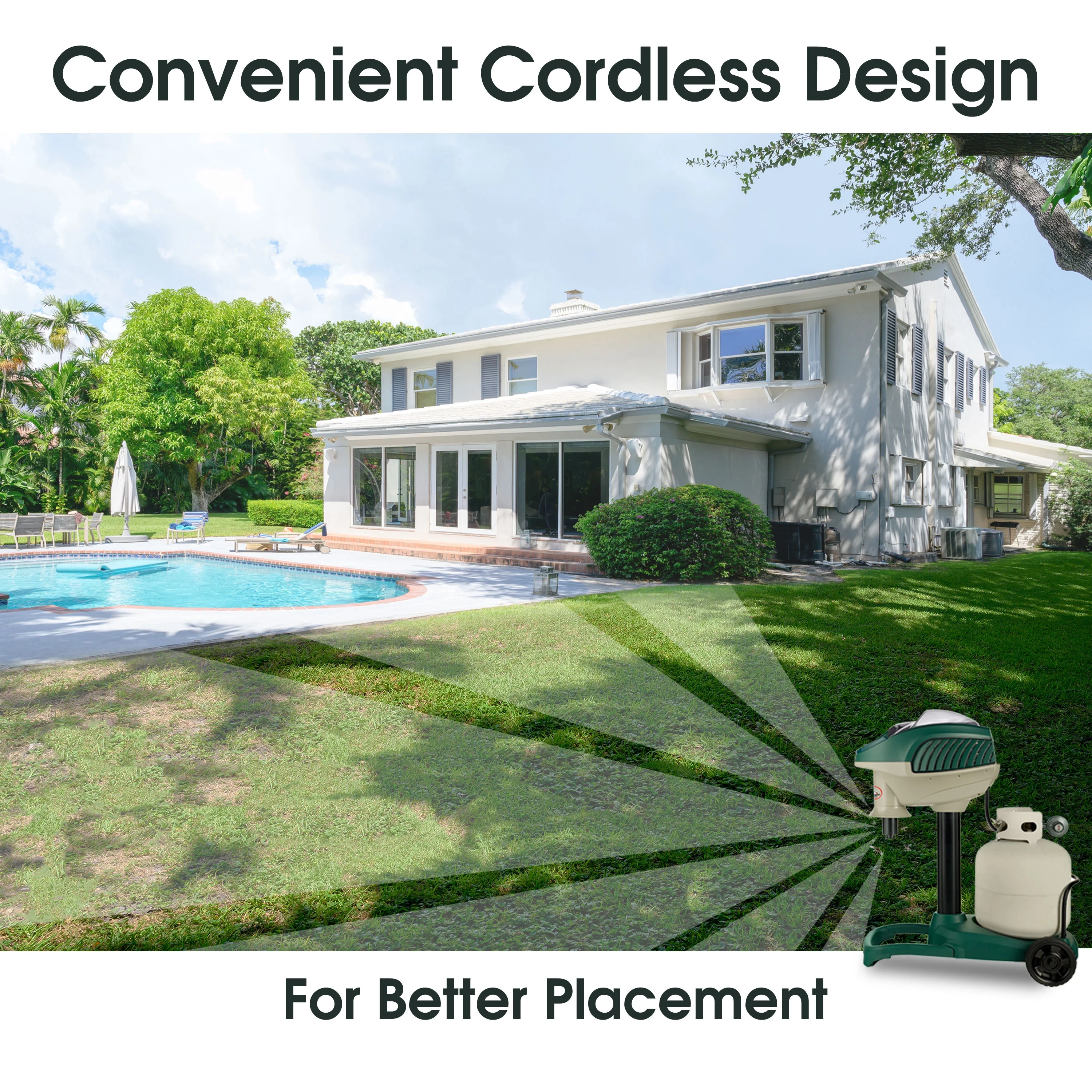 - Cordless. Ideal for larger yards - protects up to 1 acre