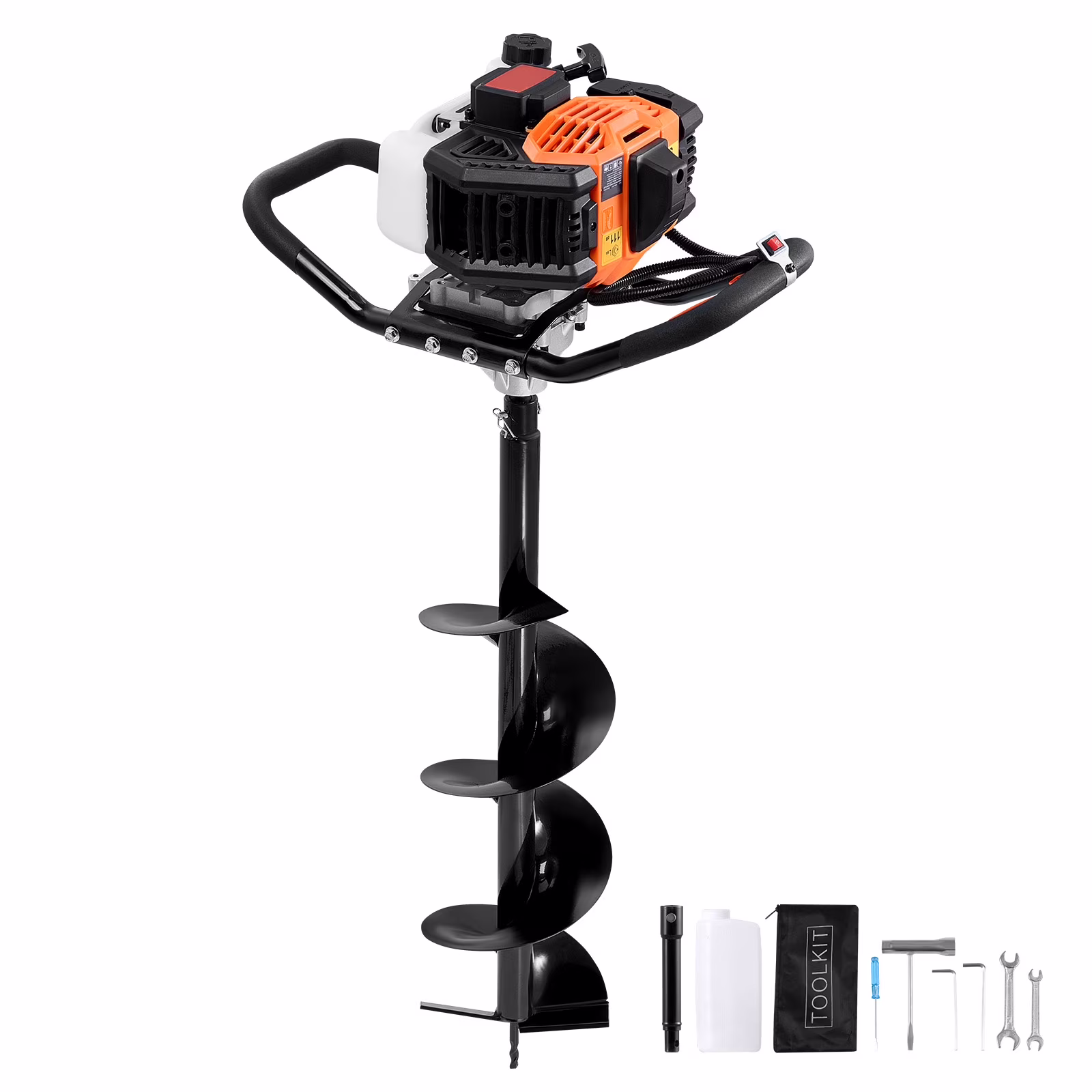 - KFFKFF Power: With a 52cc displacement fuel engine, this auger delivers a powerful 1450W of power. It has a rotational speed of up to 9500rpm and the drill bit rotates up to 32rpm. With its strong engine power, it can quickly complete drilling tasks and handle various soil and terrain conditions, making it perfect for heavy-duty work requirements.