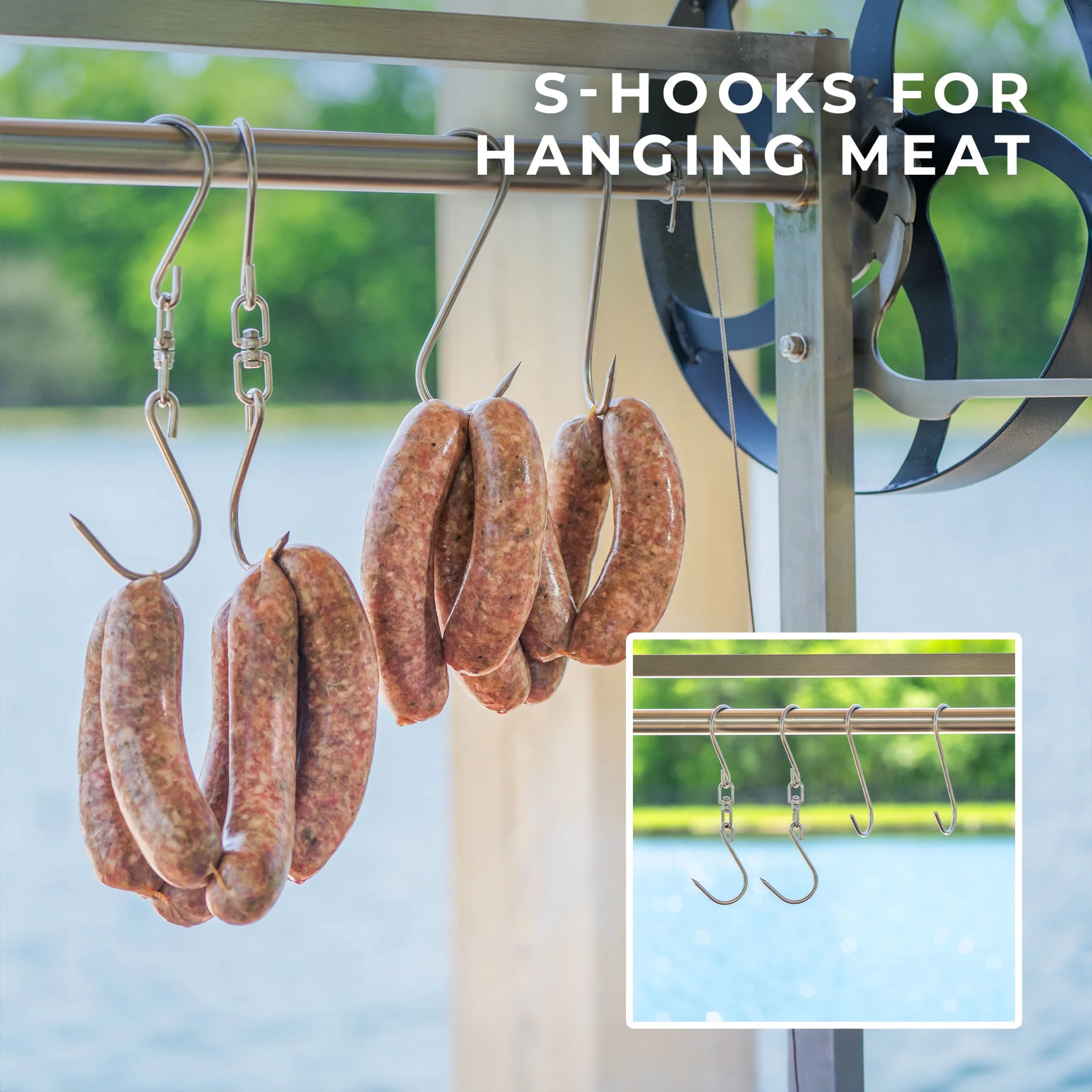 - Versatile S-Hooks: 4 stainless steel hooks for Gaucho-style vertical grilling, perfect for slow cooking and smoking multiple cuts of meat simultaneously