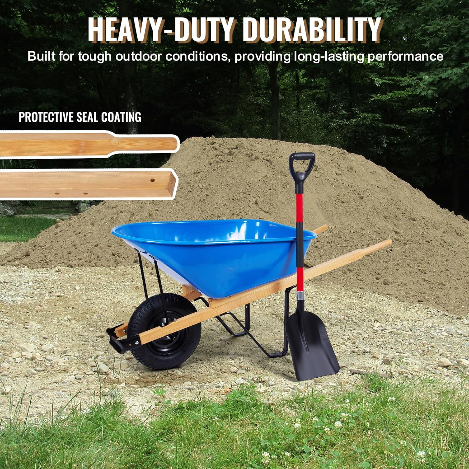 Product descriptionHeavy-Duty Wooden Handles �C Strong, Comfortable, Universal FitCrafted fromFSC-certified premium pine, these60-inch pre-drilled handlesare built to handle heavy loads with ease. Theiruniversal sizing and smooth finishensure a secure grip and quick installation on most standard wheelbarrows. Durable, comfortable, and sustainably made �� ready to get back to work.