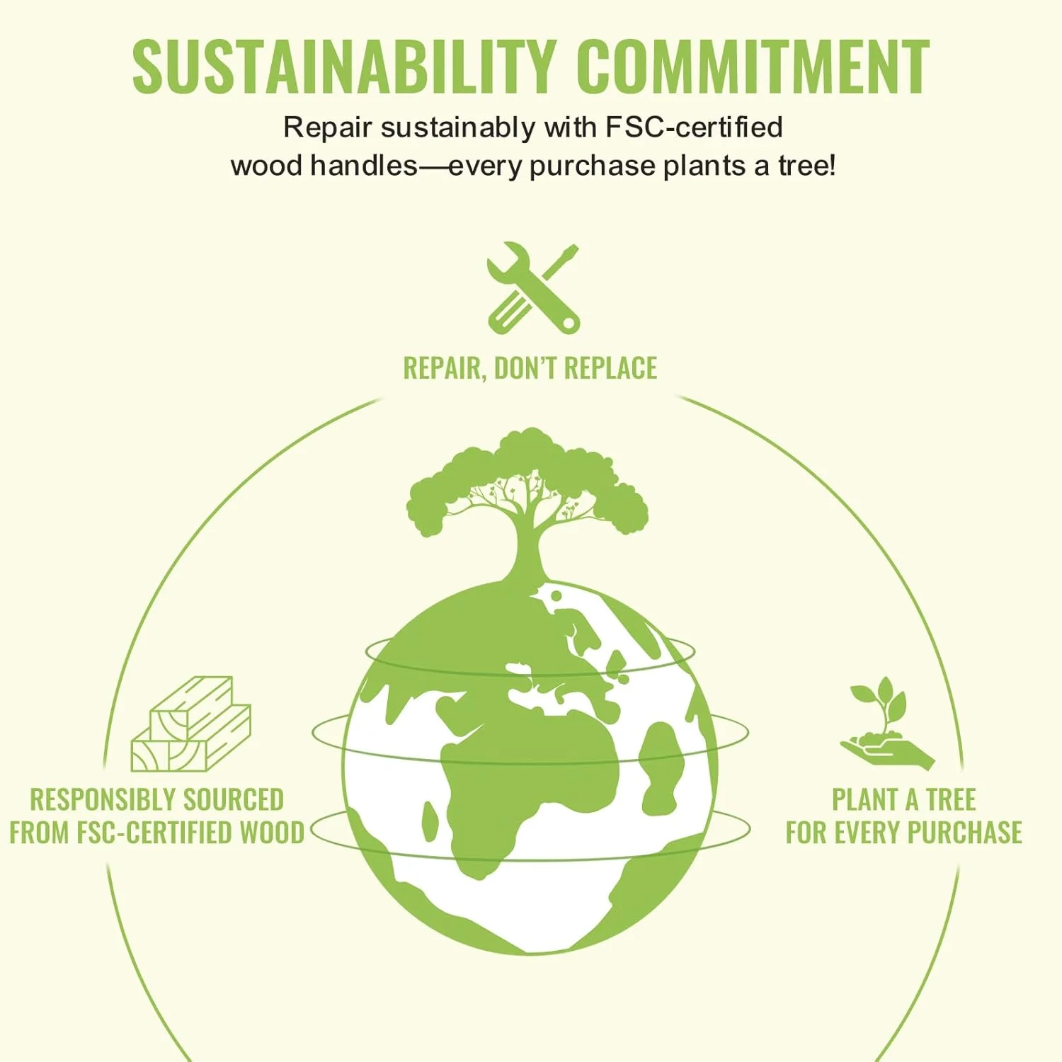 Built from premium pine and sealed to withstand the elements, our handles are made to last��just like the wheelbarrows they help restore. And because we believe in sustainable solutions, we don��t stop at quality. Every time you buy a kit, we plant a tree. It's our way of giving back and keeping the cycle of repair, reuse, and reforestation alive.