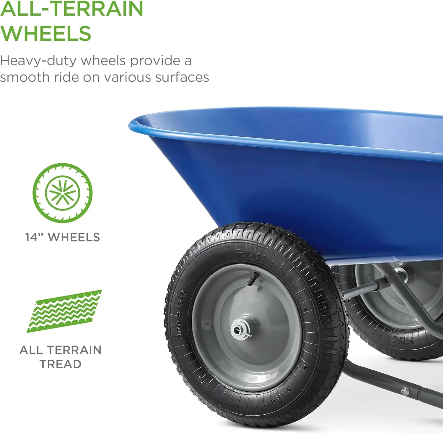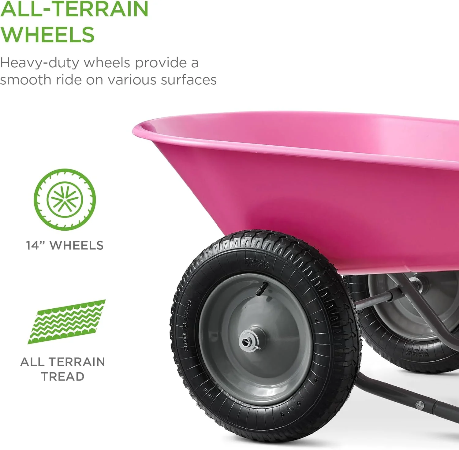 - MULTIPURPOSE GARDEN CART: Deep wheelbarrow holds up to 5 cubic feet of soil, bricks, mulch, gravel, and more, so you can conveniently carry out landscaping and other home improvement projects