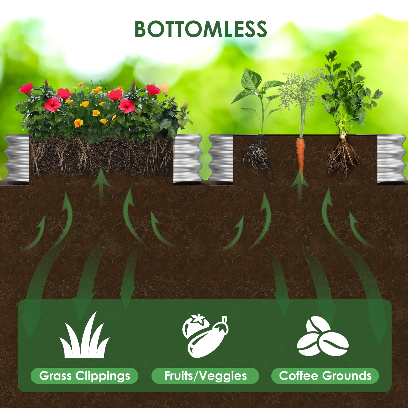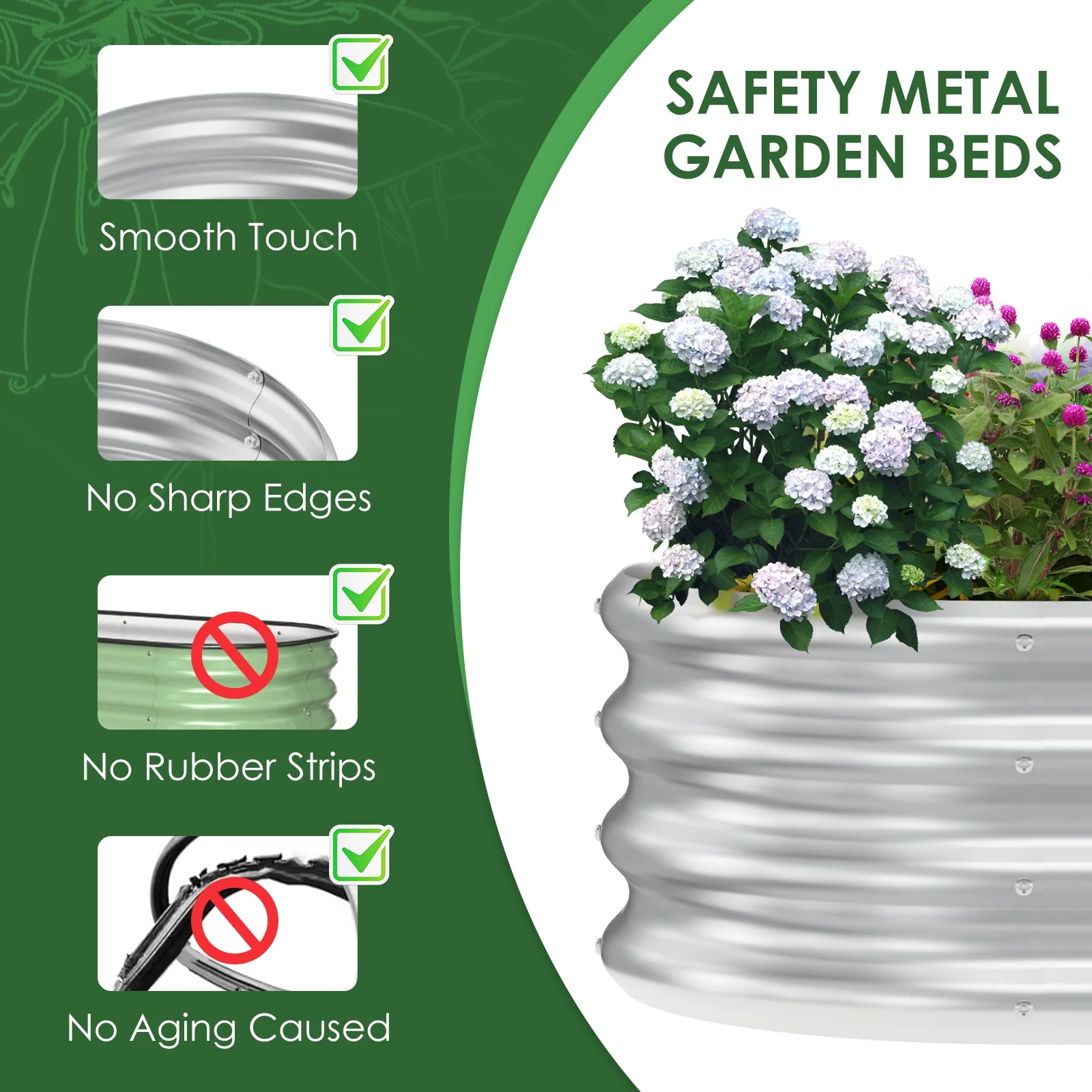 - Elevated Design: The raised design helps reduce the need for bending and kneeling, easing the physical strain of gardening, especially for seniors or those with mobility challenges. 2.Versatile Use: Suitable for various gardening needs, whether for home gardens, balcony planting, or community gardening projects, it meets all your planting requirements. 3.Eco-Friendly and Healthy: Made from environmentally friendly materials, it is non-toxic and safe, ensuring your plants grow in a healthy environment and providing you with safe, healthy vegetables and fruits.