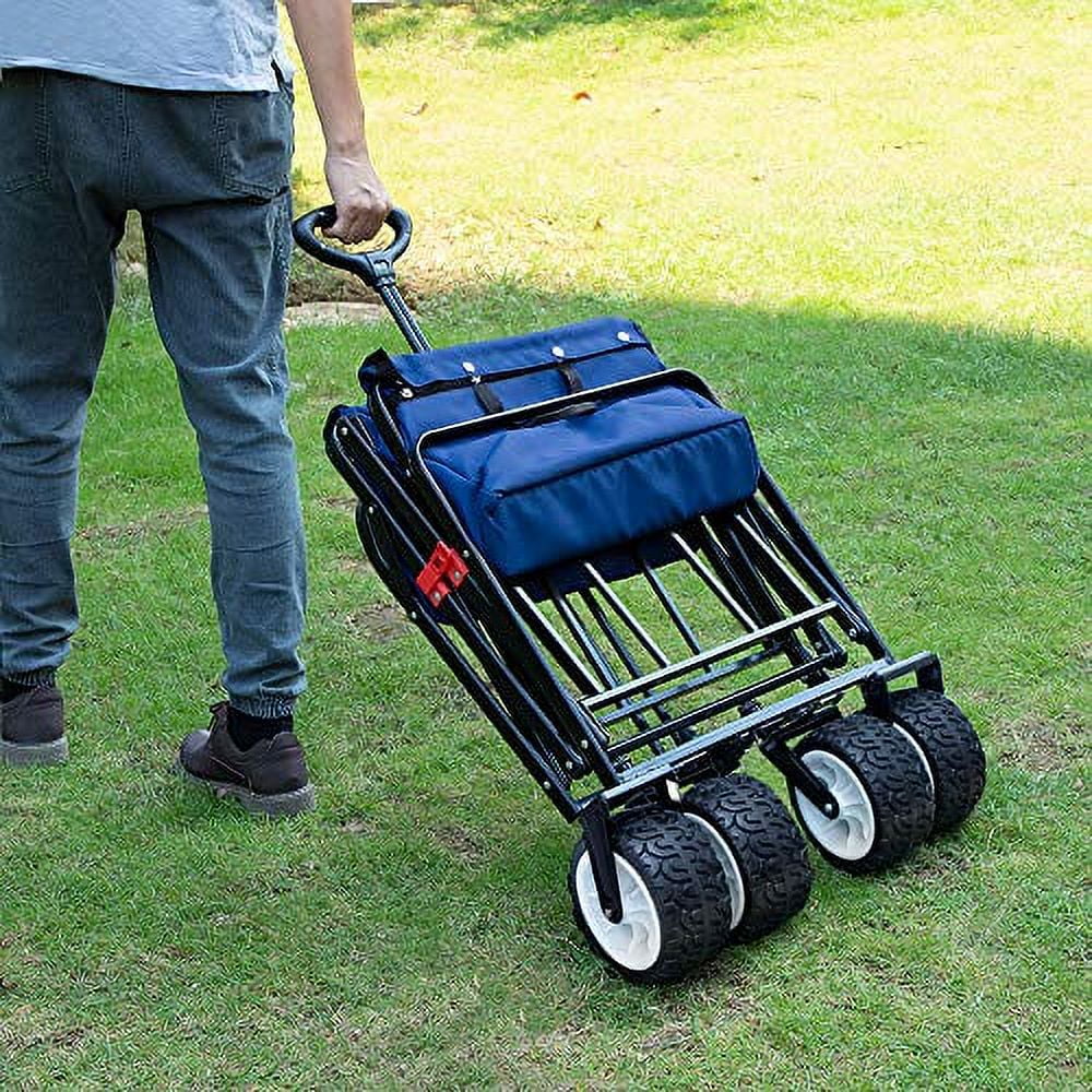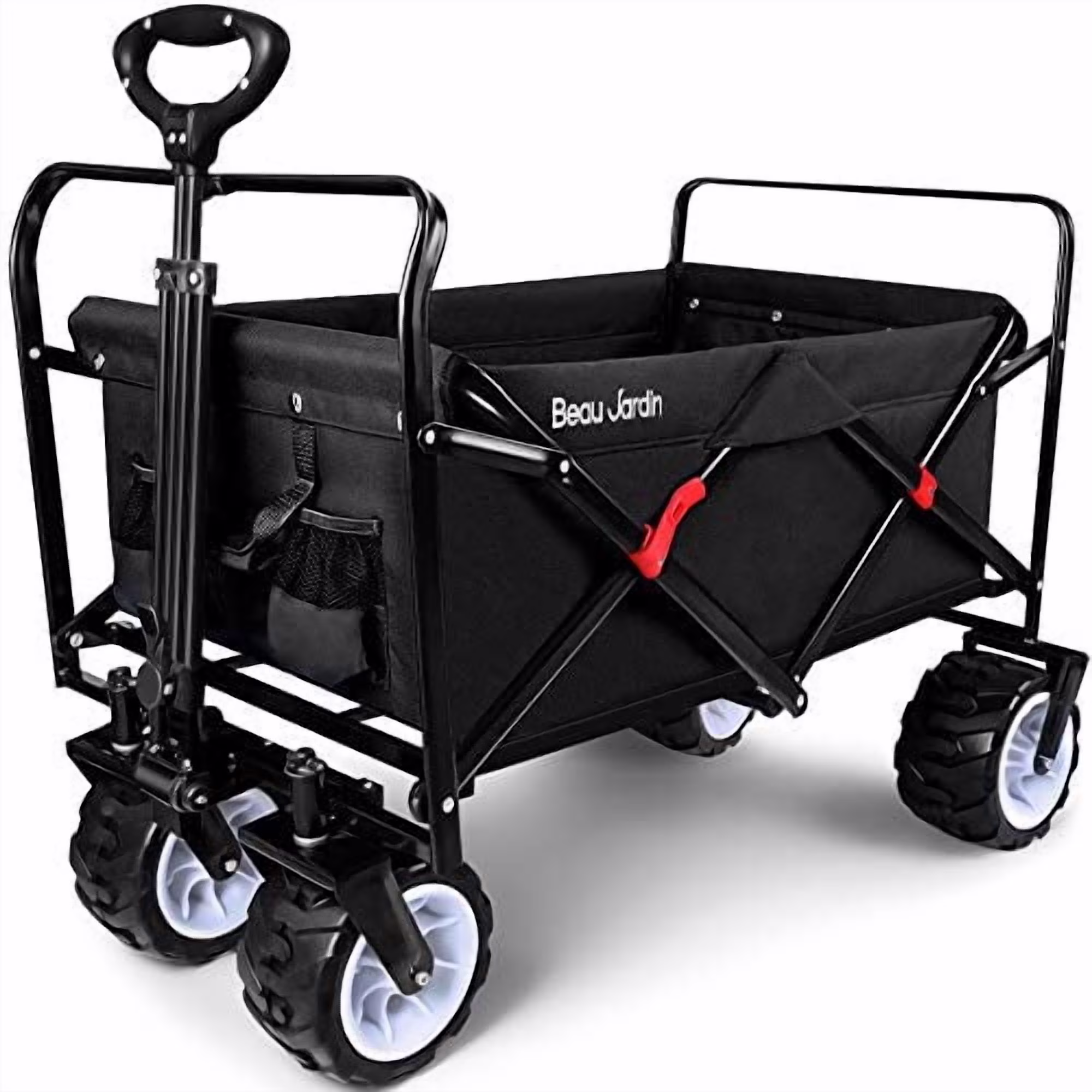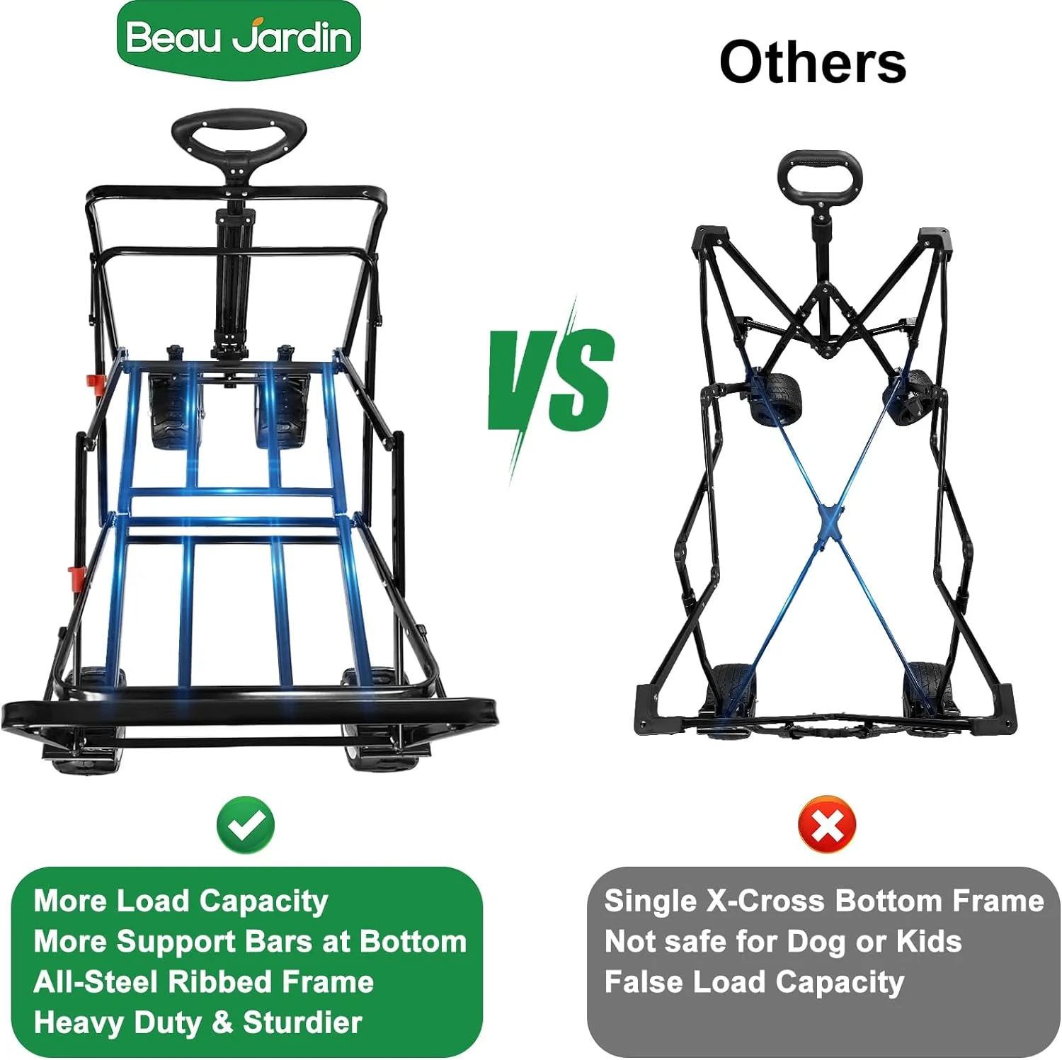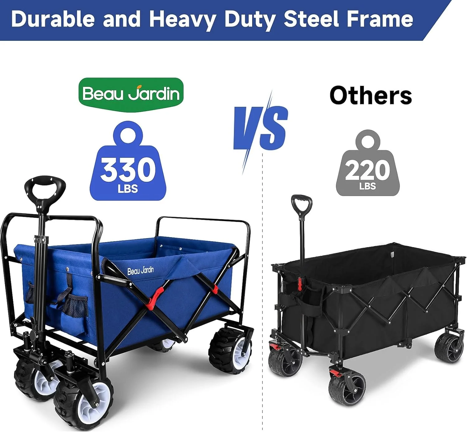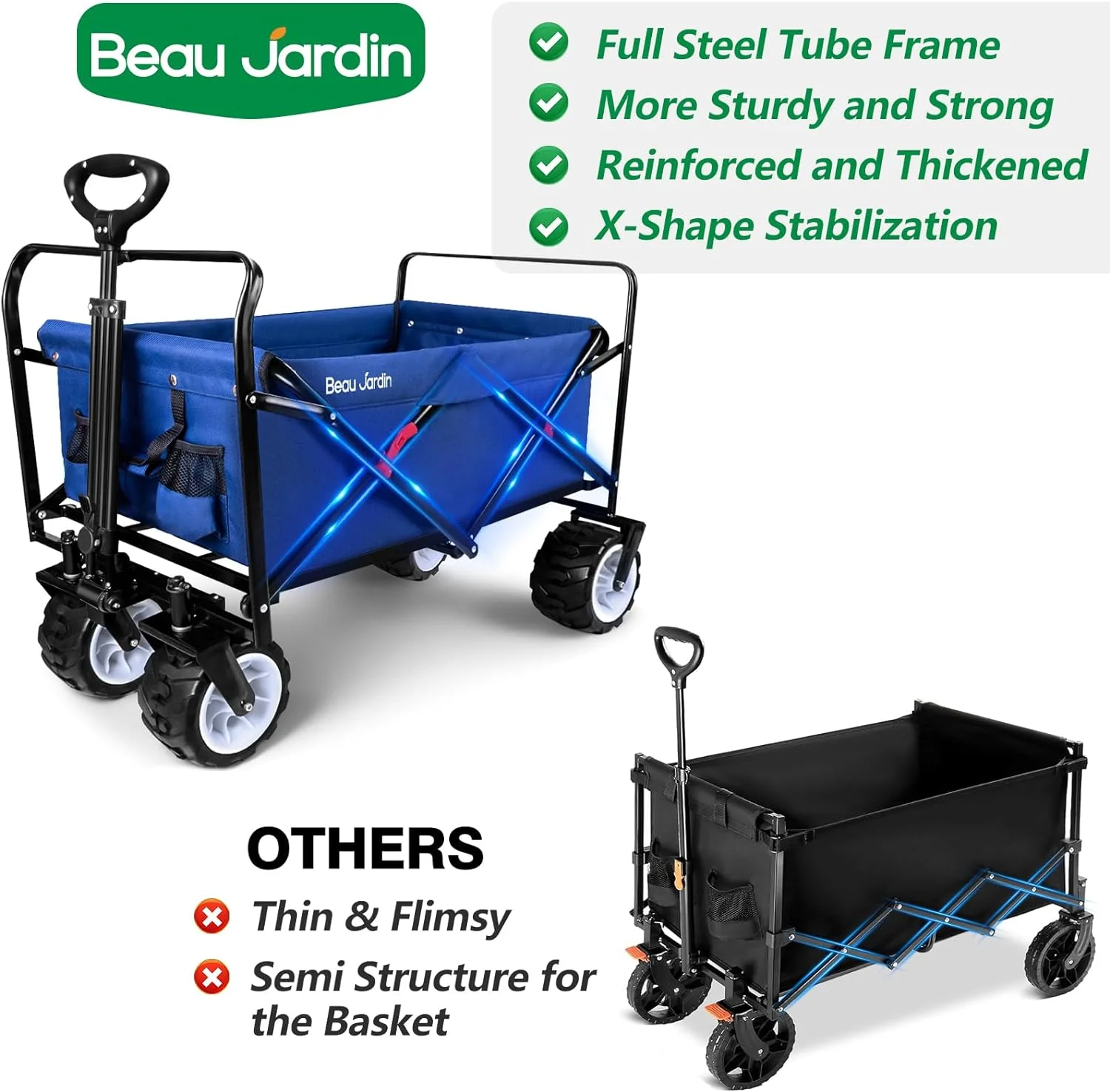 BEAU JARDIN Collapsible Folding Wagon 300 Pound Capacity Heavy Duty Foldable Beach Wagon Cart Grocery Utility Wagon for Garden Sports Shopping Outdoor All-Terrain Wheel Portable Black