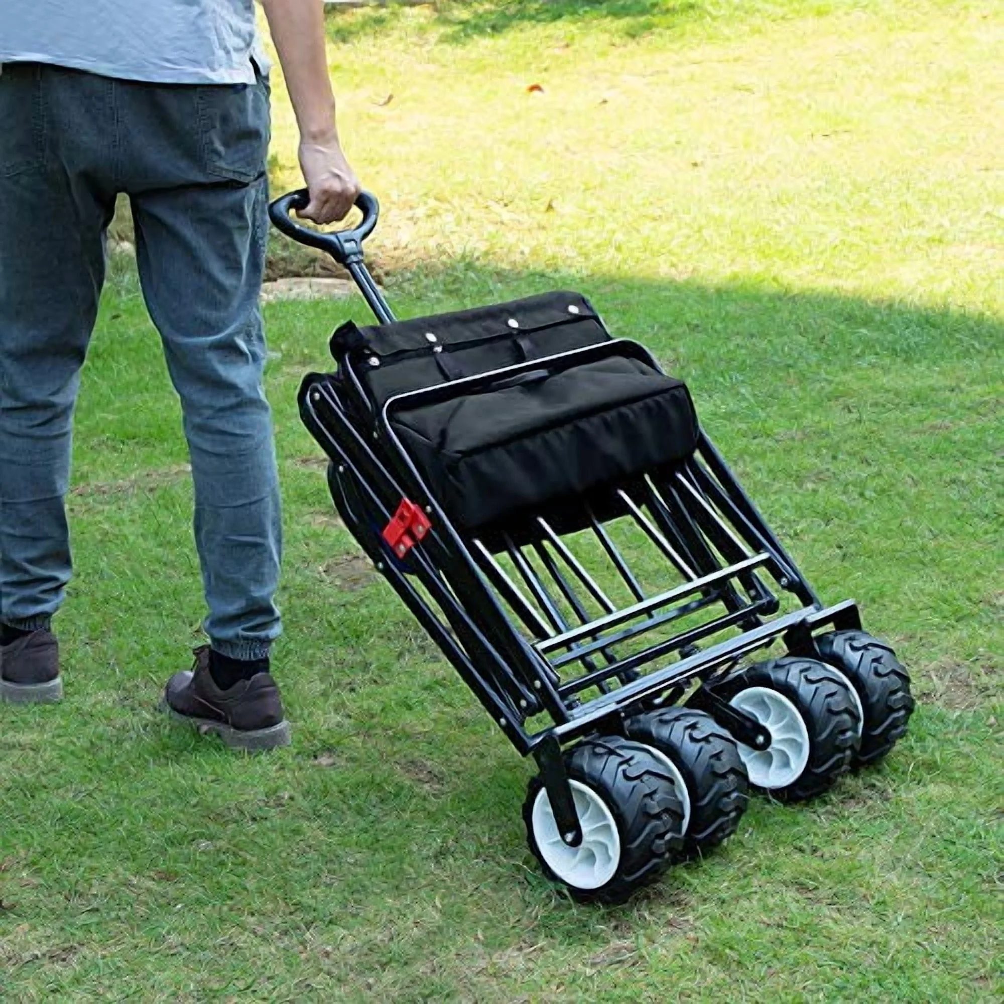 - Easy transport : sets up in seconds, no assembly required! Small enough to fit in closet, on the wall or in the trunk of any standard car. Folding utility beach wagon cart is perfect for transporting shopping, on family outings or as a goods trolley, and great for trips, travel, vaction, garden,park,camping,grocery store, zoo, outdoor sporting events, or just move things.