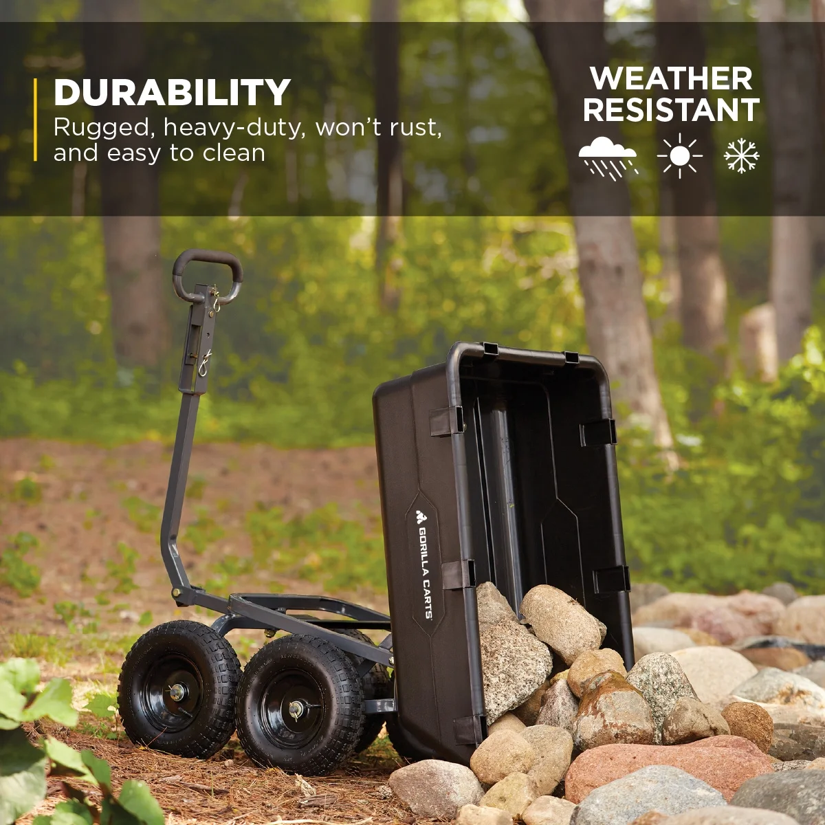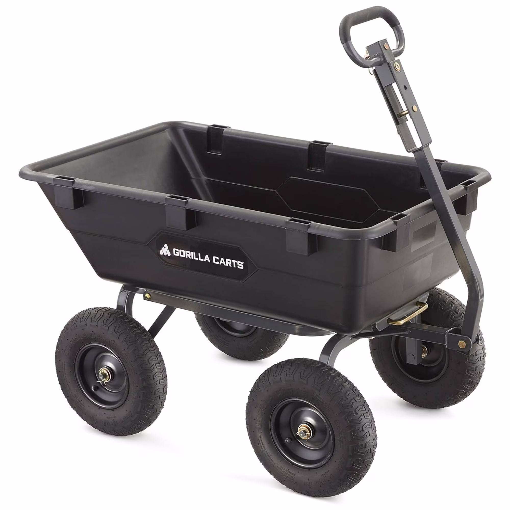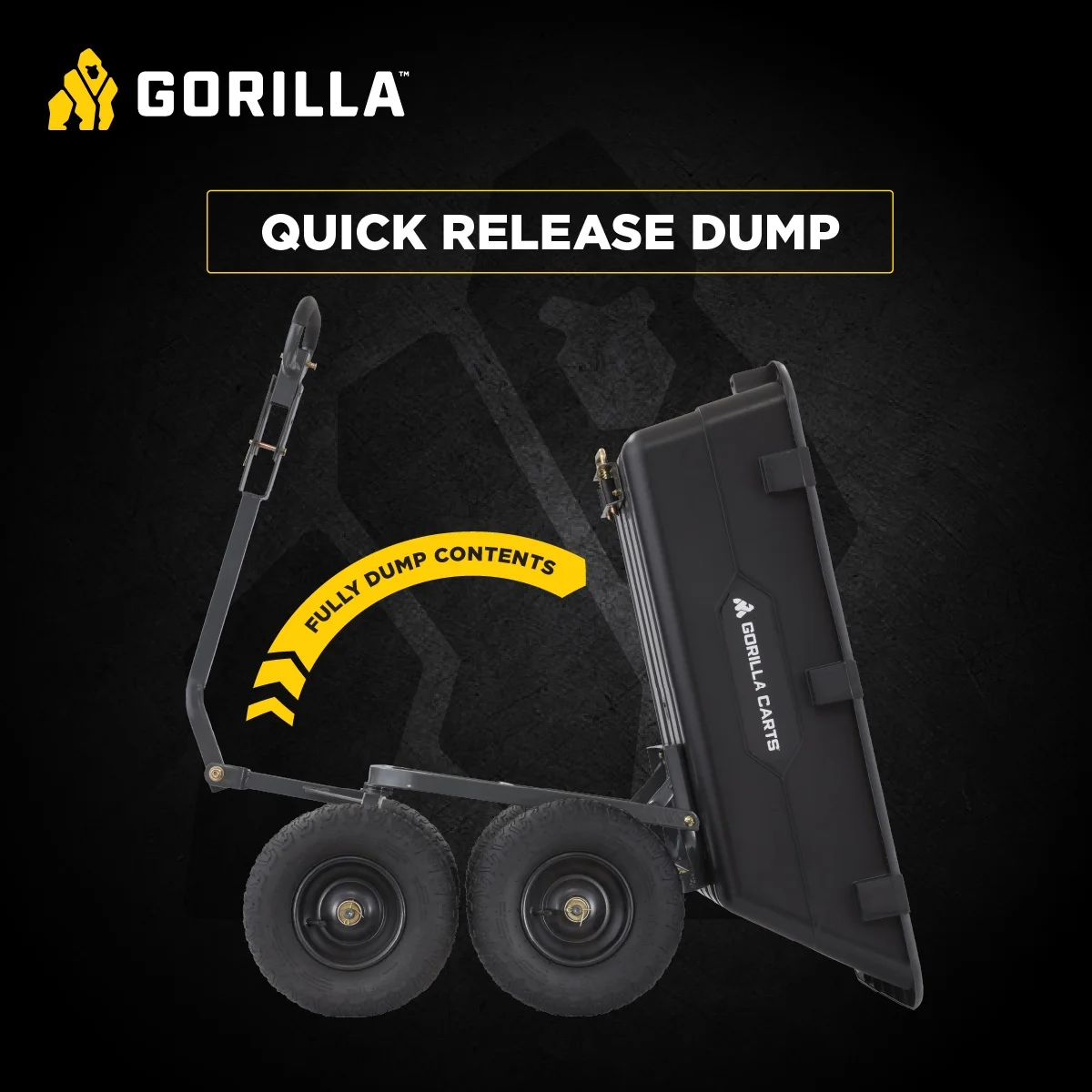 - Gorilla products are built smart and always tough. Tackle your lawn, garden, and hauling needs with confidence with this poly yard dump cart
