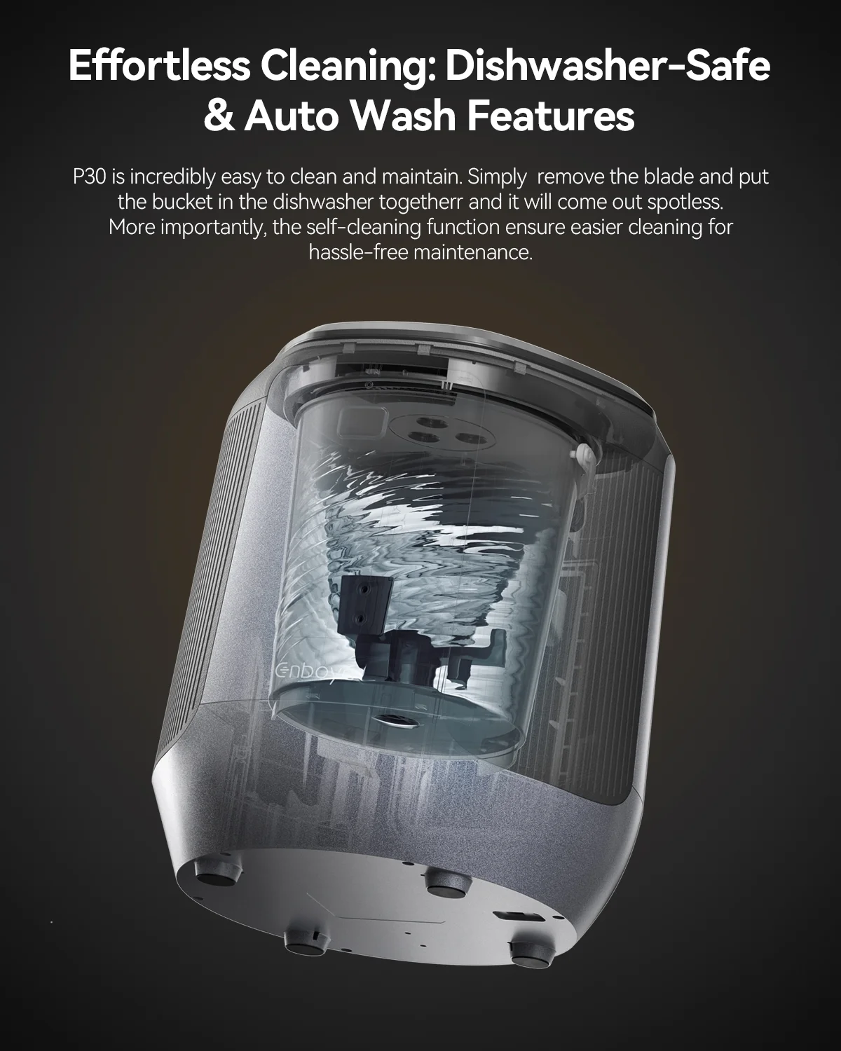 - EFFORTLESS CLEANING-AUTO WASH & DISHWASHER-SAFE: P30 is incredibly easy to clean and maintain with dishwasher-safe or auto wash. You can simply remove the blade and put the bucket in the dishwasher together and the bucket will come out spotless.