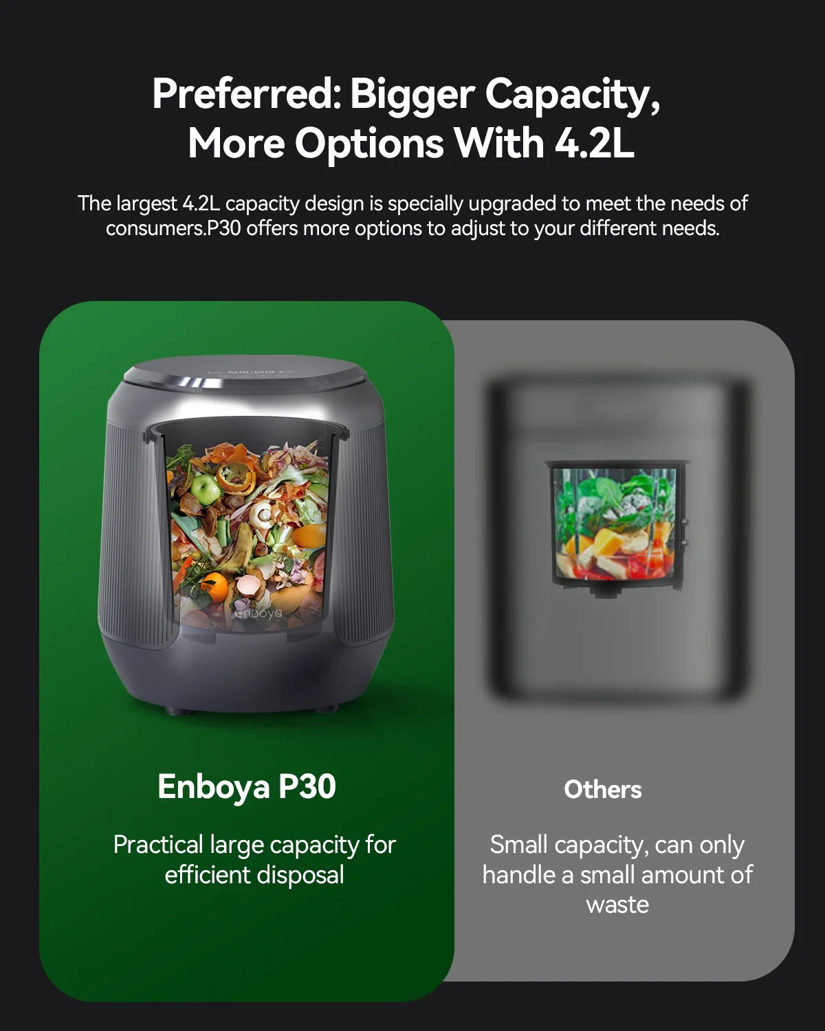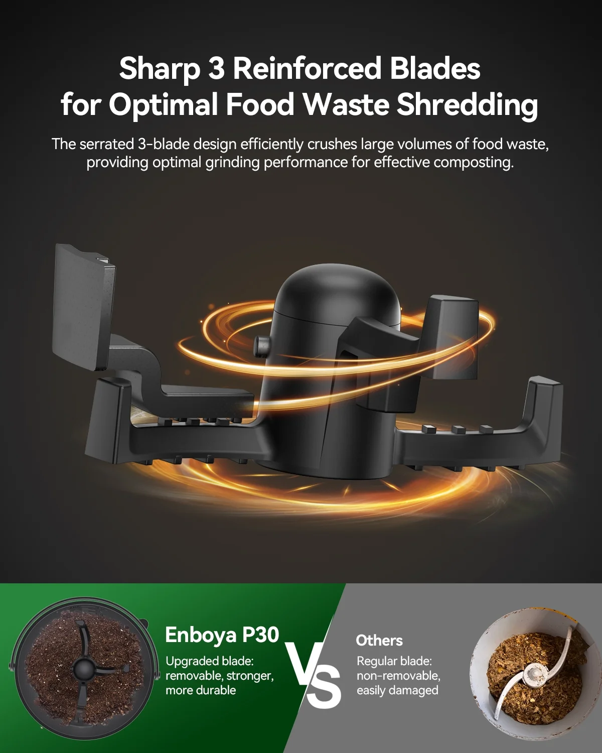 - THE ULTIMATE COMPOSTER - WASTE TO WEALTH: Smart compost bin that turn your home's food waste into valuable fertilizer by reducing the amount of waste by 90%, turly a great food cycler machine to recycle. Minimizing waste and eliminating odors, Enboya P30 electric composter is ideal for indoor use and a treasure for your garden plant