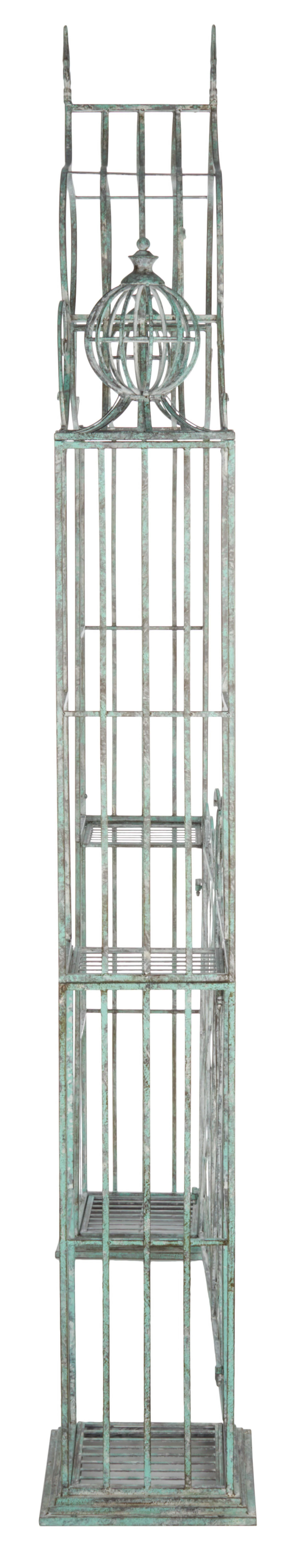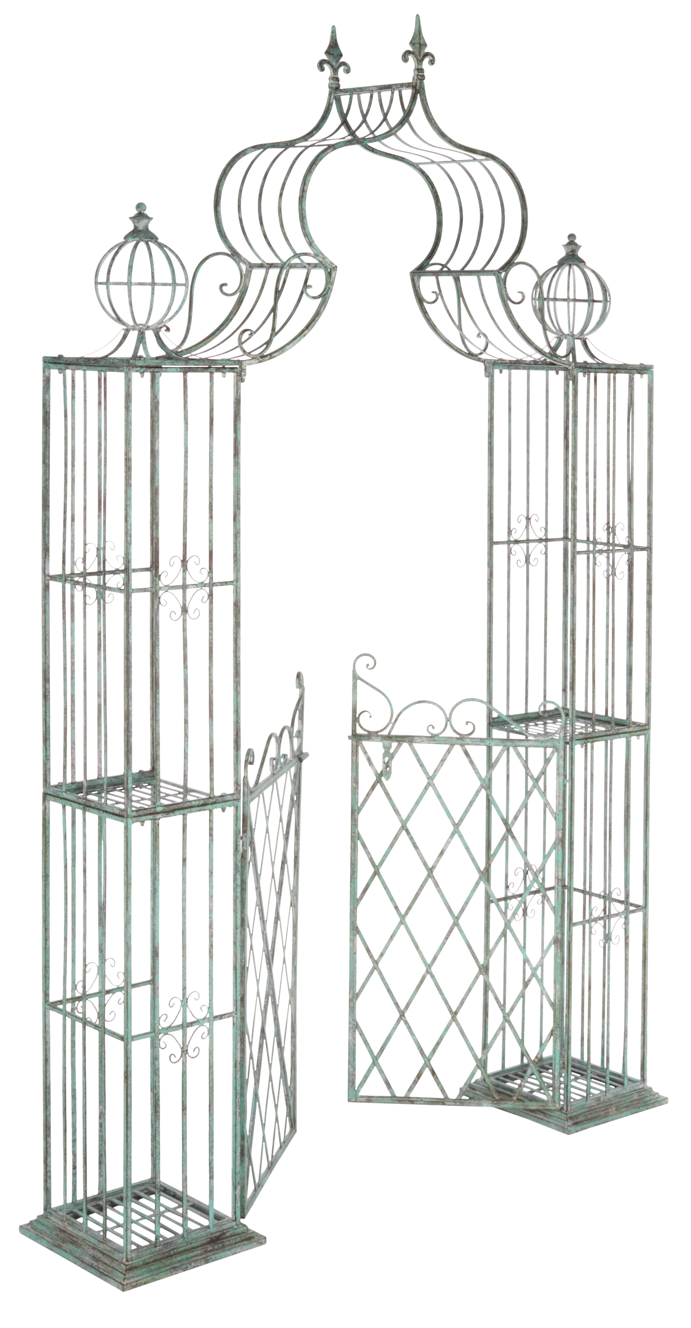 Fanciful as a Victorian romance novel, this intricately detailed outdoor Beatrix Arbor is a four season stunner. Beatrix's classic lines in antique blue iron add strikingly elaborate architecture to the garden, providing a frame for sprawling vines and scented blossoms. Our stunning arbor brings beautiful definition to a gated entry or garden path or adds a romantic shaded cover for a garden bench.- Material: Metal