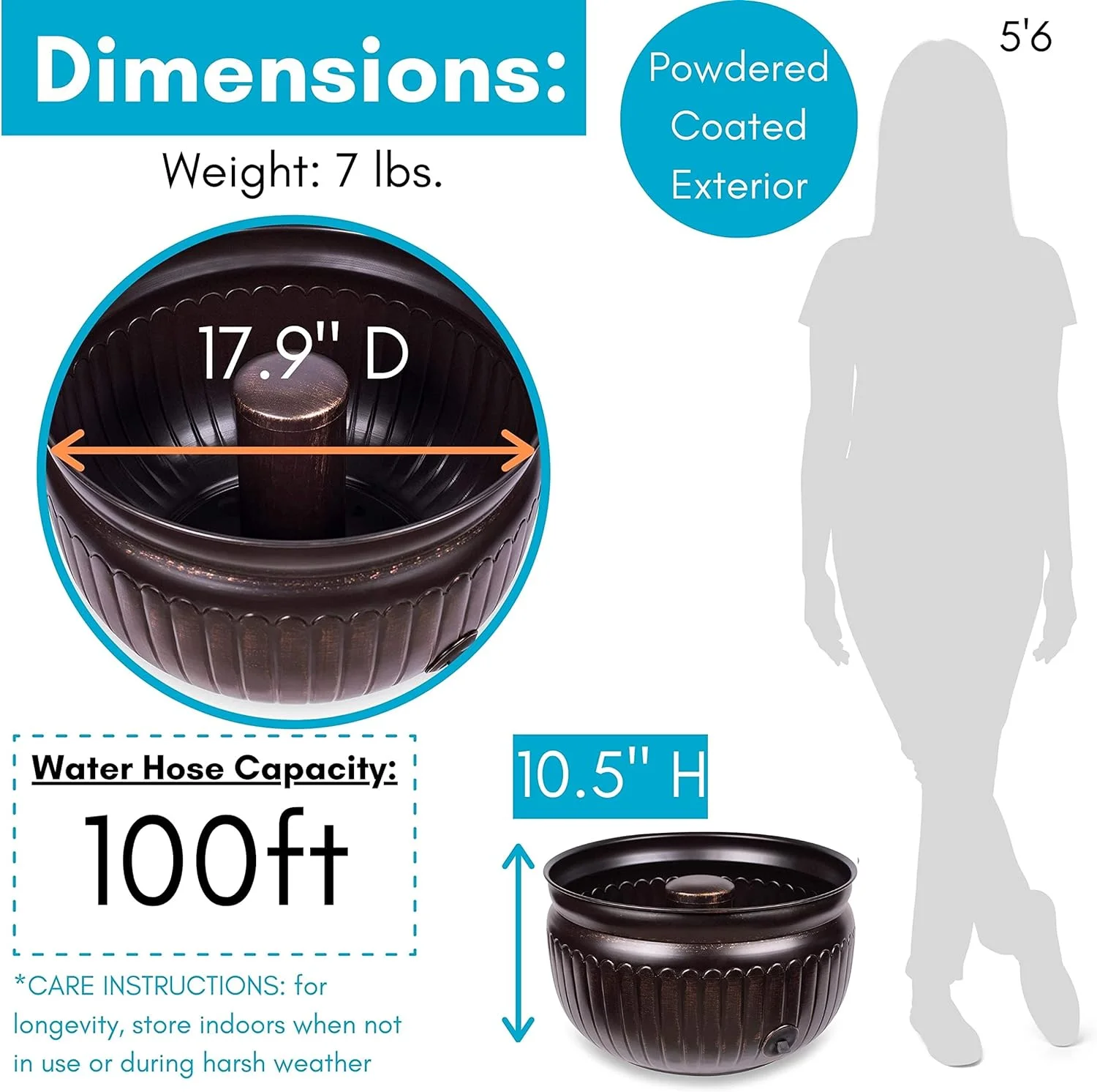 - Accommodates water hoses up to 100ft long