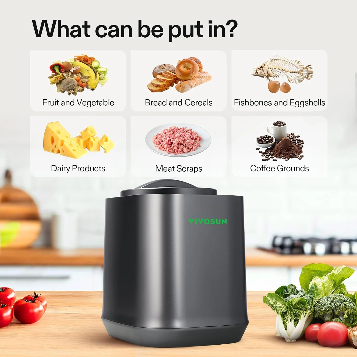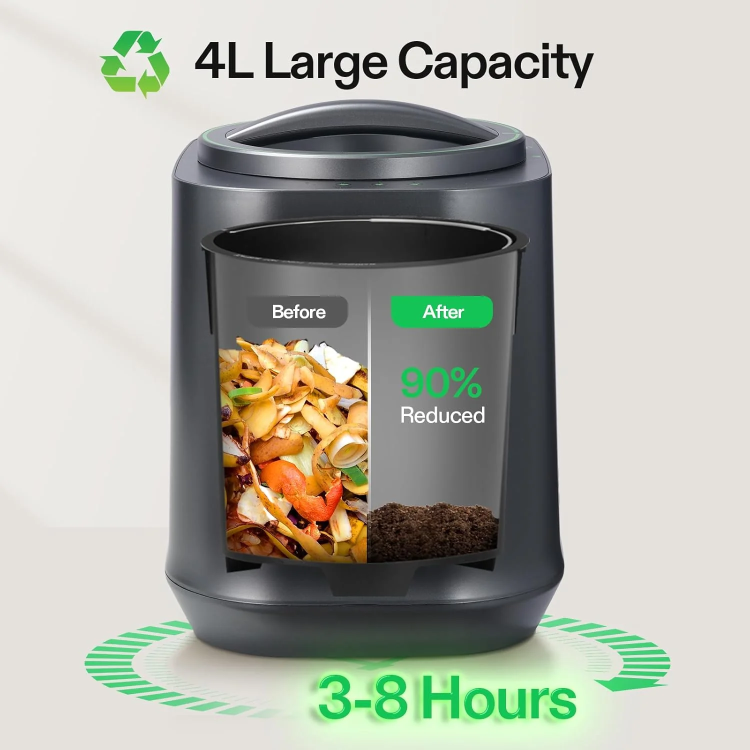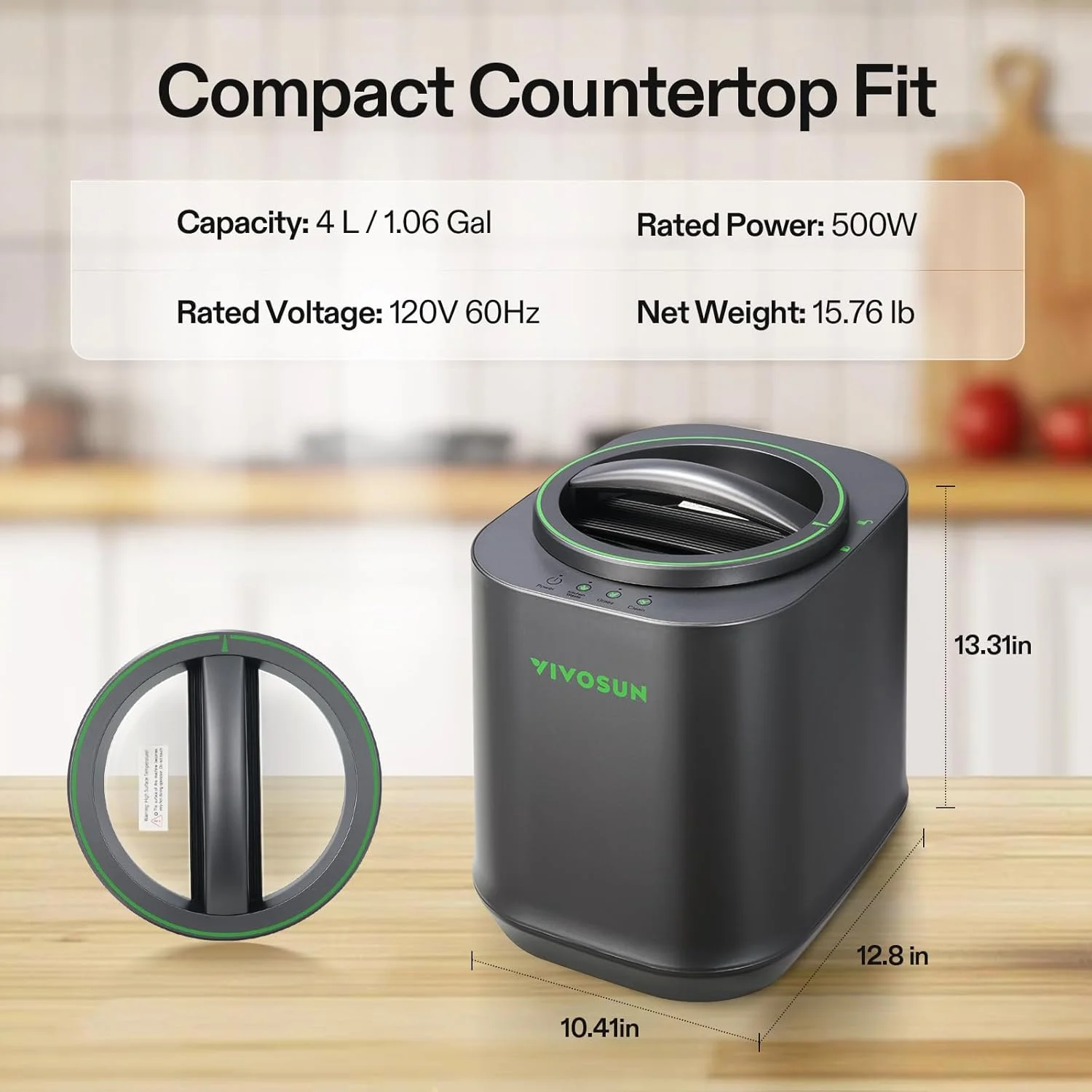 VIVOSUN 4 L Electric Composter for Kitchen Indoor, Smart Compost Machine for Countertop, Odorless/Auto - Cleaning/3 Modes/Intelligent LED Display, Mill Composter Kitchen Bin Food Recycler, Black