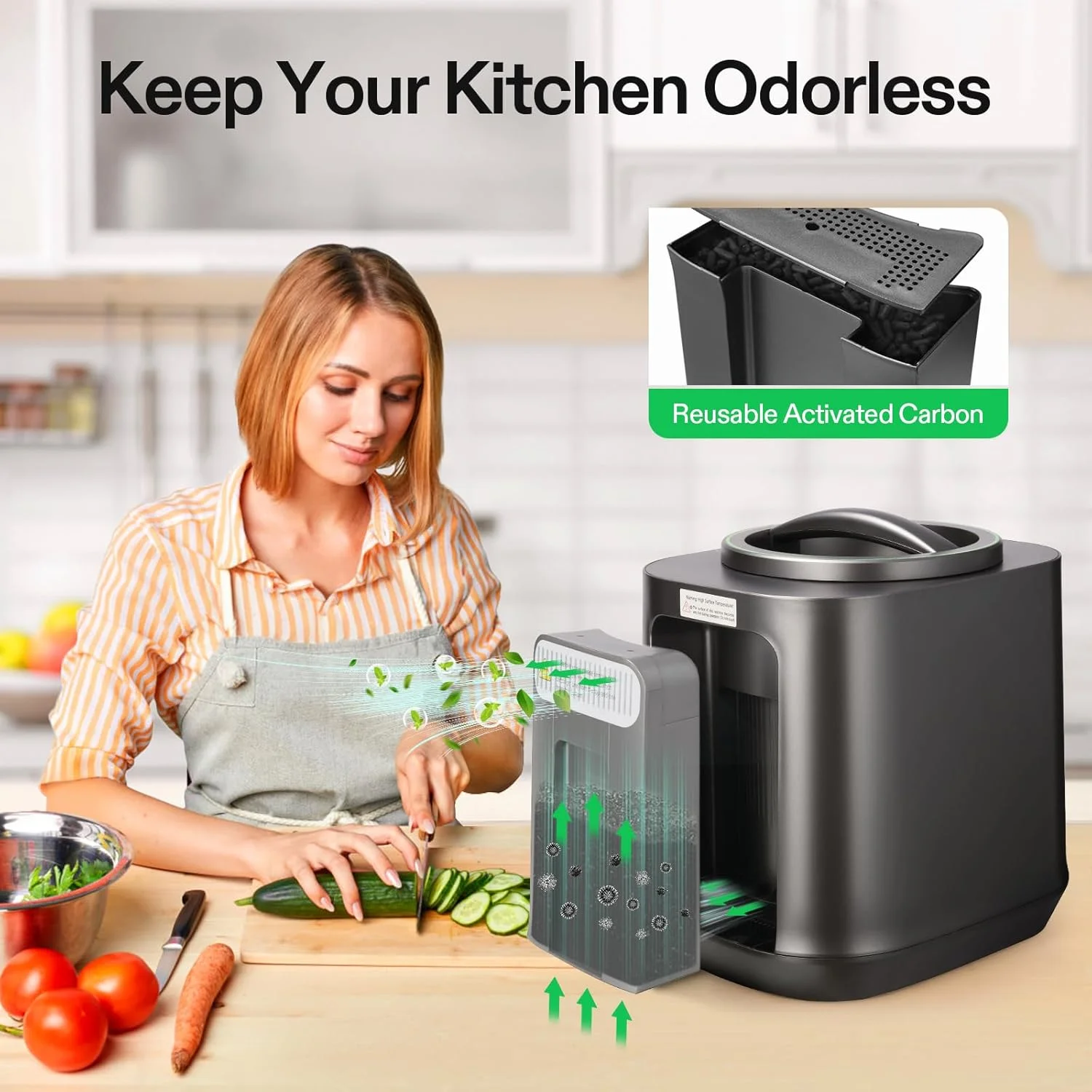 - Odor-Free: With a detachable and replaceable activated carbon filter, this composter efficiently eliminates odors, keeping your kitchen or home fresh and clean