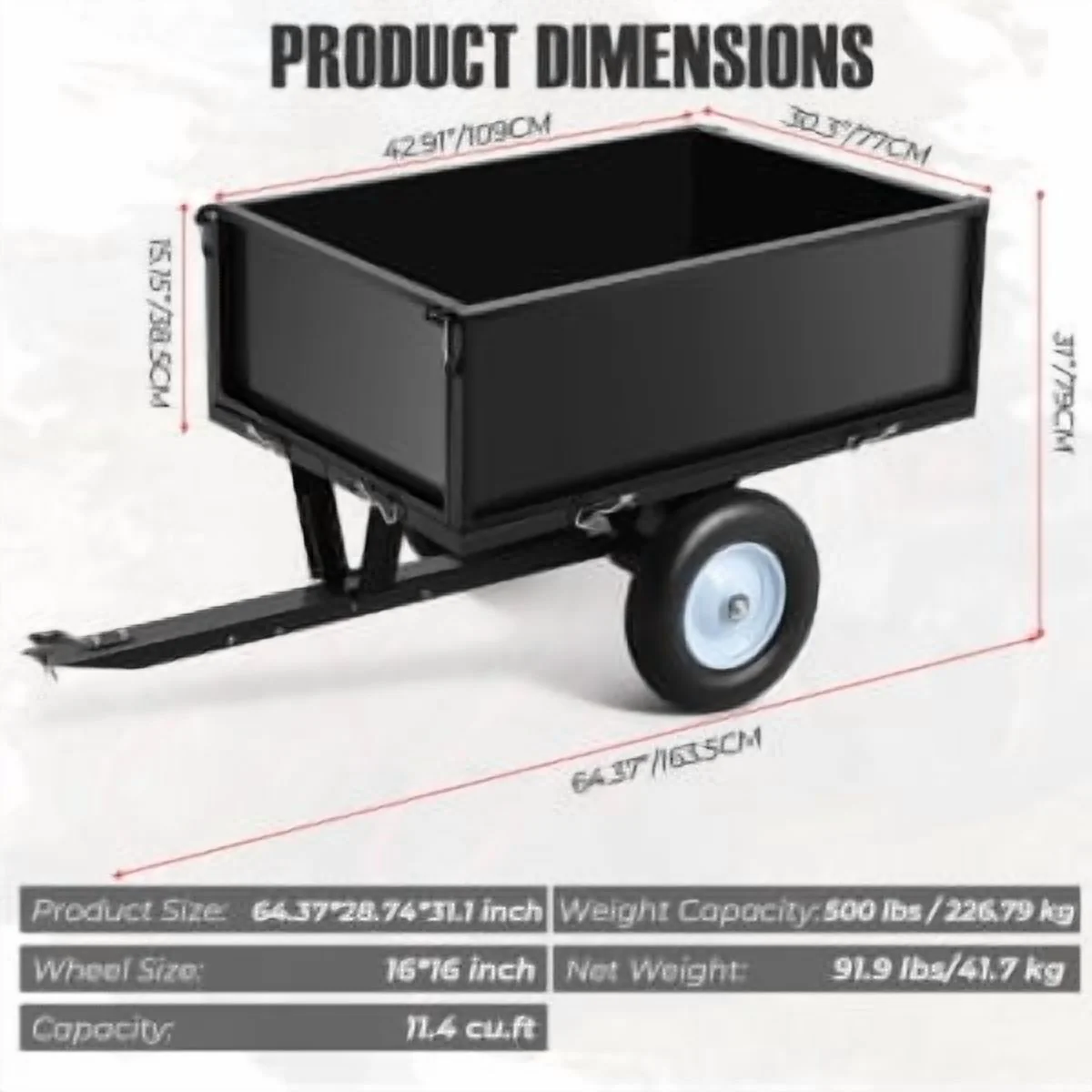 • Juiluna Heavy Duty Steel Dump Trailer, 500 lb Dump Cart, 12 Cu.ft. Garden Utility Trailers, with 2 Wheels, for Tractor, ATV, UTV, Outdoor Lawn Mower