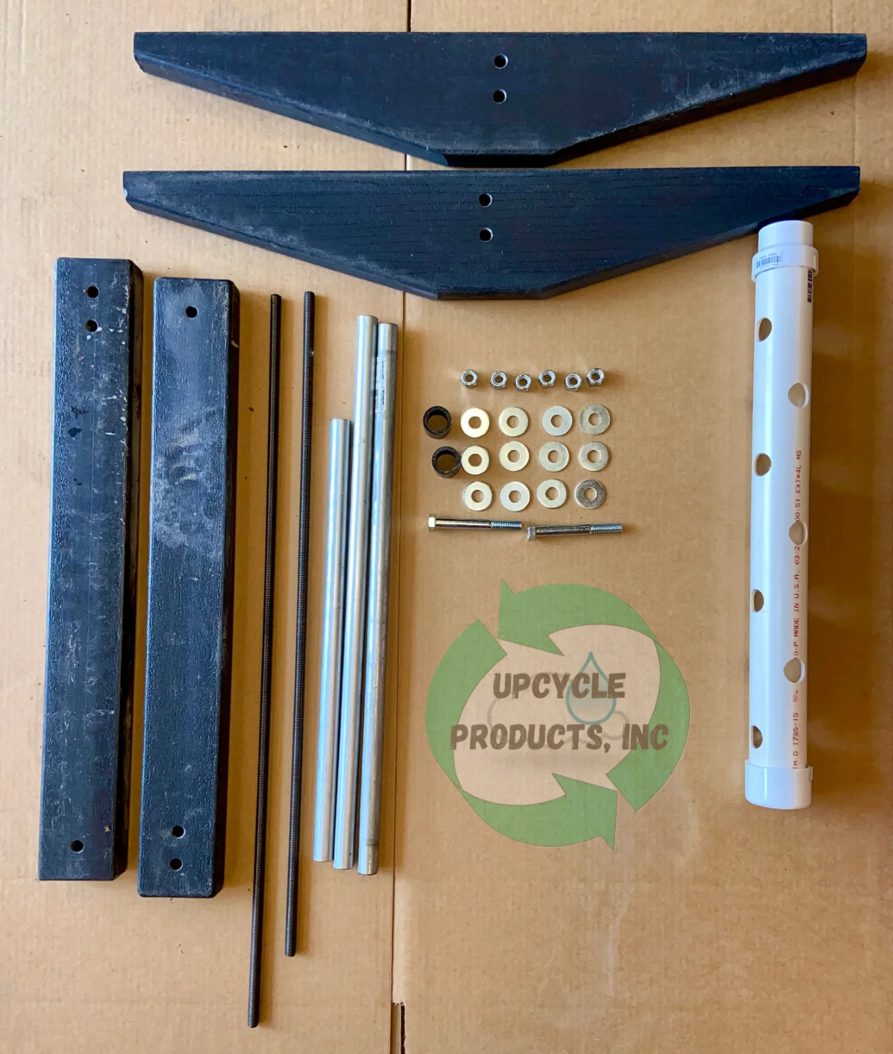 - Made from recycled components included a pre-used 55 gallon black barrel and a frame that is made from plastic lumber that is from 70% post consumer plastics