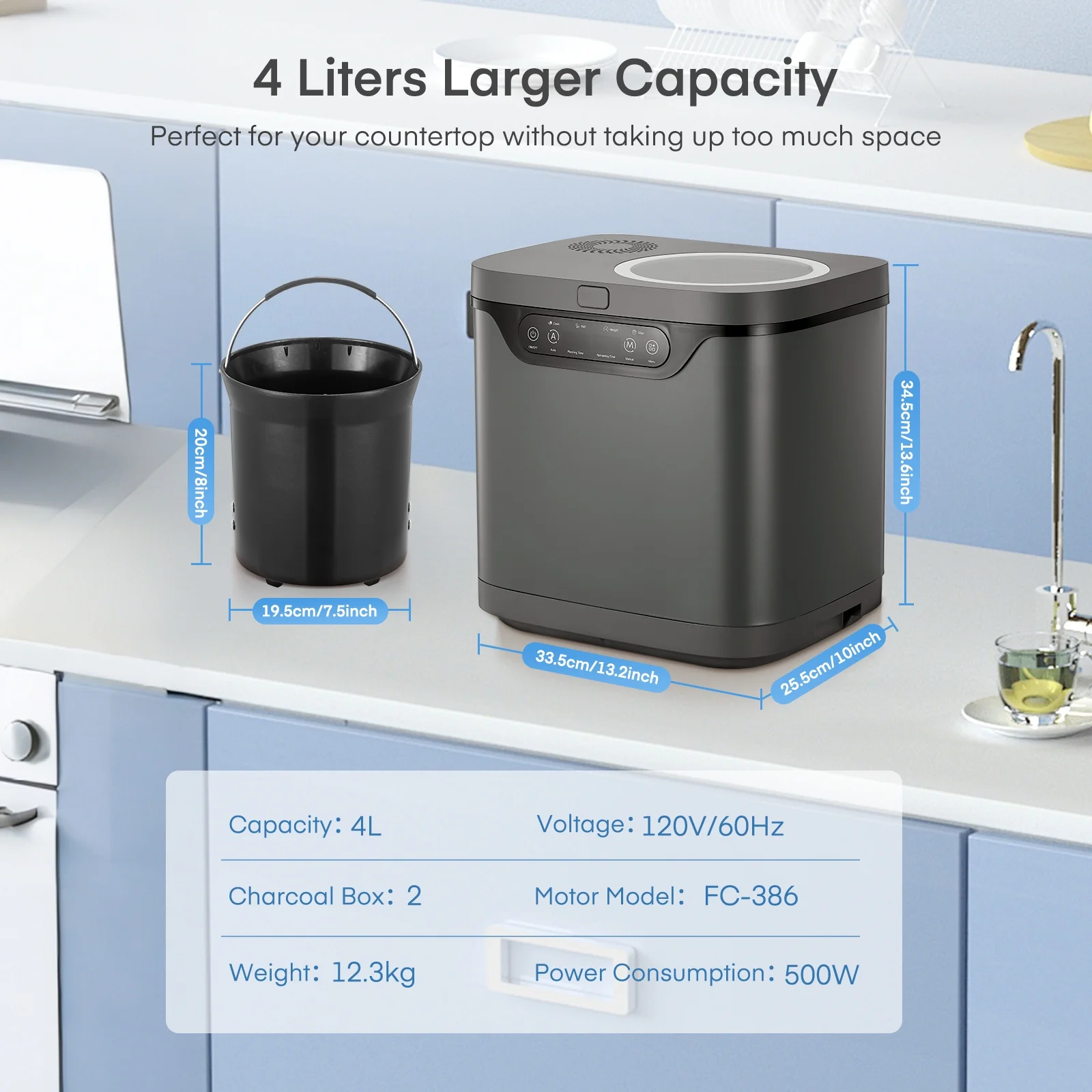 - [4L Larger Composting Capacity for Waste]Our electric composter bucket capacity is as large as 4L while others' is 2.5L, which can handle more food waste than others for 1-time. Sturdy stainless steel casing ensures a longer service life than other plastic casing devices on the market.