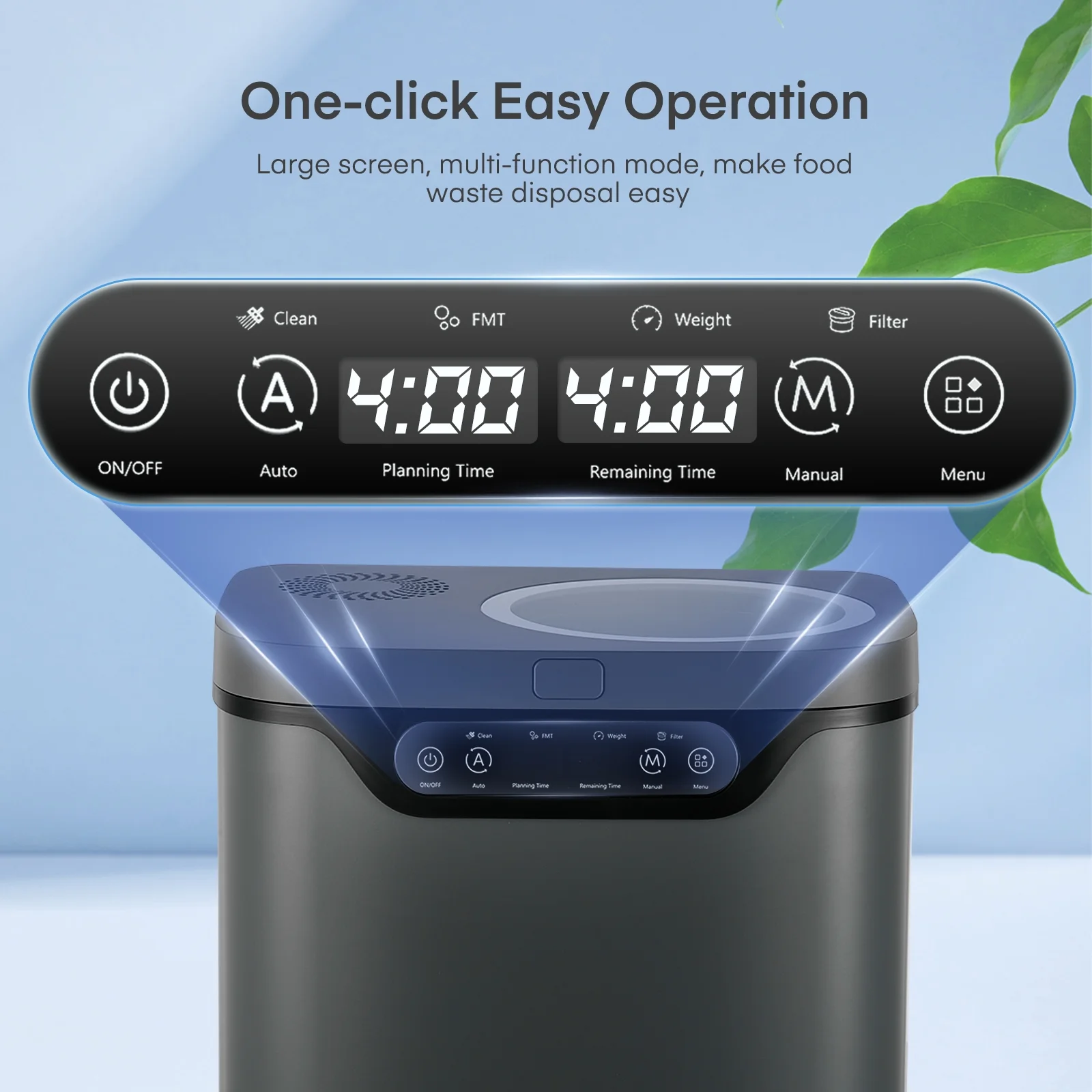 - [Smart & User-friendly Design]Our kitchen composter featuring a intuitive LED display, ensures easy operation for all ages. With one-touch auto-clean function, say goodbye to manual scrubbing, save time and effort. The transparent viewing window lets you monitor progress and enjoy the fascinating transformation of waste into compost.