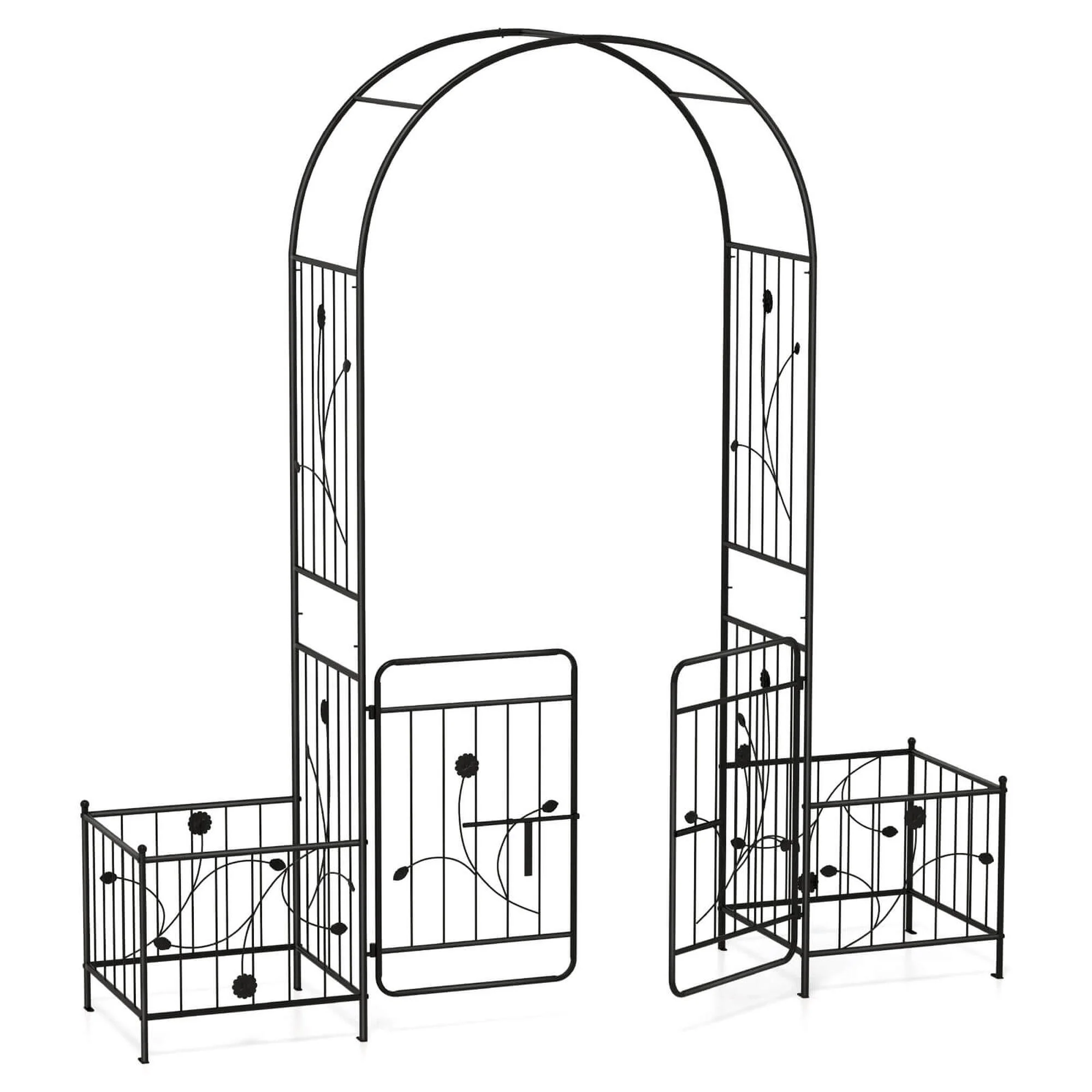 Designed for long-lasting outdoor use, the arbor resists to rust while providing stability when anchored into the ground. It also boasts climbing-friendly trellis and convenient side planters for lush greenery or vibrant florals. Versatile for garden decor or festive occasions, you can enhance this arbor with lights or other decorations for an enchanting effect. With an alluring arch and chic patterns, this garden arbor not only serves as a stunning focal point but also a gateway to your garden��s wonders.