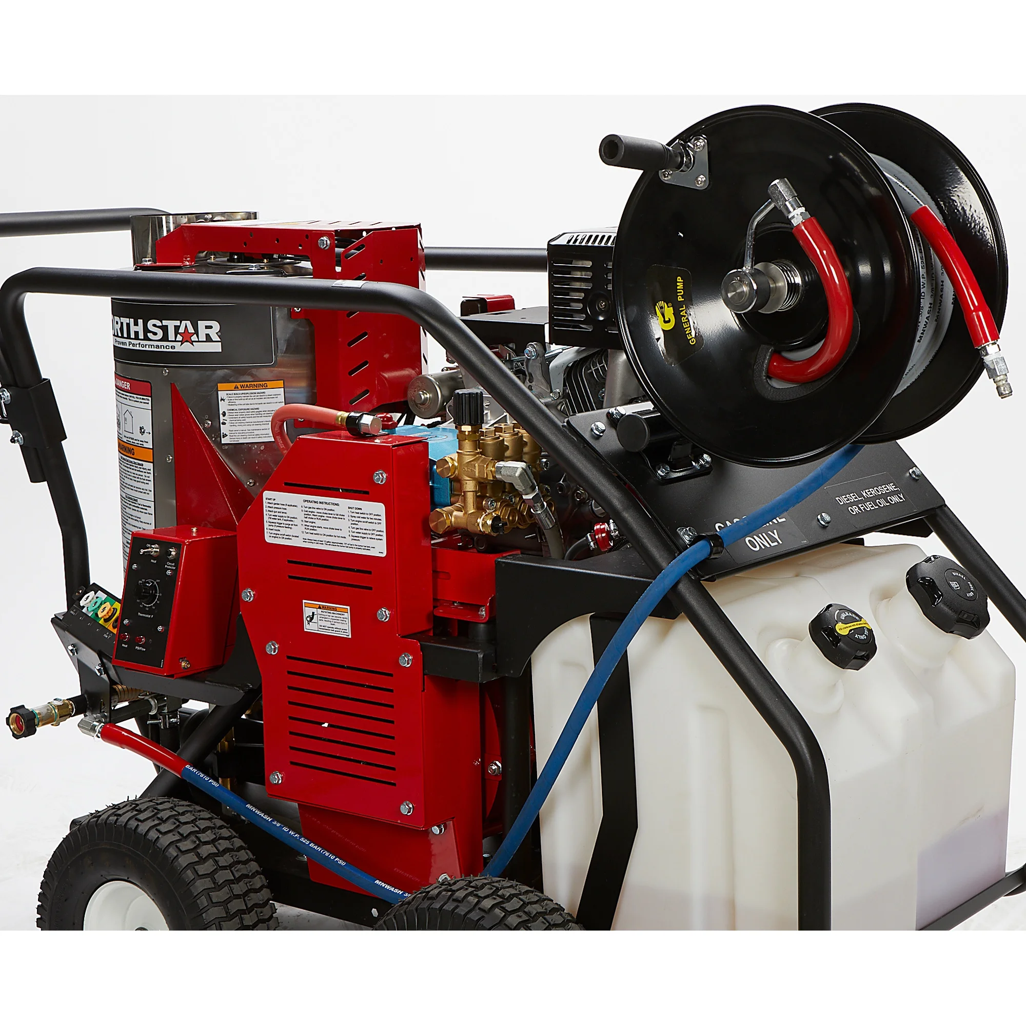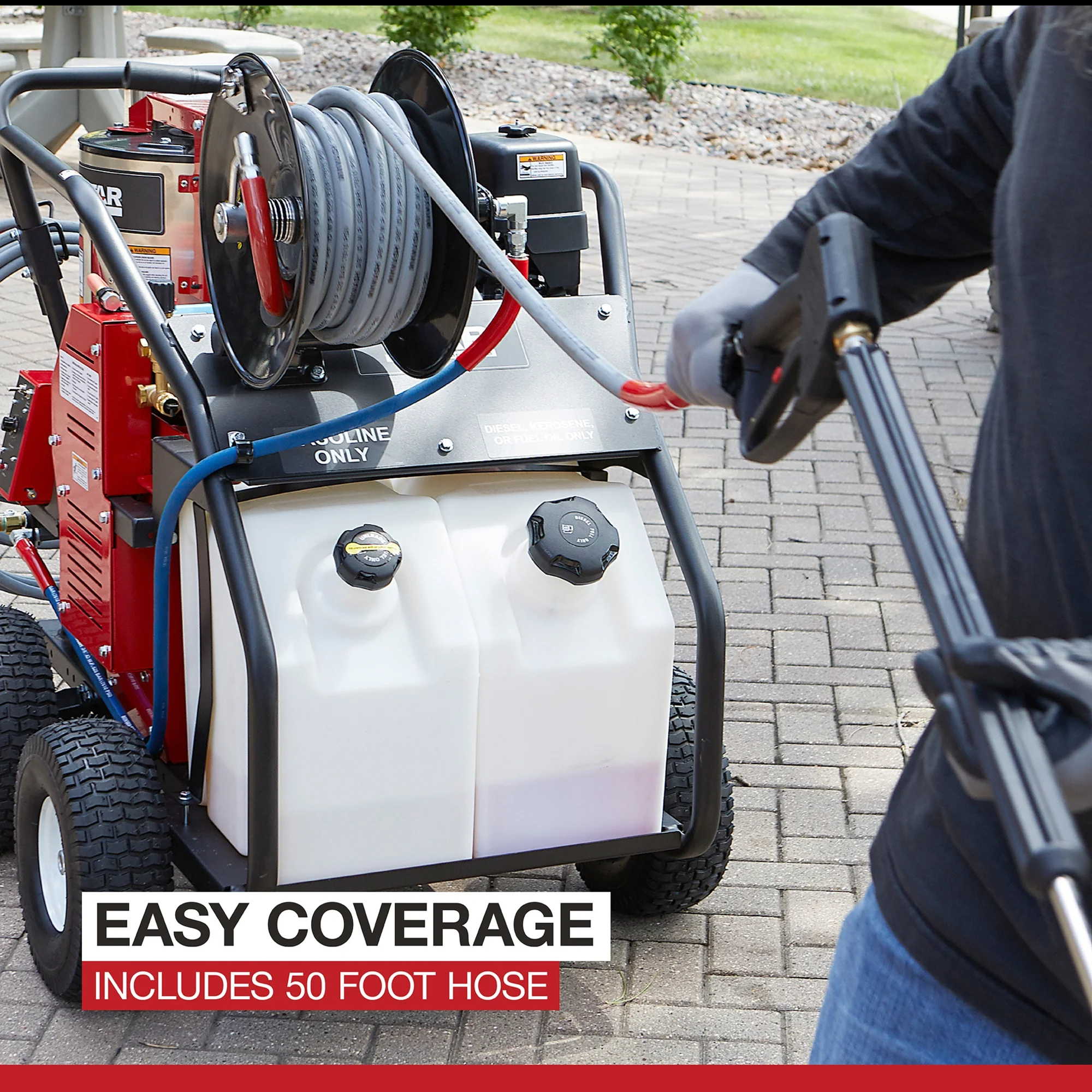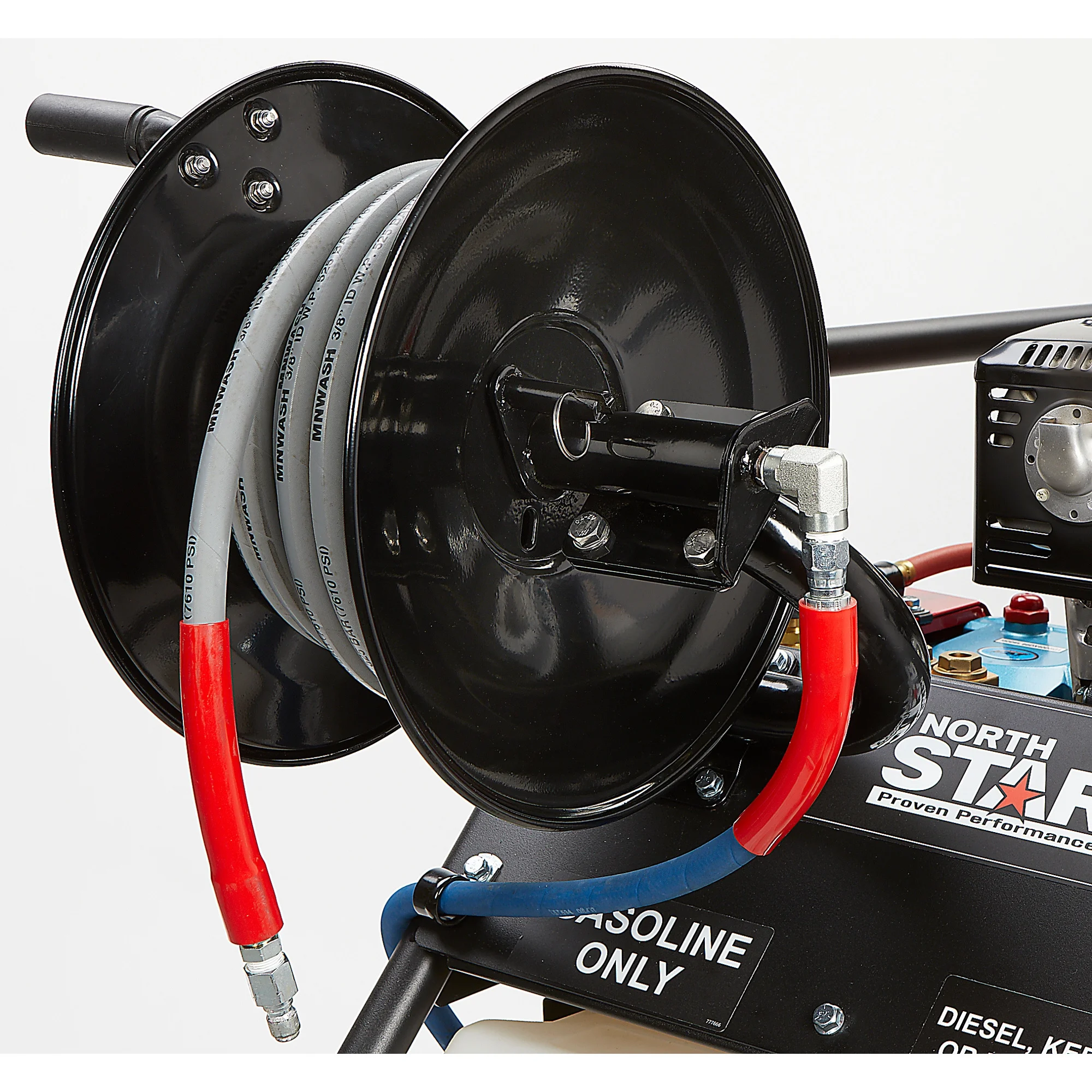- Holds up to 100ft. hose �� includes 50ft. non-marking steel-braided reinforced high-pressure hose with quick connects