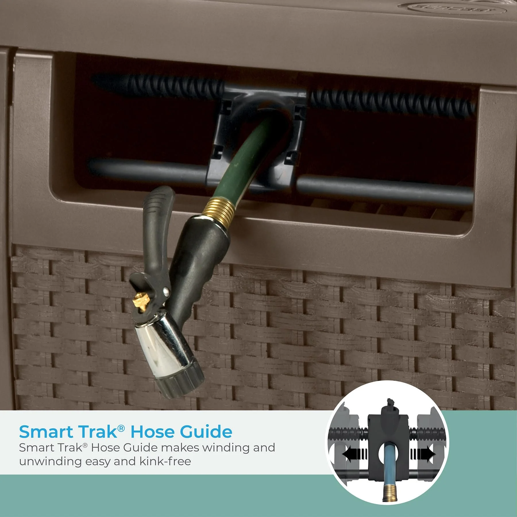 - INCLUDES SMART TRAK HOSE GUIDE: Makes winding and unwinding of the garden hose easy and kink-free with the help of the crank handle