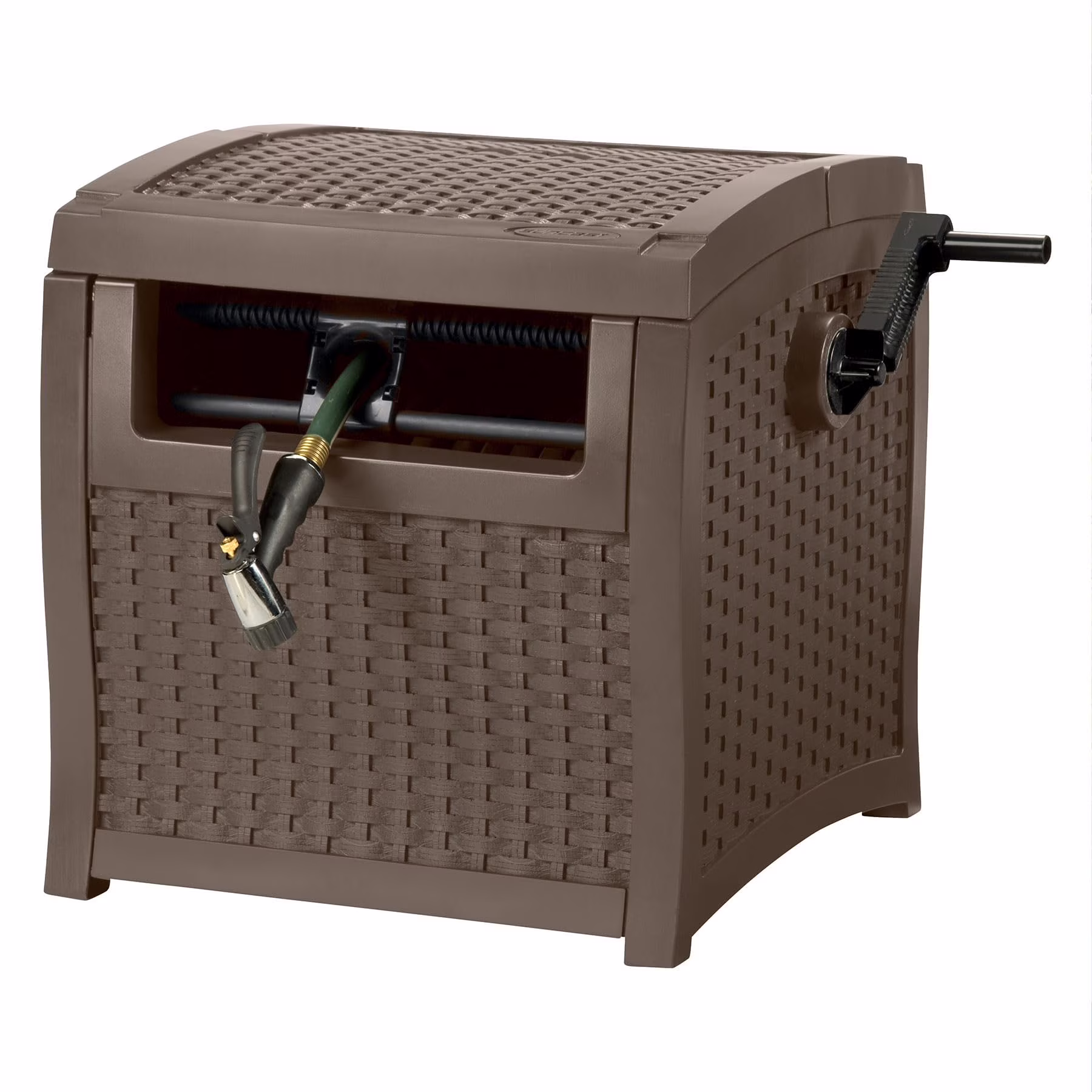 - OUTDOOR GARDEN HOSE REEL: Features a wicker style mocha exterior for a stylish and functional addition to your yard
