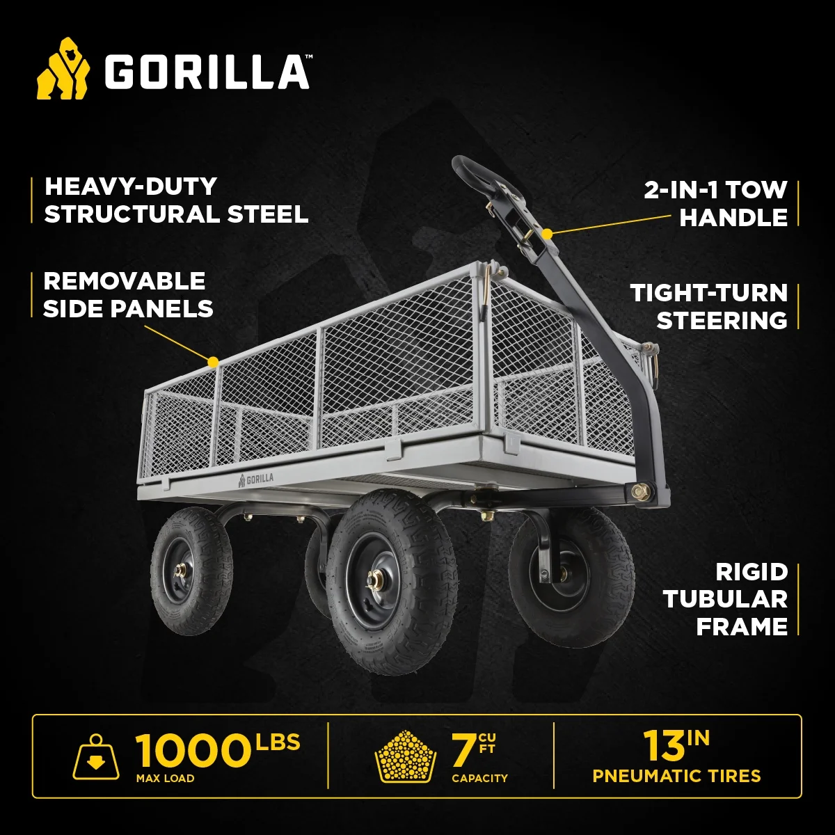 - 1-year Gorilla Carts limited warranty