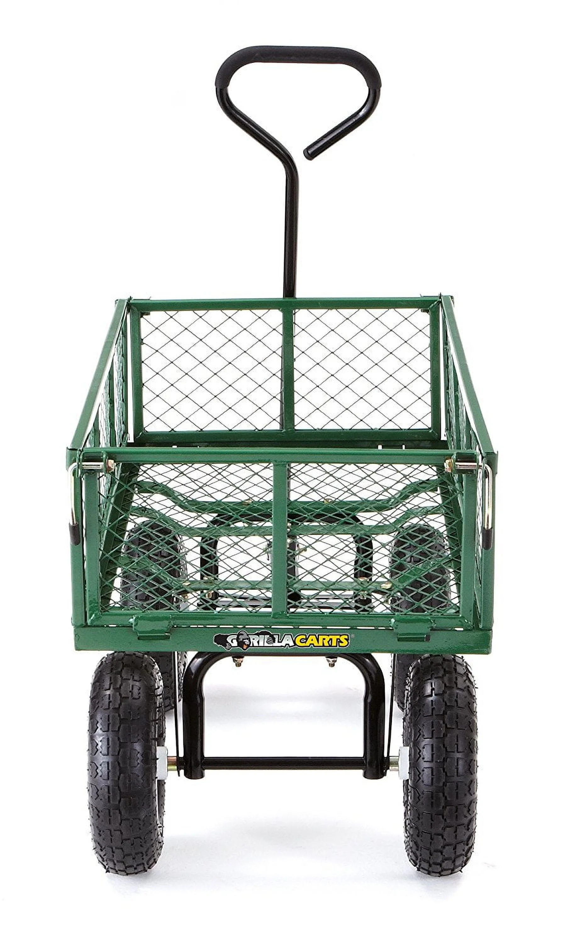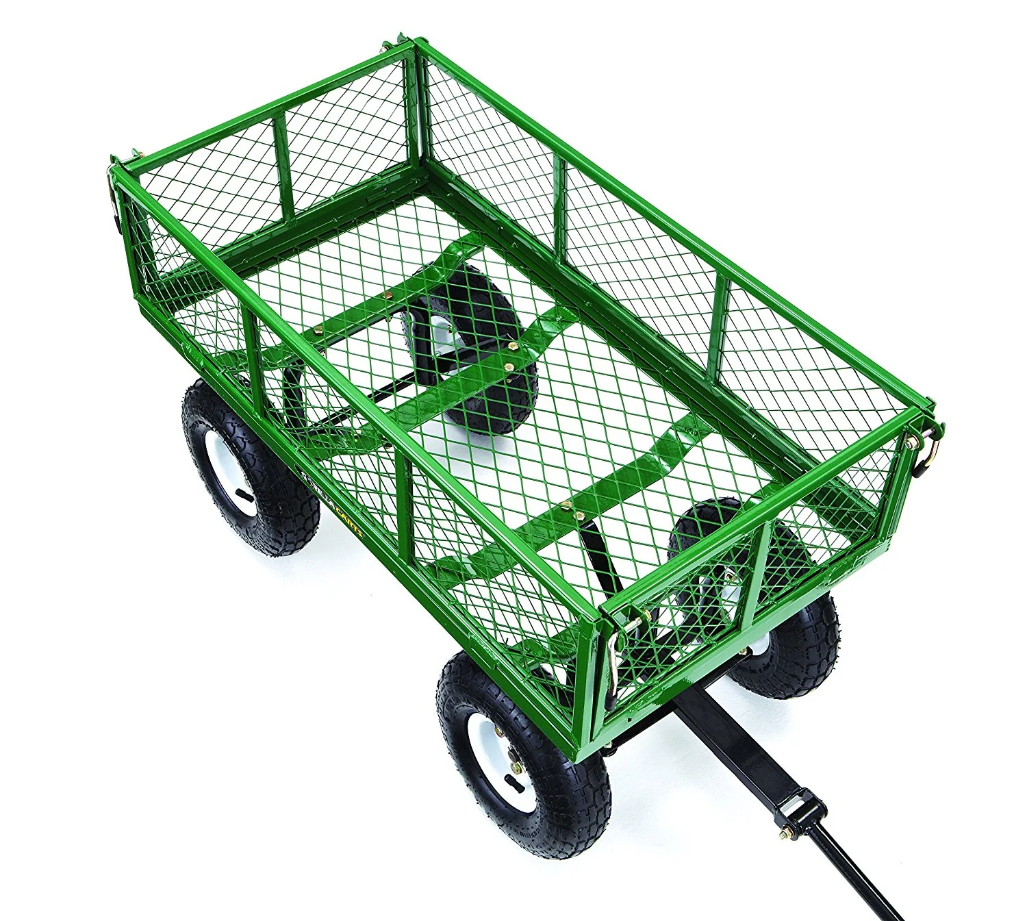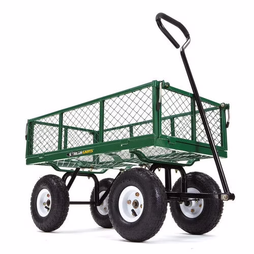 - Durable 34-inch x 18-inch steel mesh bed and 10-inch pneumatic tires