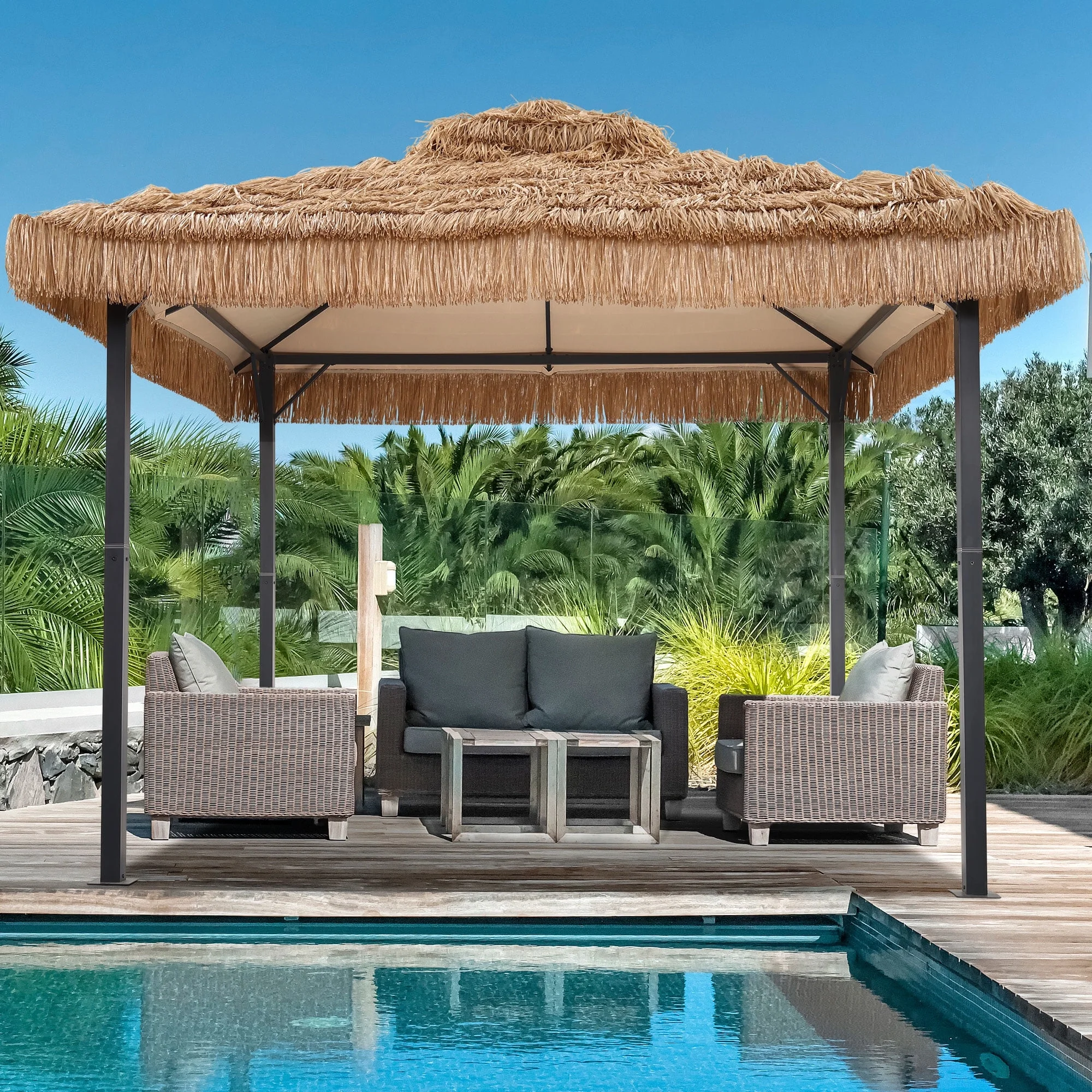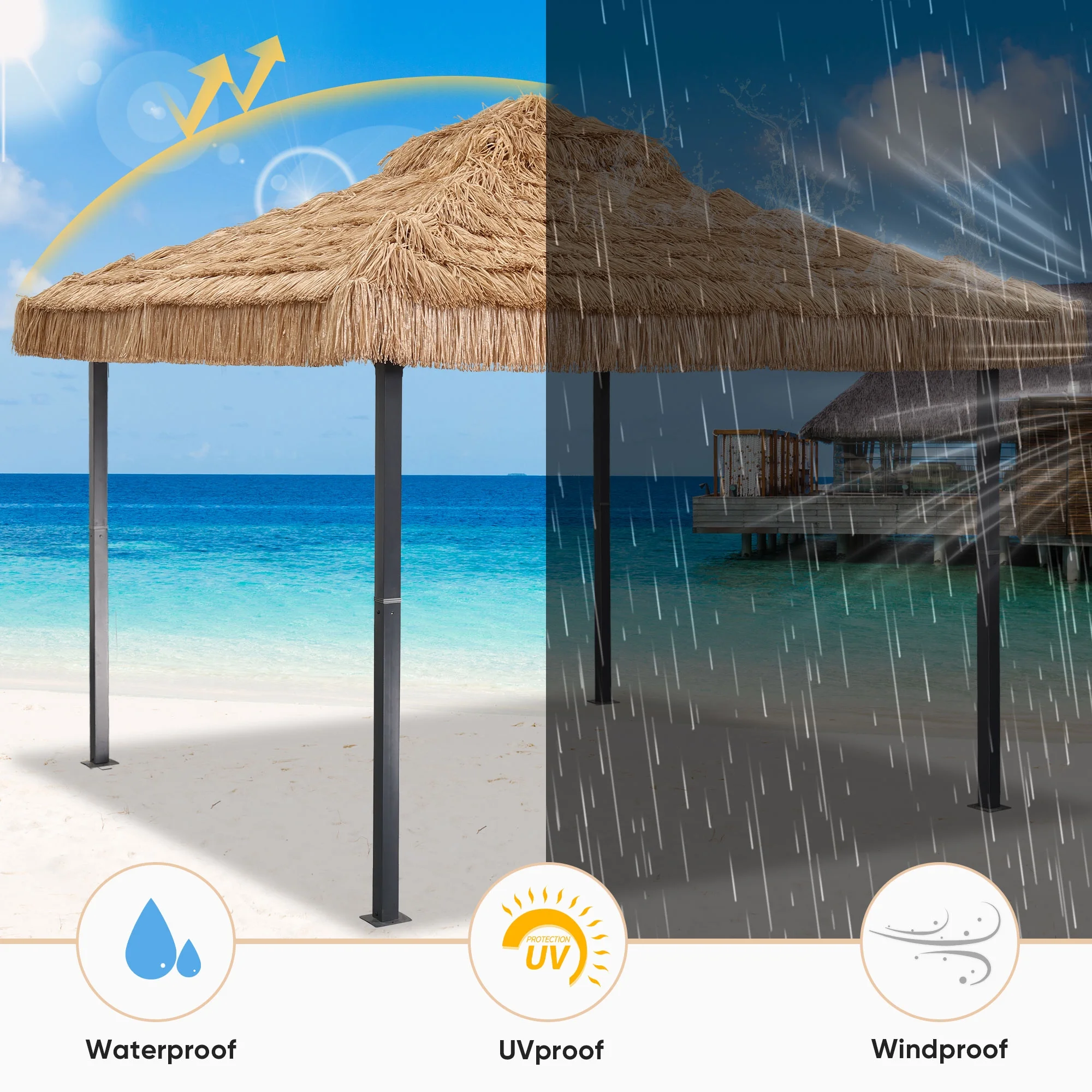 - �?🌞Enhanced Imitation-Straw Canopy �?The dense, UV-blocking fabric combines style and function, offering excellent shading and heat insulation to keep your space cooler and more comfortable in hot weather.
