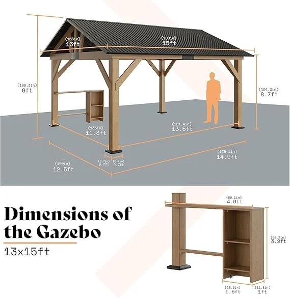 - Relaxing Weekend Getaway: Outdoor canopy transform your weekends or post-work evenings into moments of joy with our wooden gazebo—a perfect additional space for gatherings and relaxation.