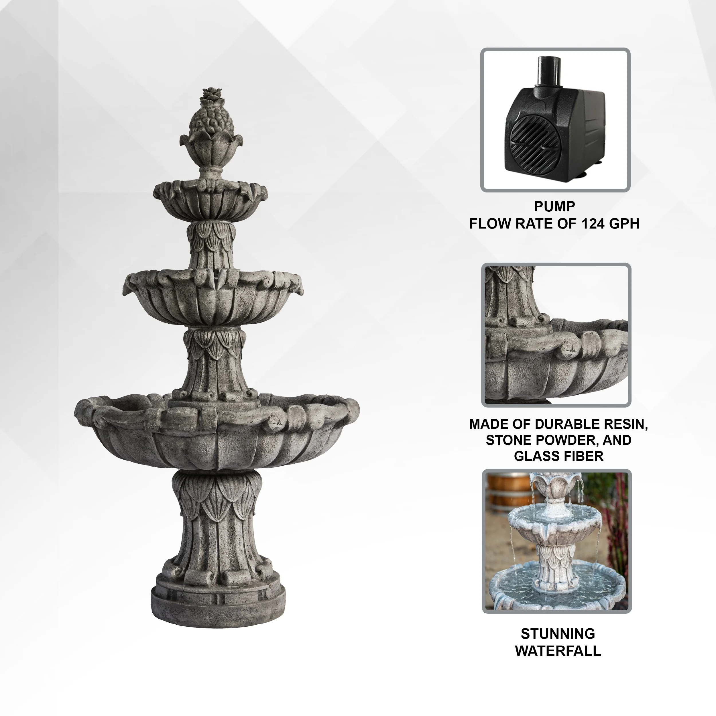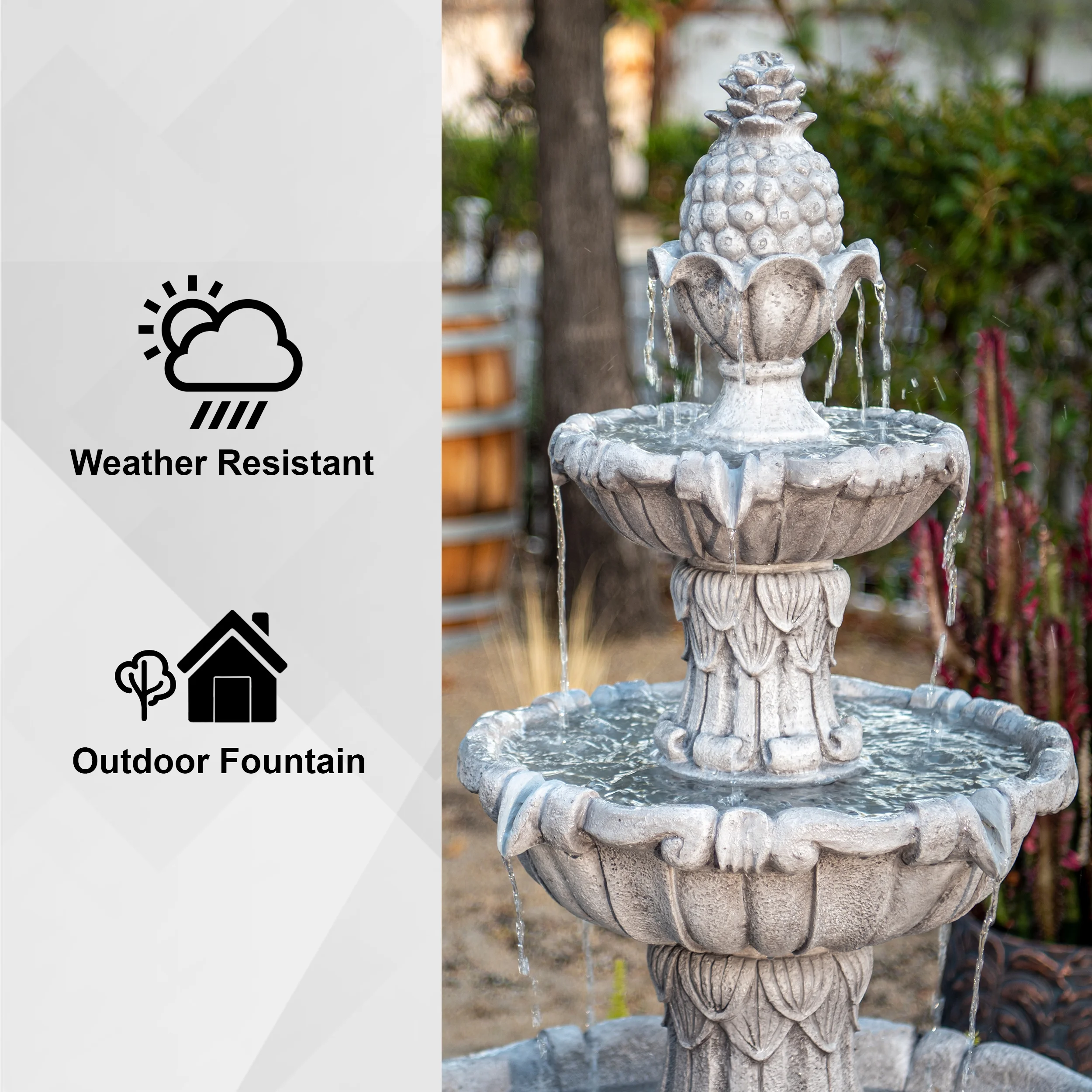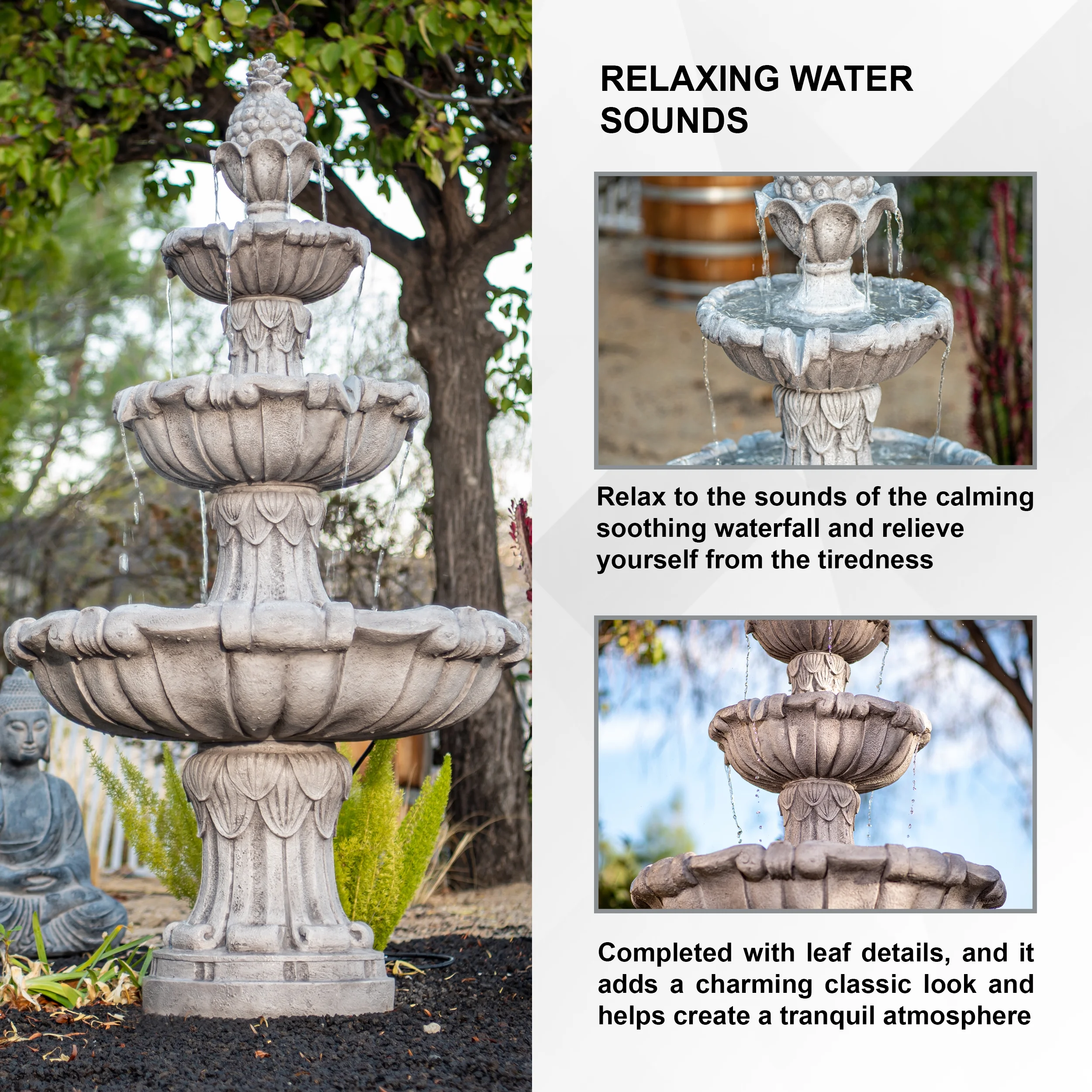 - SOOTHING THREE TIERED WATER FOUNTAIN: Elevate your outdoor space and create an impressive focal point with the elegance of this 3 tier freestanding water fountain featuring a classic leaf design, perfect for your lawn and garden, patio, porch, deck, and more