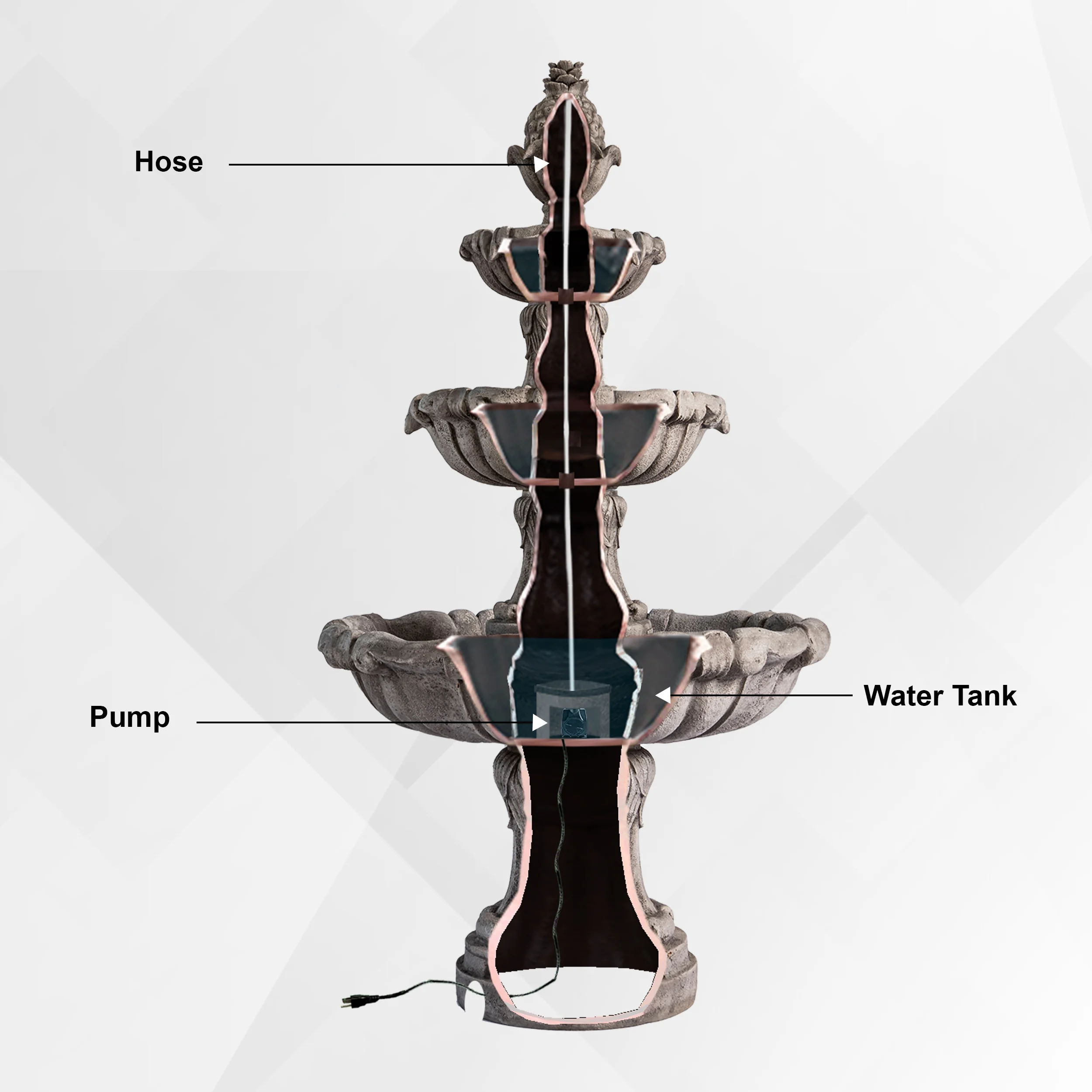 - DURABLE CONSTRUCTION FOR LARGE OUTDOOR SPACES: Crafted from durable resin, stone powder, and glass fiber, this large outdoor fountain stands at 58.3" tall, ensuring lasting quality for years of enjoyment in your extra-large outdoor oasis.