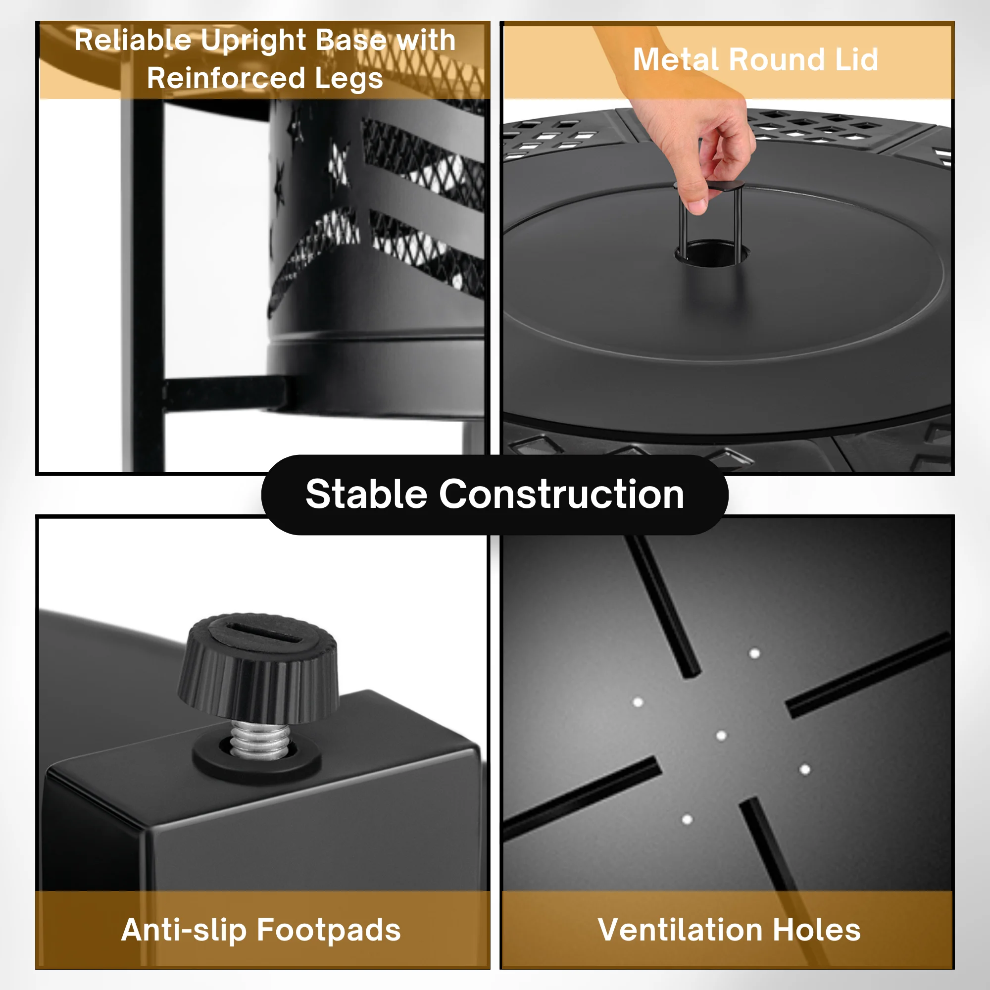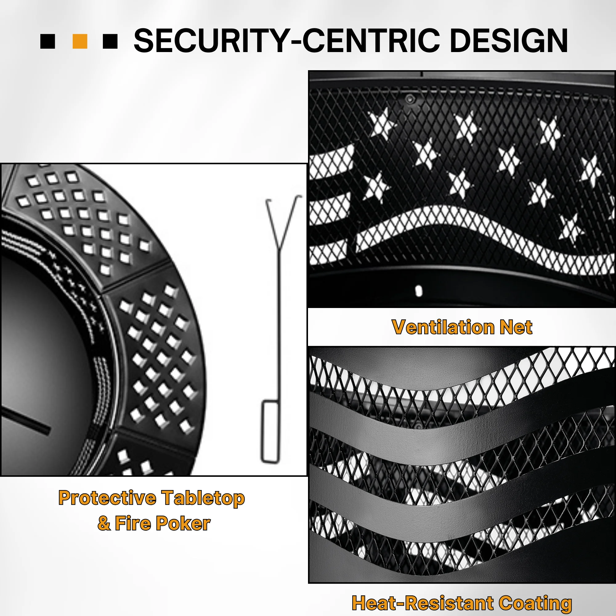 - �?strong>Fire Safety Design】Designed for outdoor use, this firepit features a mesh sidewall and four ventilation holes at the base of the fire bowl, ensuring optimal airflow and strong flames while safely containing sparks and embers. Fire poker lets you move wood safely.
