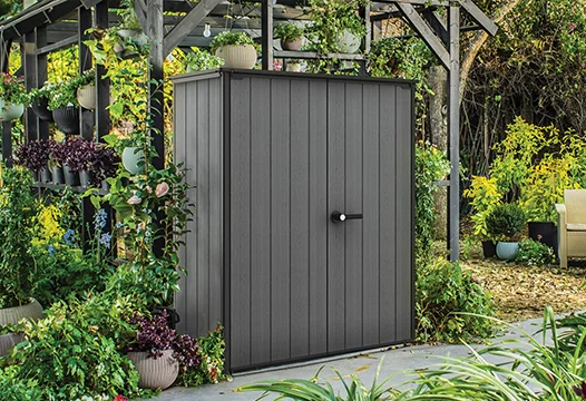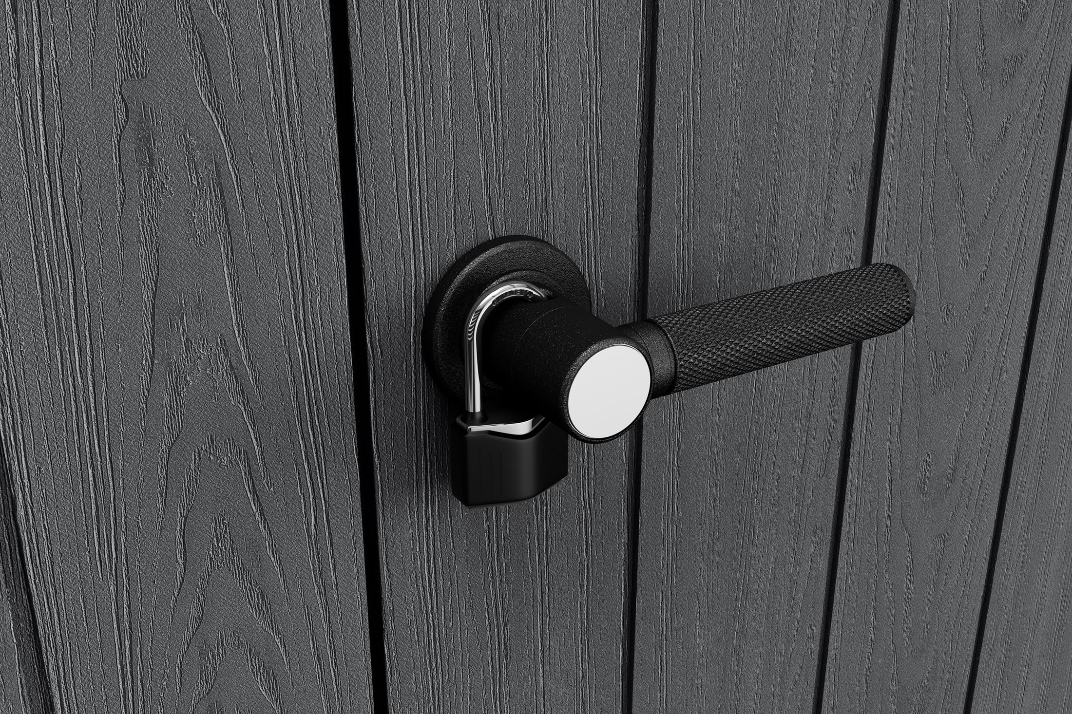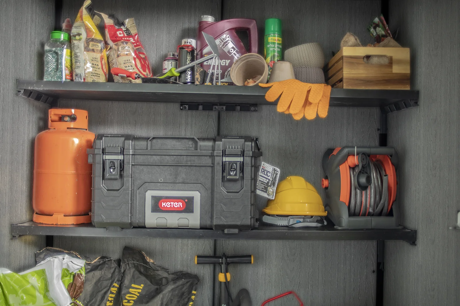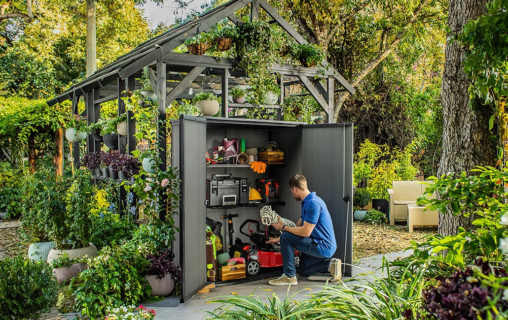 - Wide double doors and sloped threshold helps you take out larger equipment easily
