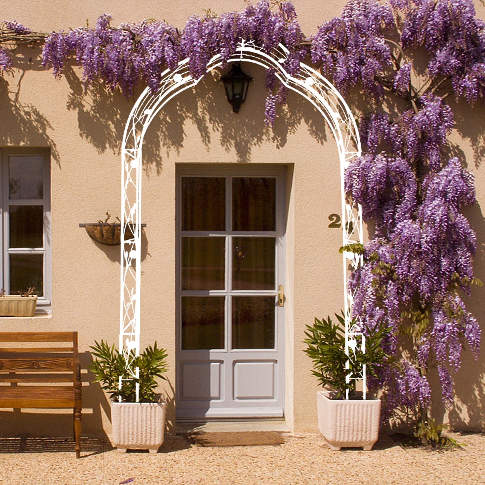 - Aukfa Metal Garden Arch, Garden Arbor Trellis Climbing Plants Wedding Arch,74.4" x 98.4", White