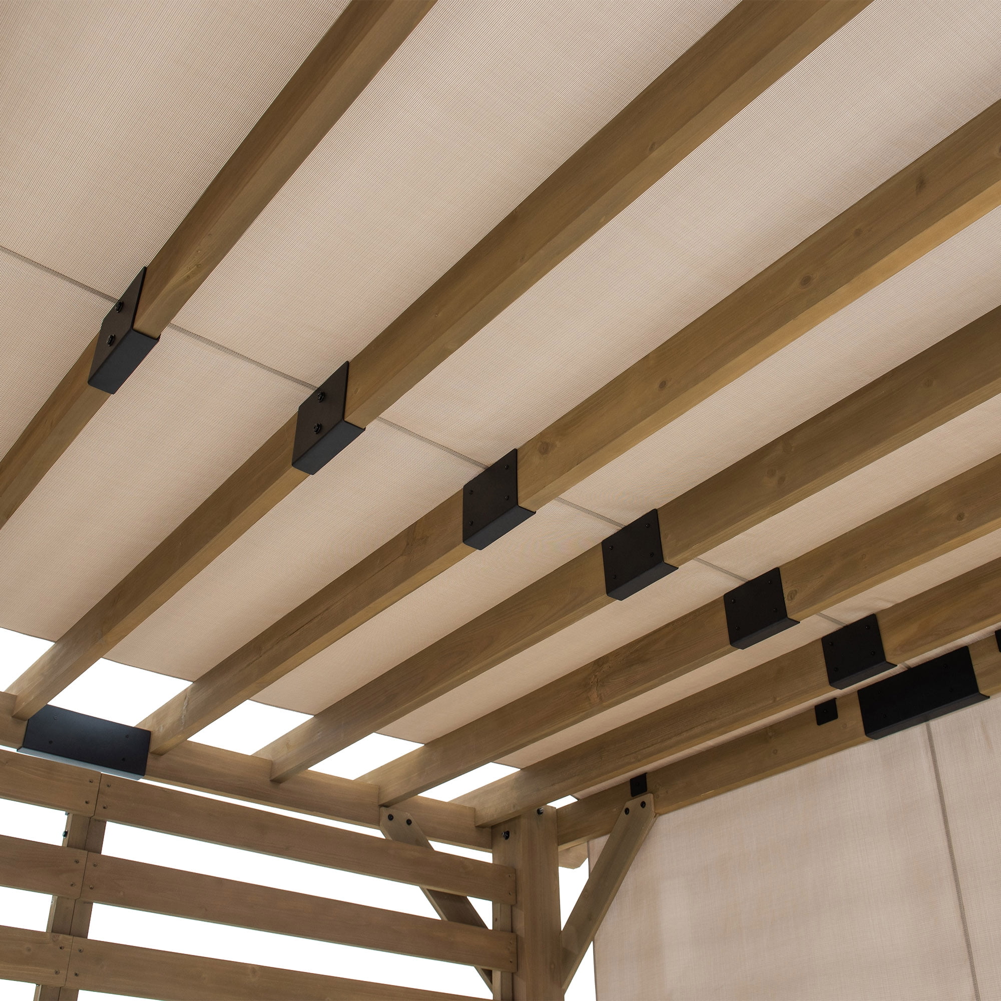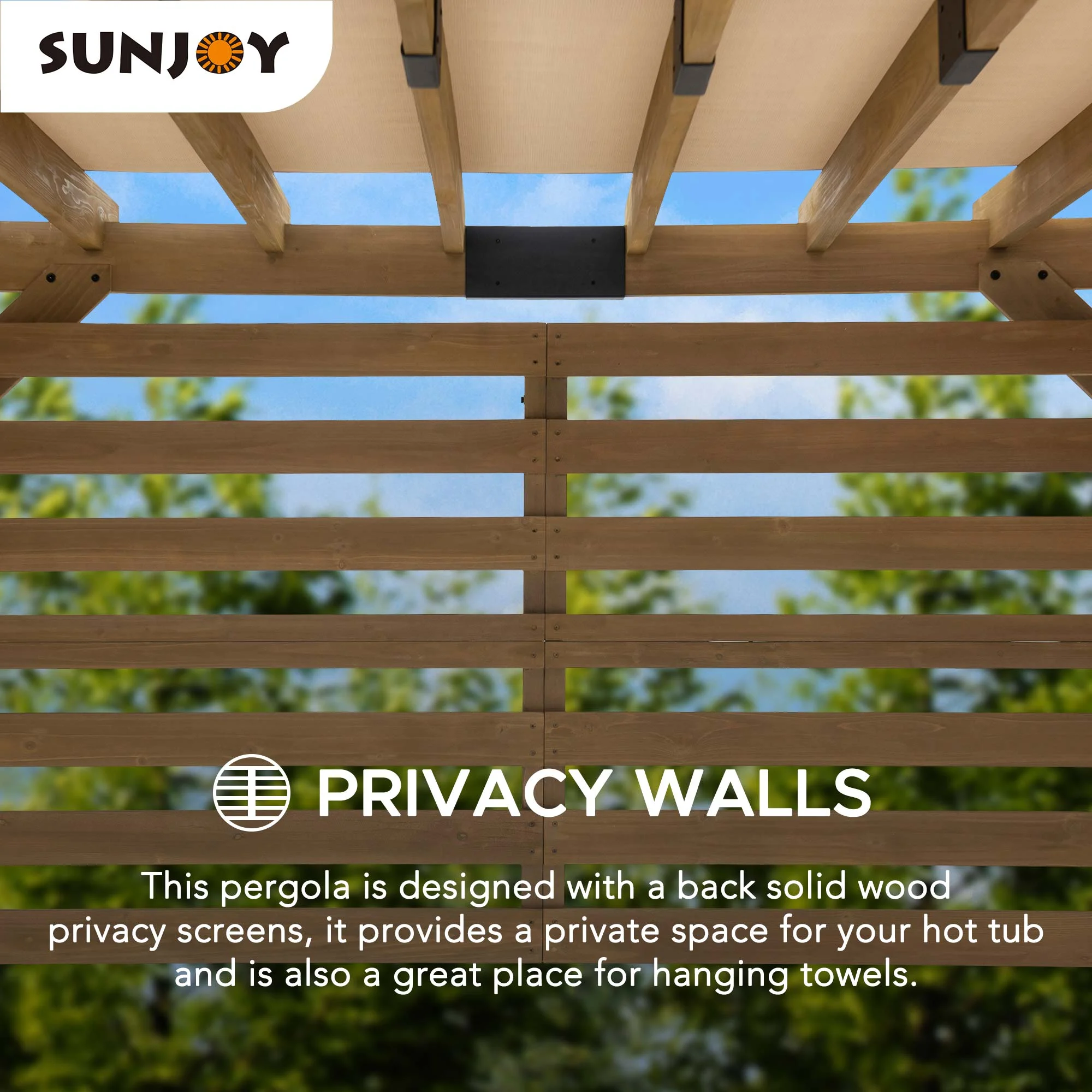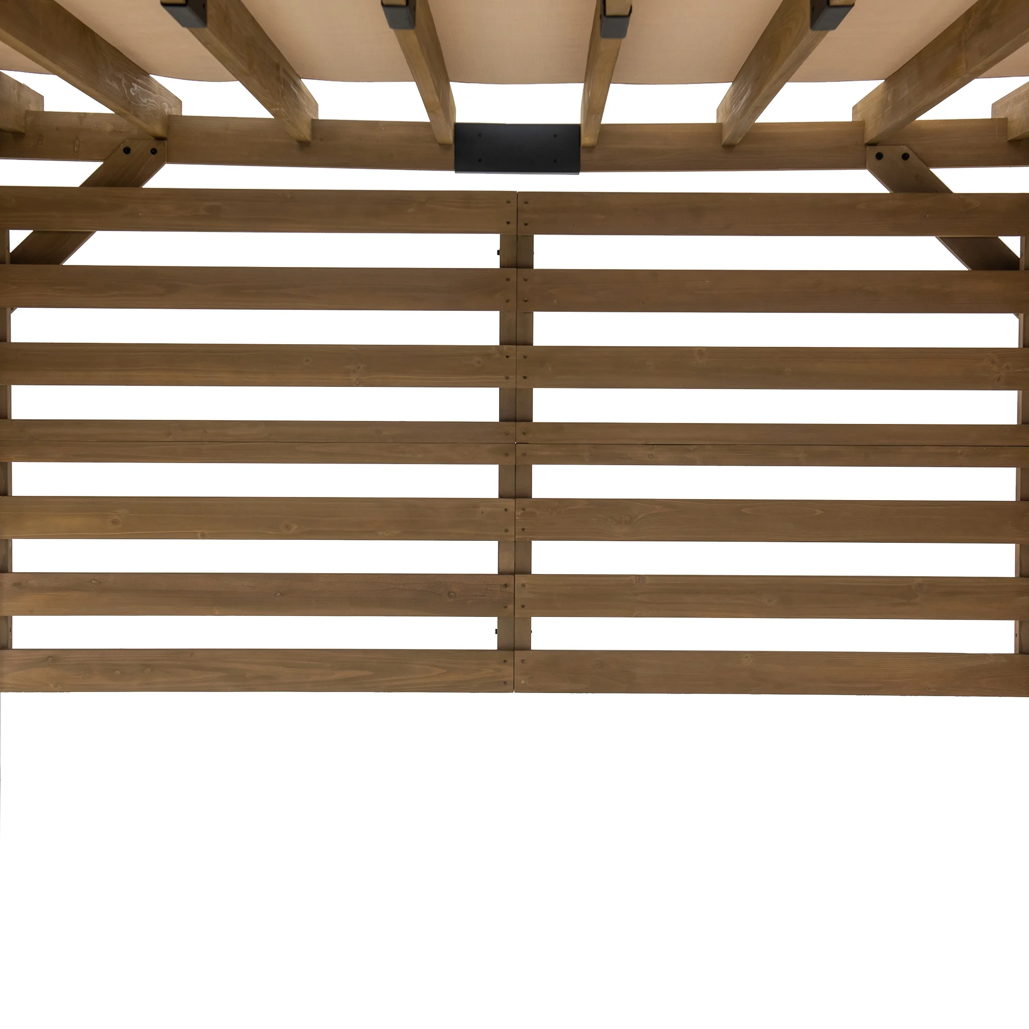 - Functional & Stylish Design: This pergola features a Tan weather-resistant adjustable sling fabric canopy and solid wood fence privacy screen. The stylish and convenient design provides you with comfortable shade for your outdoor hot tub area.