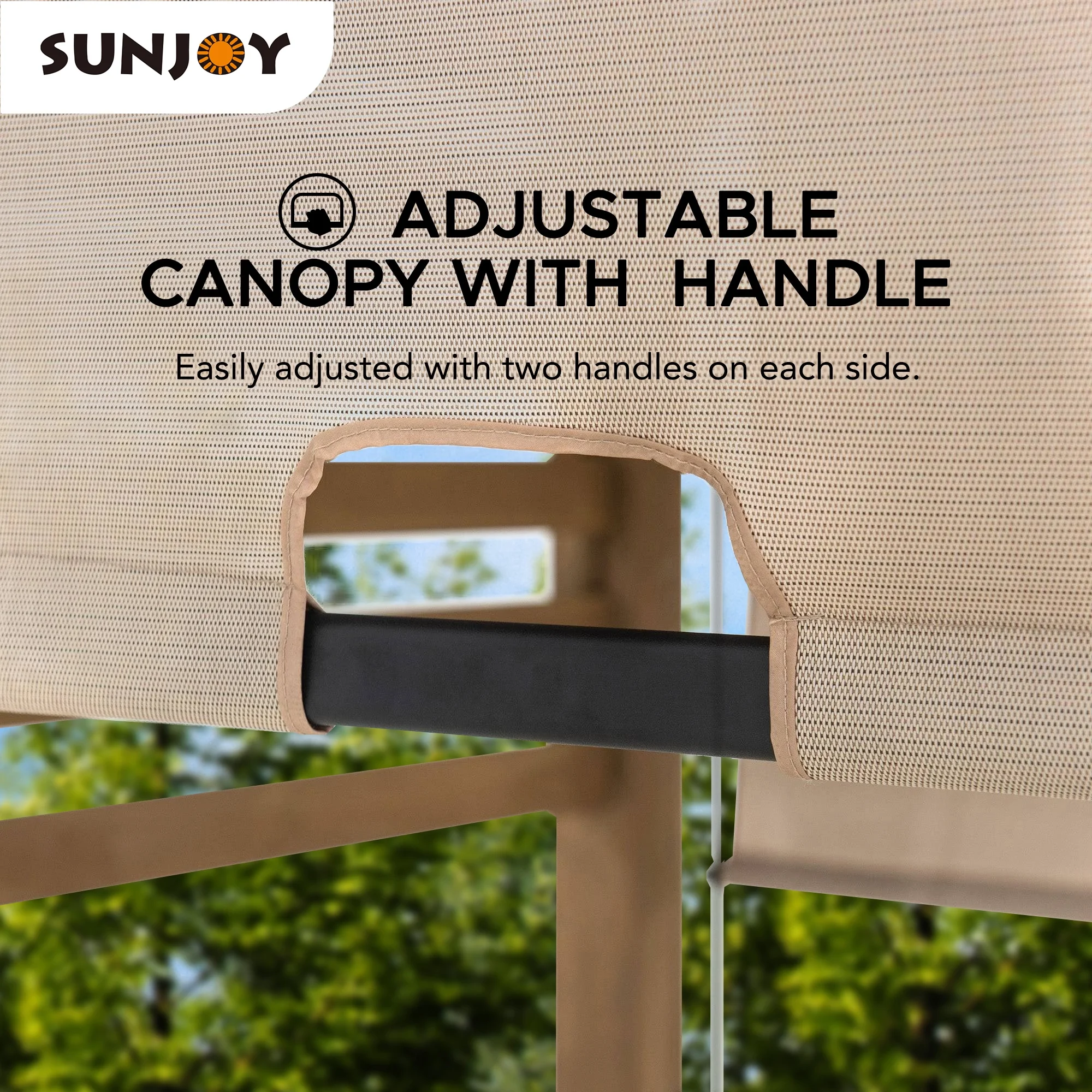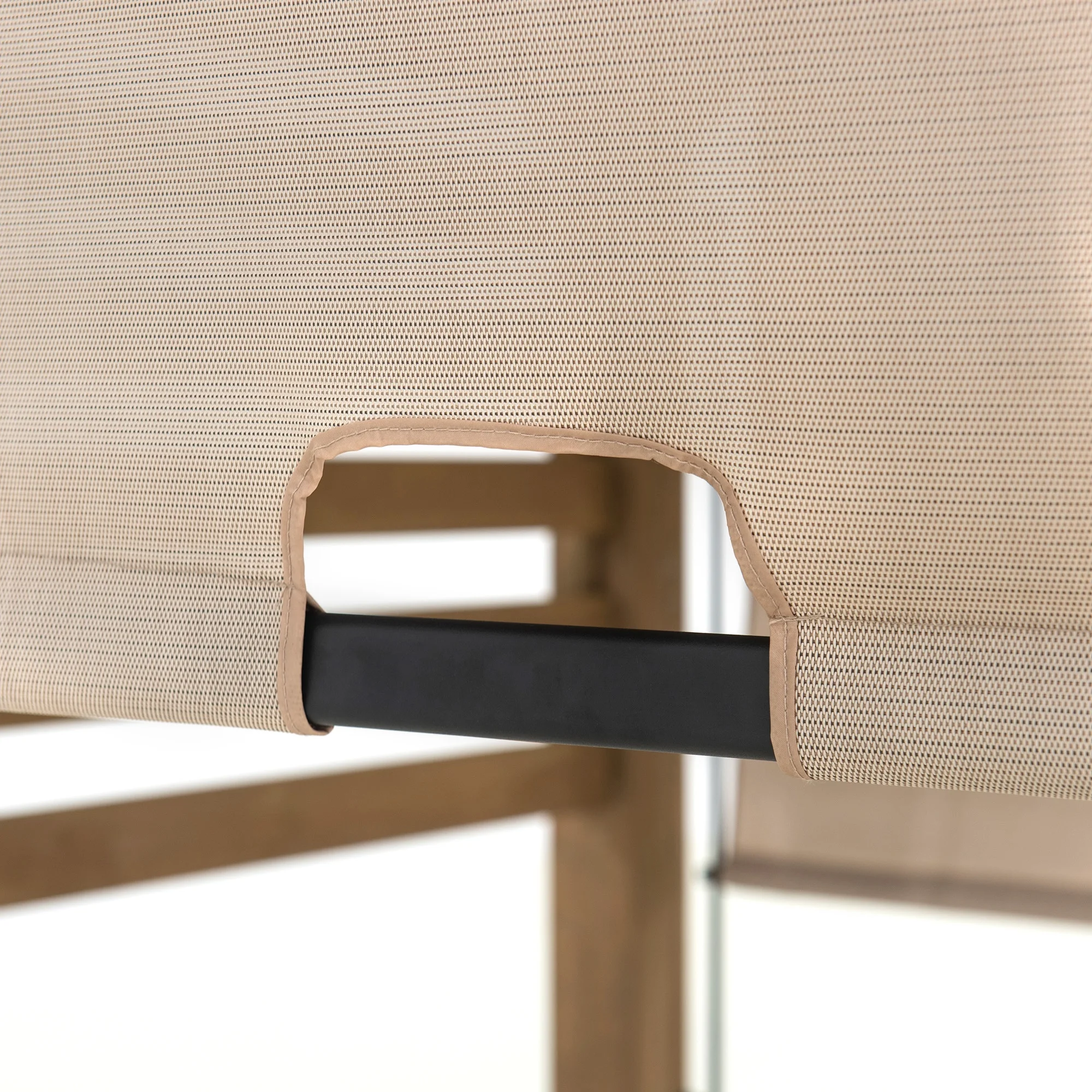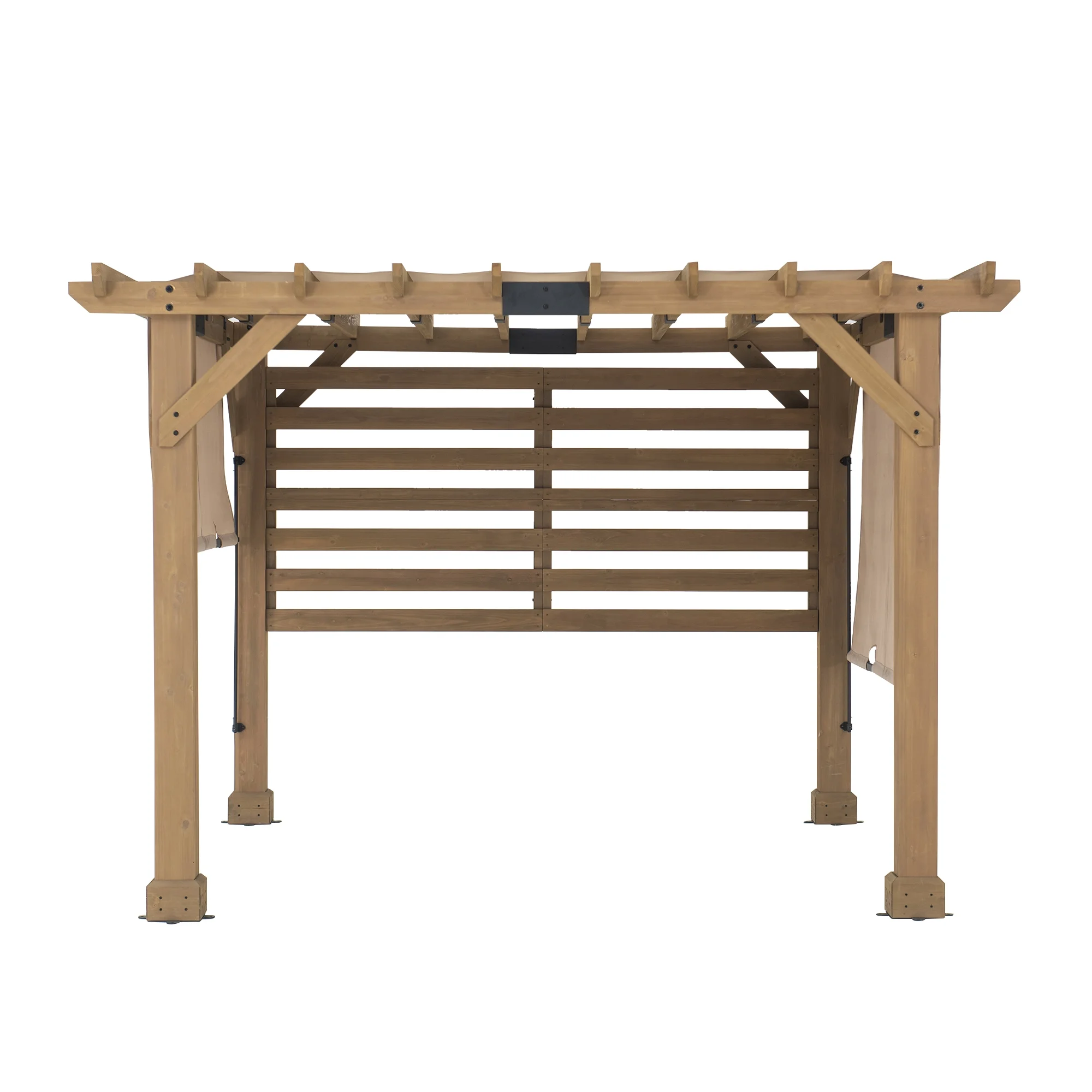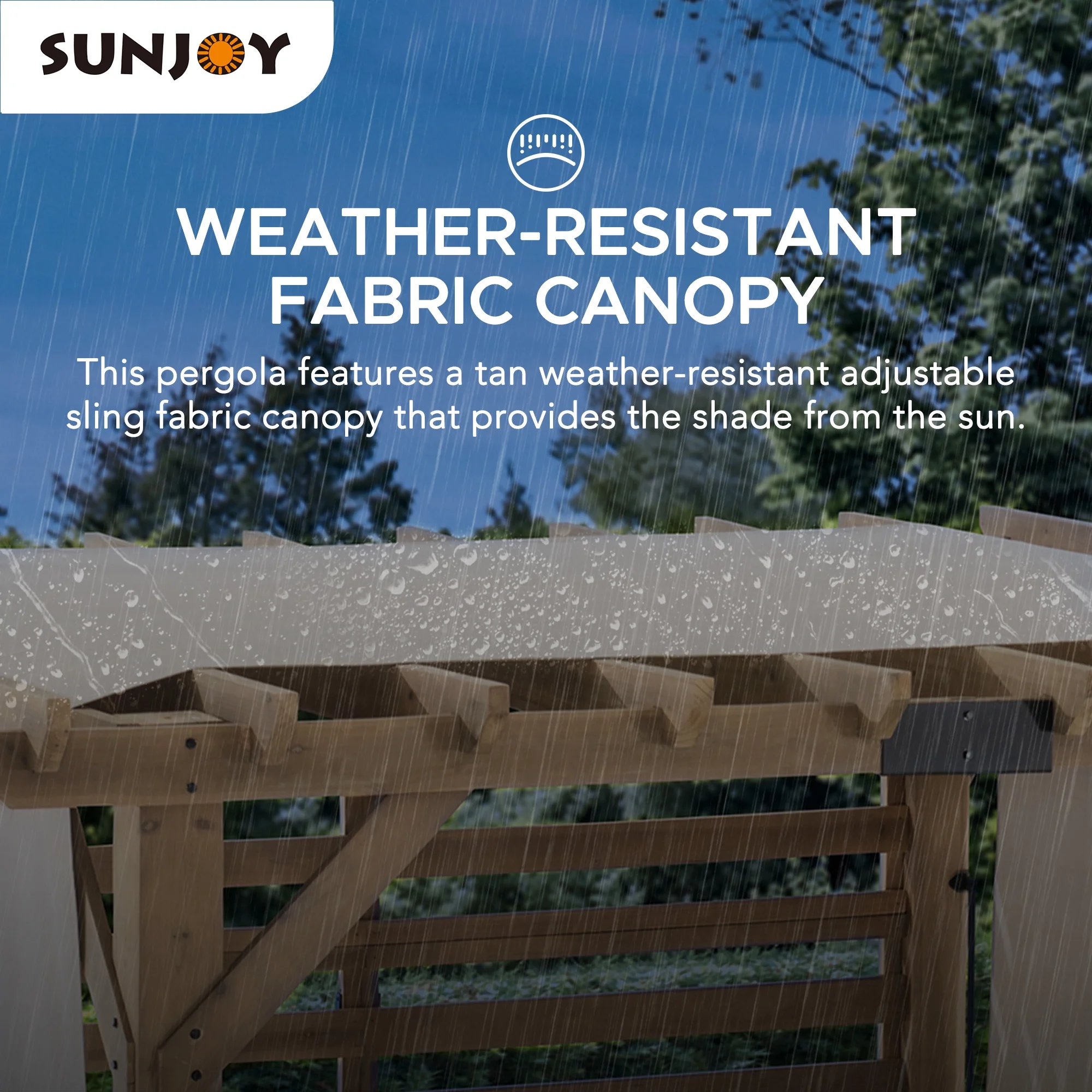 - Functional & Stylish Design: This pergola features a Tan weather-resistant adjustable sling fabric canopy and solid wood fence privacy screen. The stylish and convenient design provides you with comfortable shade for your outdoor hot tub area.