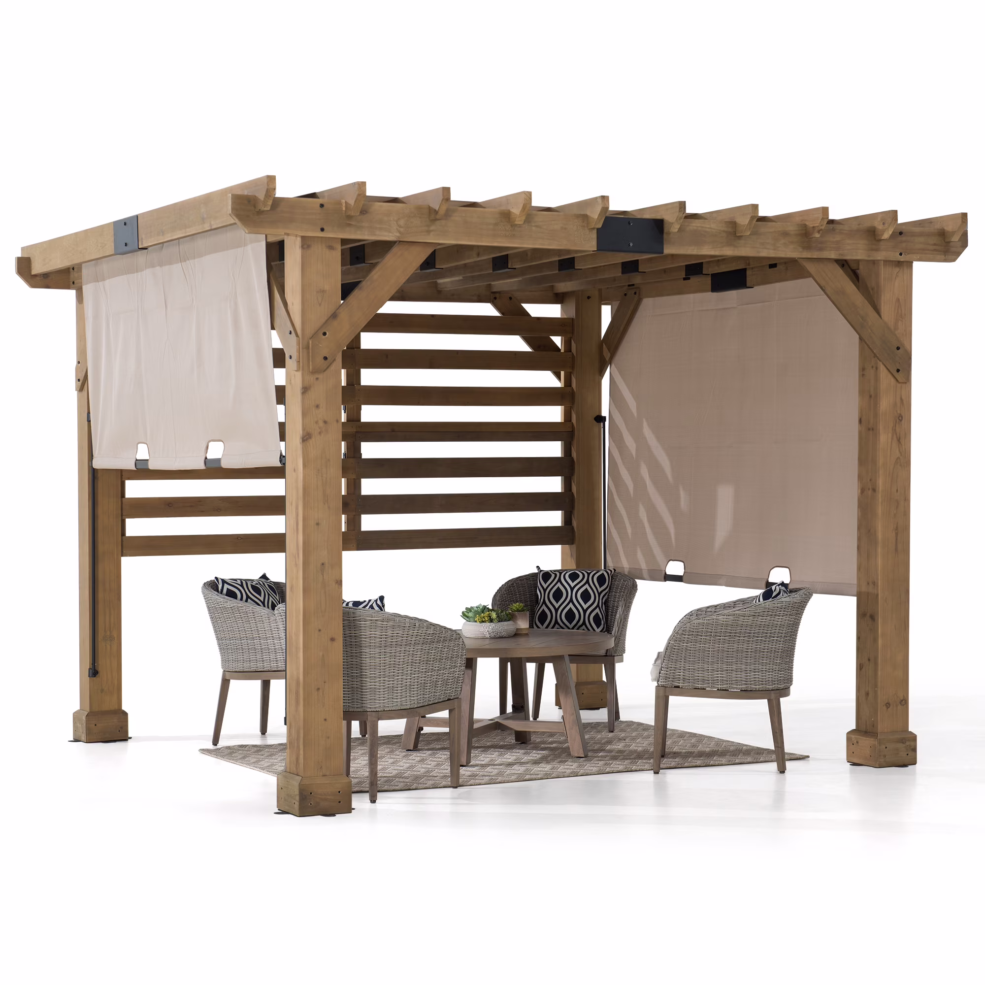 Treat yourself to comfort and convenience with this Cedar wood framed hot tub pergola. Enjoy a covered spot outdoors under the Cedar wood frame pergola. The premium Cedar wood roof slats combined with an adjustable sling canopy that provide protection from the glaring sun. An incorporated privacy screen provides functional design. With straight-forward, easy-to-follow assembly instructions you’ll be relaxing in your favorite new outdoor living space for years to come.