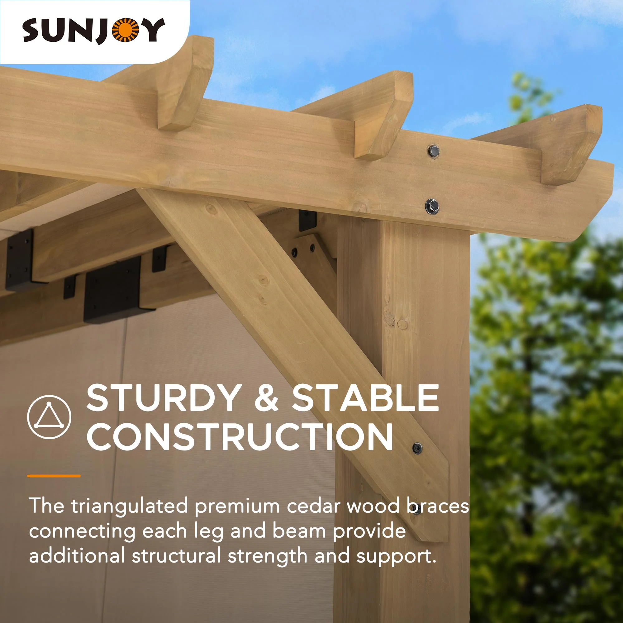 - Materials and Structure: The premium cedar wood frame construction with a natural looking finish provides protection from the glaring sun while allowing the warmth of the sun to come in, perfect for many cold seasons to come.