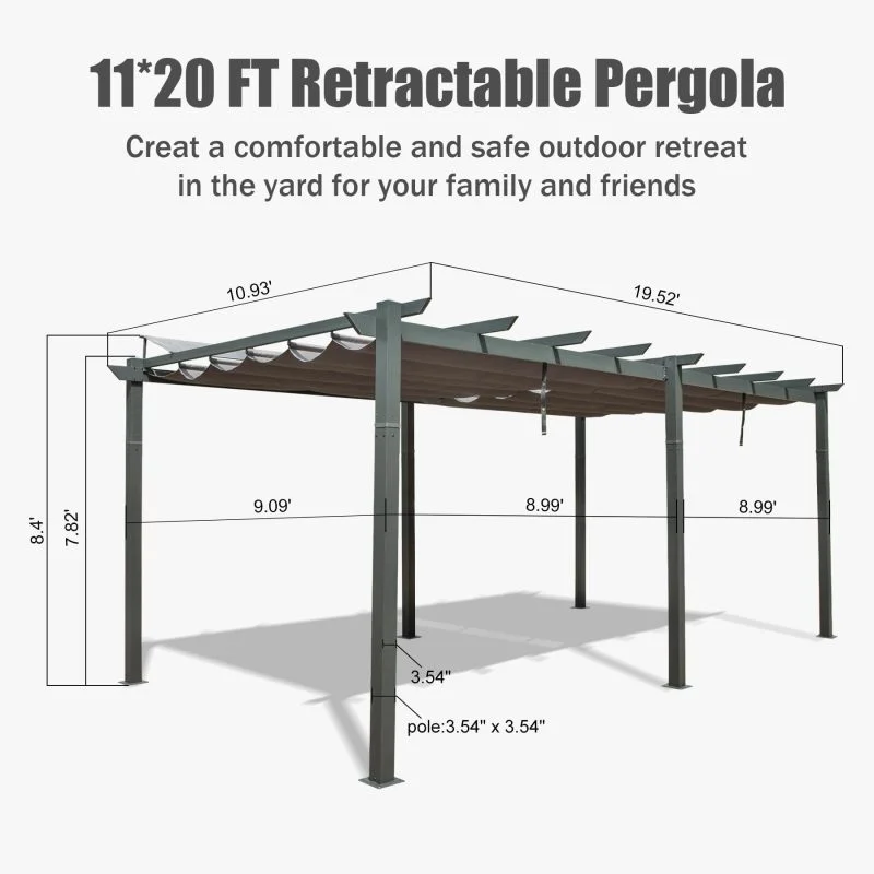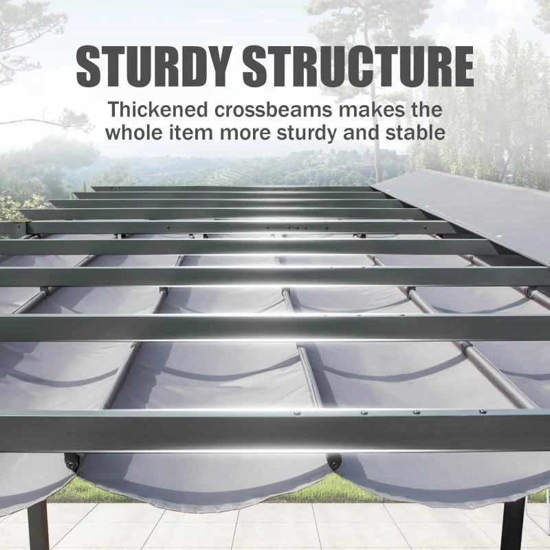 • RETRACTABLE CANOPY:Control the perfect balance of shade and sun with a retractable pulley system,Adjust the optimal shade area according to your needs to block sunlight,UV rays,and light rain.
