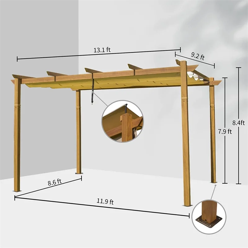 • PREMIUM FABRIC MATERIAL: The canopy of pergola is made of polyester fabric+PU to ensure a reliable waterproof, UV-resistant, and fade-resistant, American standard 4 color fastness, American standard fire protection CPAI-84.