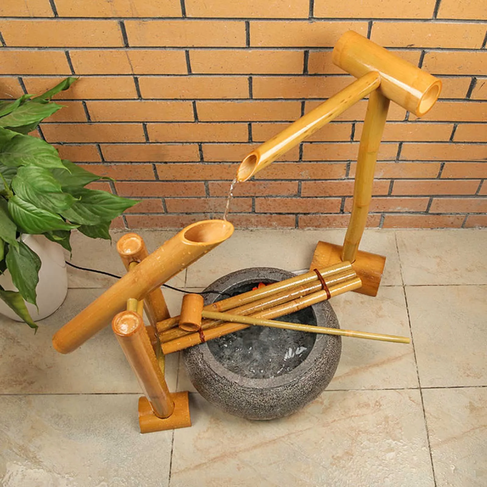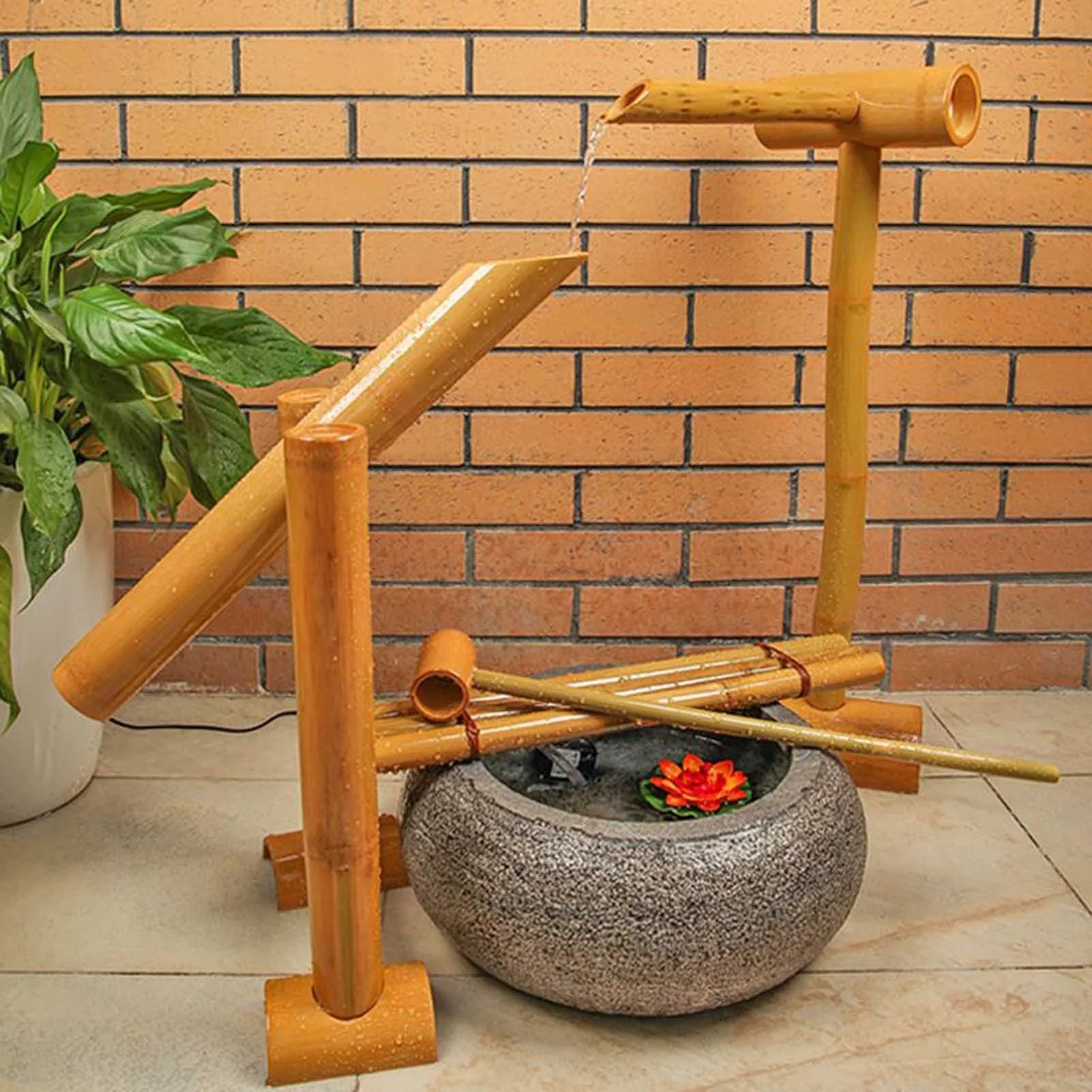 - Bamboo fountain set:The design of a standing bamboo fountain, whether it is placed in a corner of the courtyard, a balcony garden or a Zen interior, the bamboo fountain can be perfectly integrated