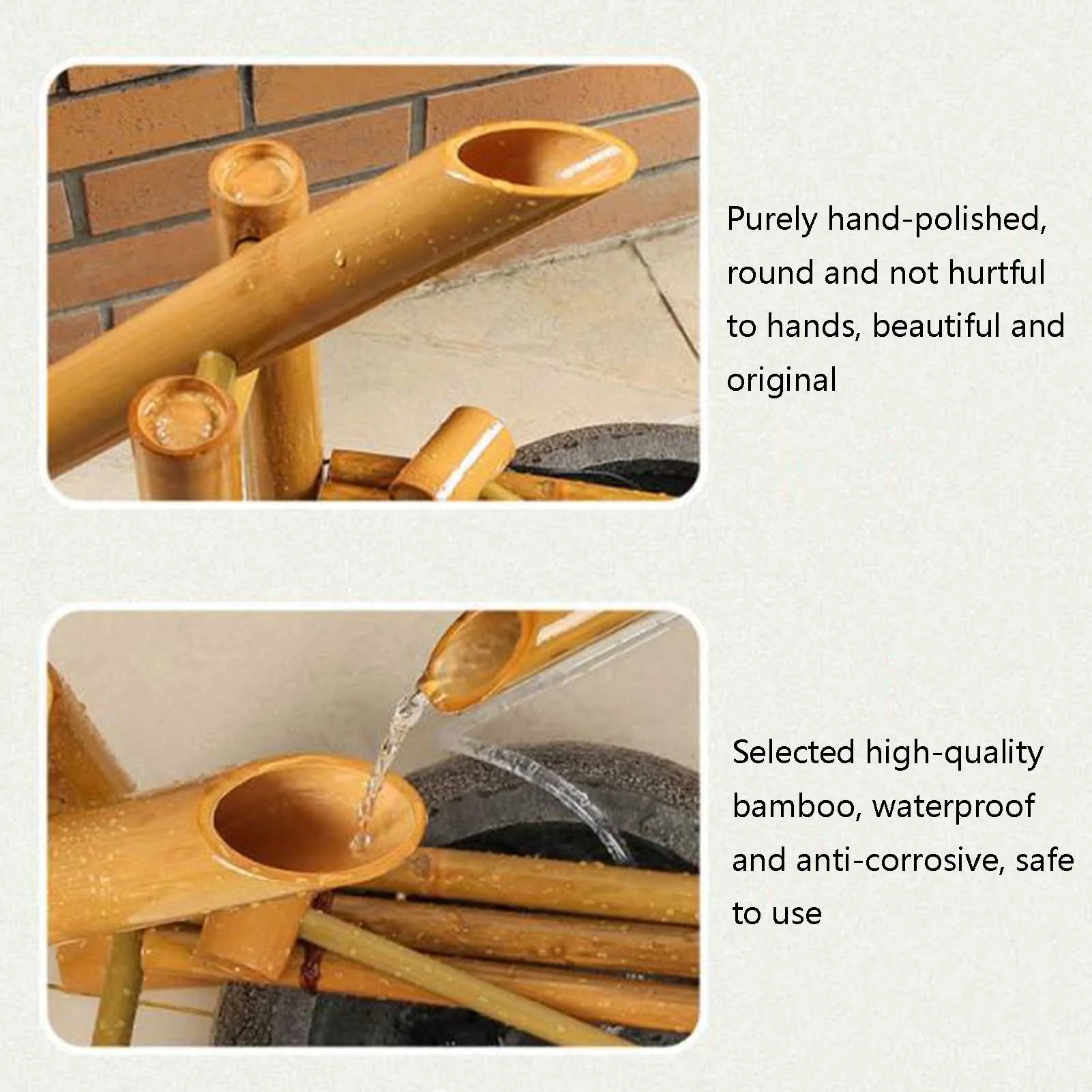- Zen Garden: The sound of the thin flowing water of the bamboo fountain is like a gurgling stream in the mountains, quiet and relaxing. Whether at work or leisure, the bamboo fountain can bring you a moment of peace and soothe your heart