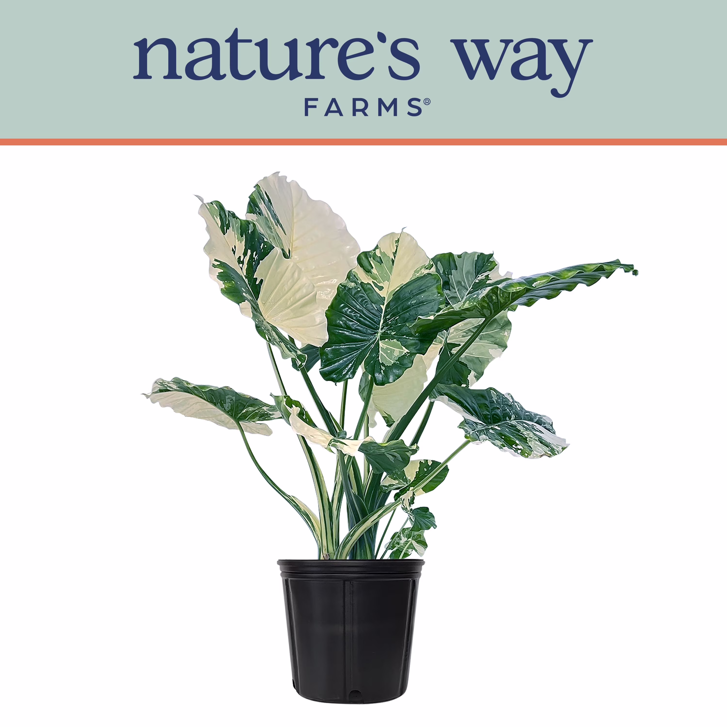 Alocasia Variegated Dawn U.S. Patent Number PP35010 is a unique plant from the Rare Plant Collection cultivated by Nature's Way Farms. This plant is a RARE variety grown using strict quality standards. This striking evergreen plant has large, marbled green and white heart-shaped leaves that are sure to be the focal point of any plant collection. This plant needs to be kept consistently moist, but not wet. They should be allowed to retain a small amount of moisture at all times. That said you need to be careful that it does not dry rot. Using a liquid fertilizer, which contains a more or less equal ratio of Nitrogen, Phosphorus, and Potassium will work best. Fertilize about once every 6 weeks in the growing season (spring and summer) and once every 8-12 weeks in the autumn and winter. Alocasia Dawn is large, upright plant that does well indoors as well as on covered patios provided the necessary conditions are right. They do best in bright, indirect light. Do not place them in direct sunlight. The light needs to be bright but indirect or if indoors, filtered through a curtain or shade cloth to prevent leaves from scorching and burning.