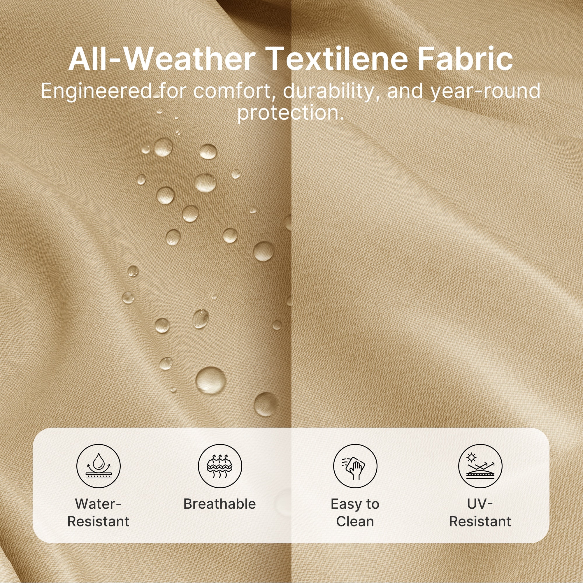 -【All-Weather Resilience�?/strong>Weatherproof construction withstands rain, humidity, and UV exposure. Textilene fabric dries quickly, while rust-resistant steel prevents corrosion year-round.