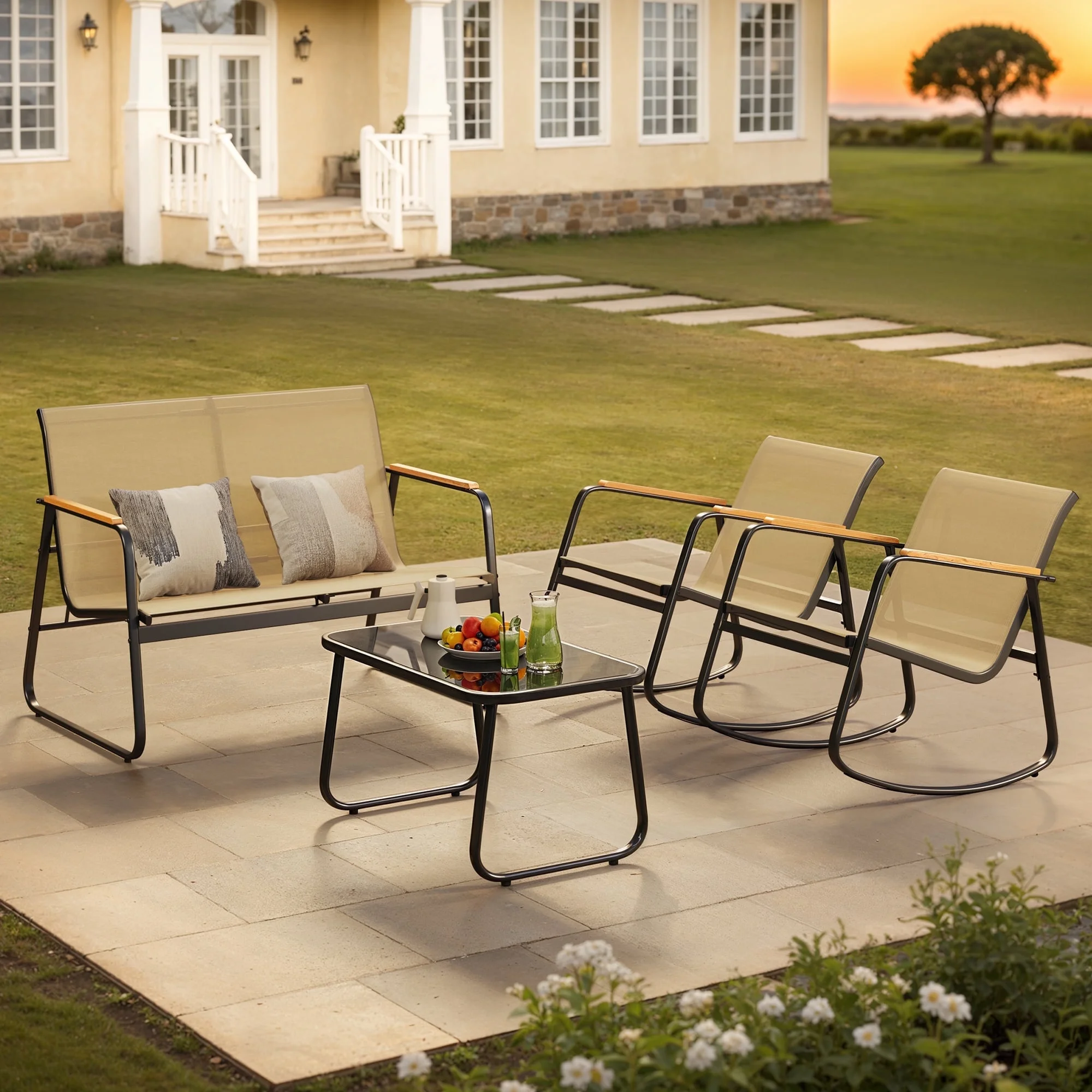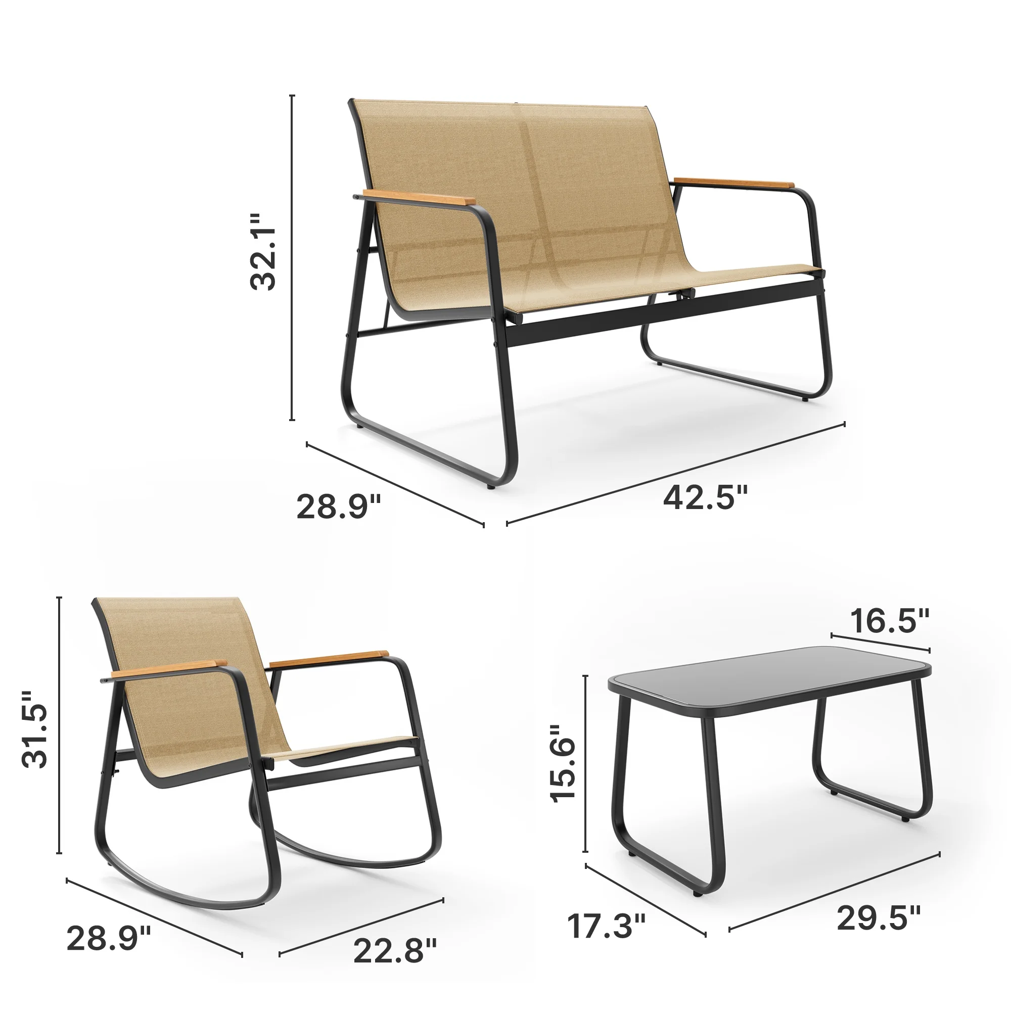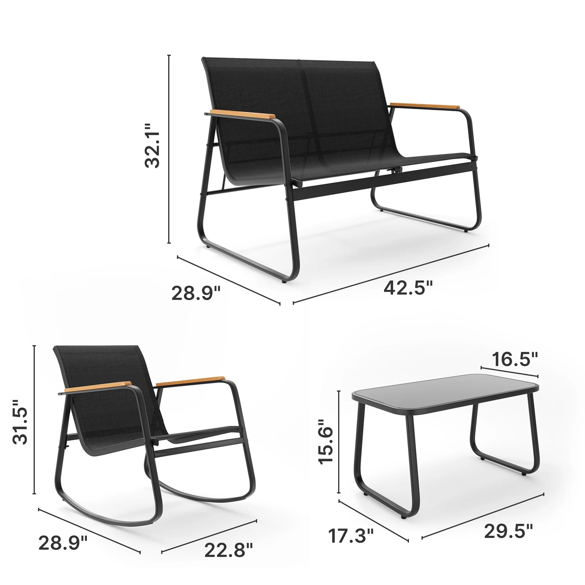 - Including: 1 Loveseat+2 Rocking Chairs+ 1 Glass Table