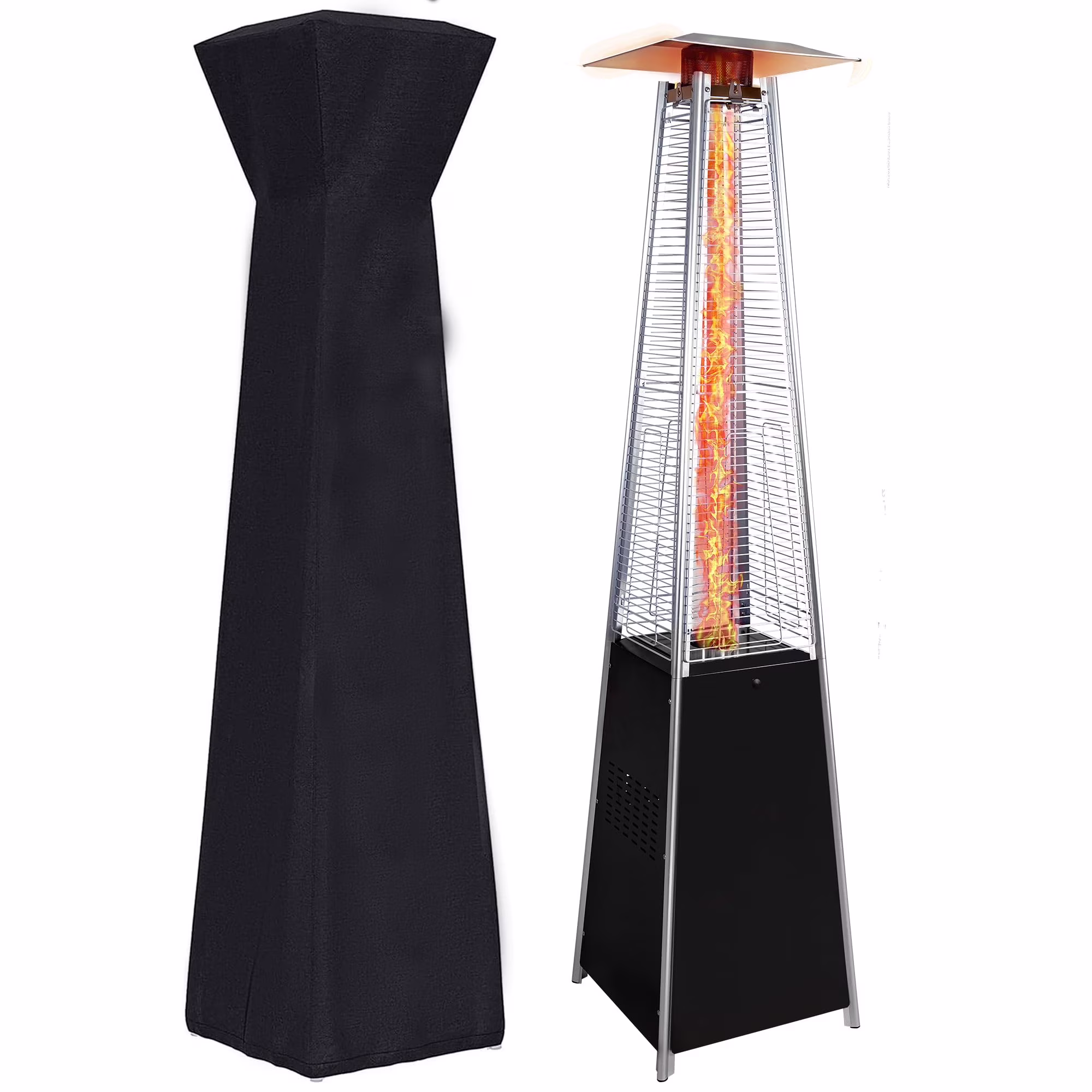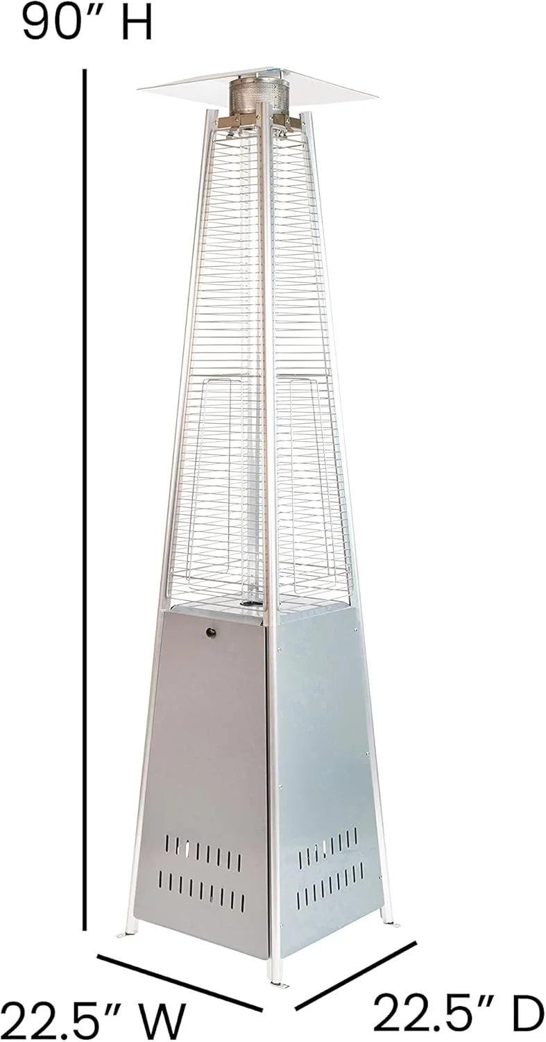 -- Features a stunning 89.37" tall pyramid design with a captivating flame tube that serves as a beautiful centerpiece and a powerful heat source.